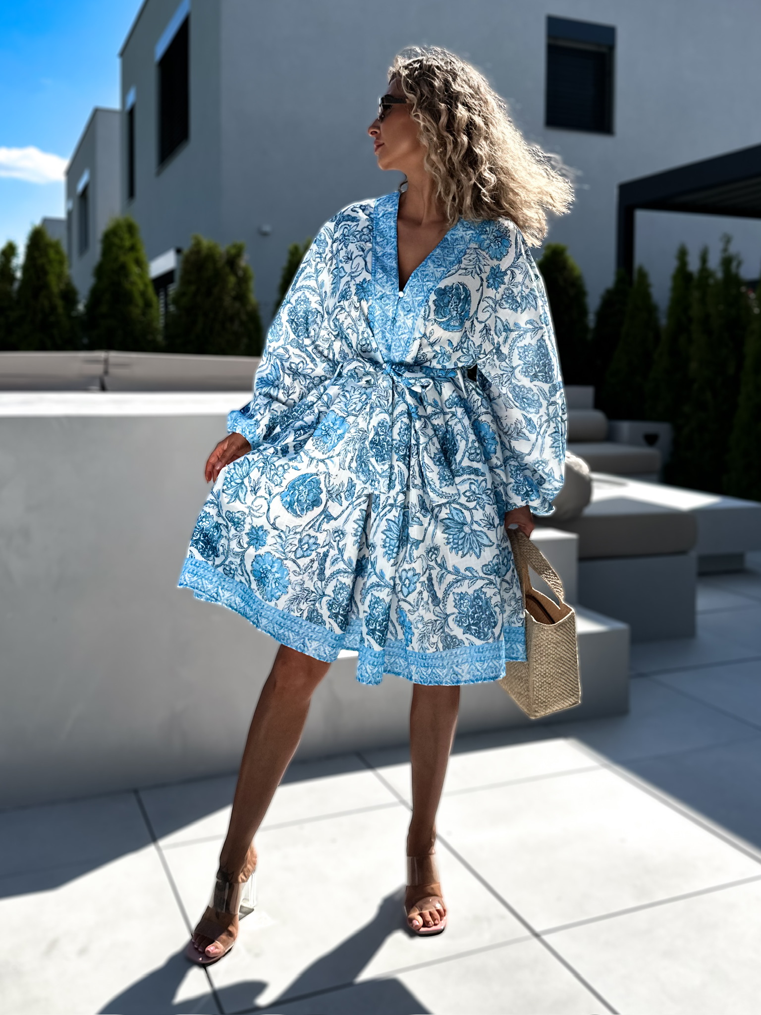 Modré bavlněné boho šaty MARULA s ornamenty Velikost: M/L