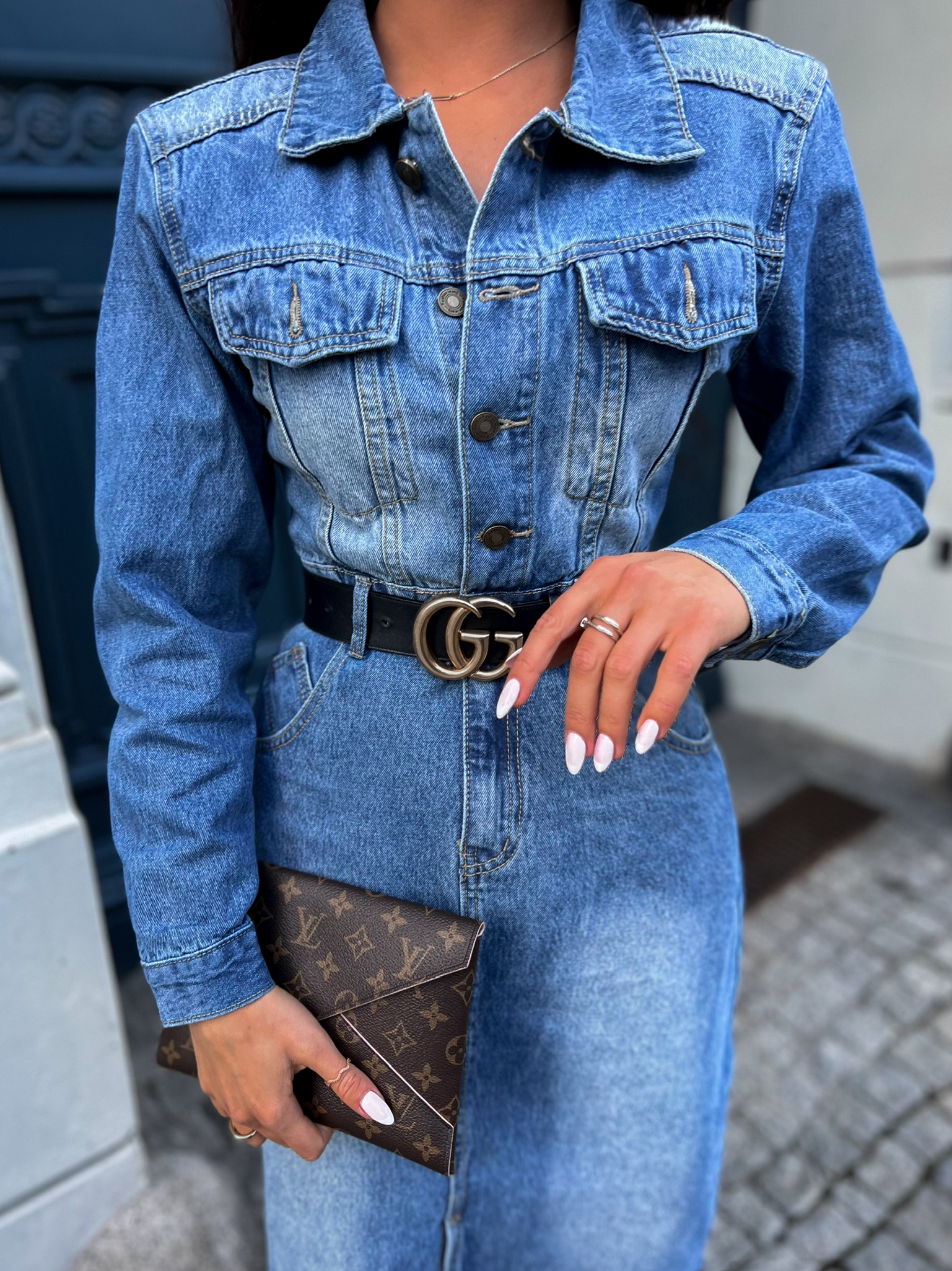 Modré denim šaty GOLEN s dlouhým rukávem Velikost: S/M