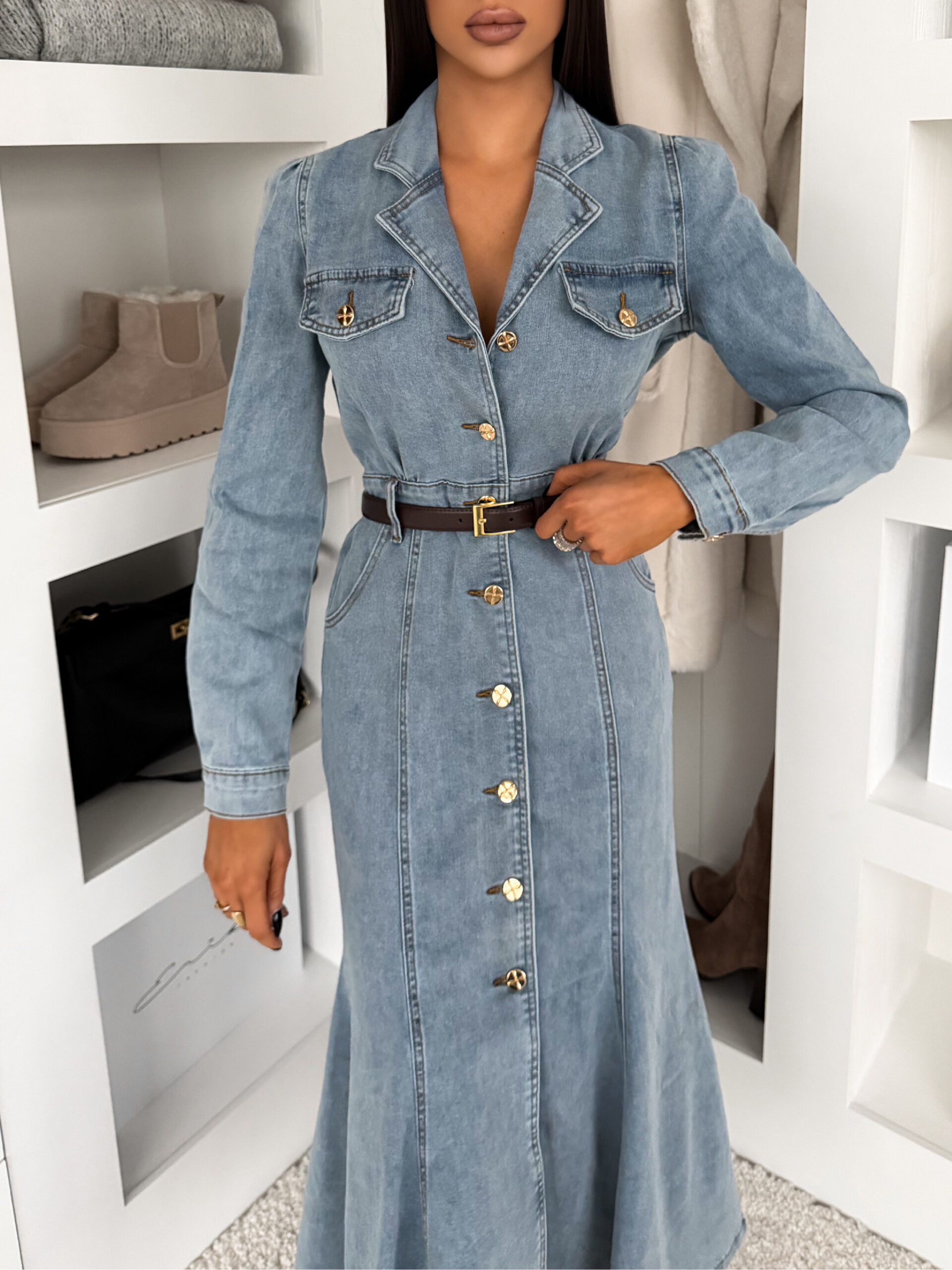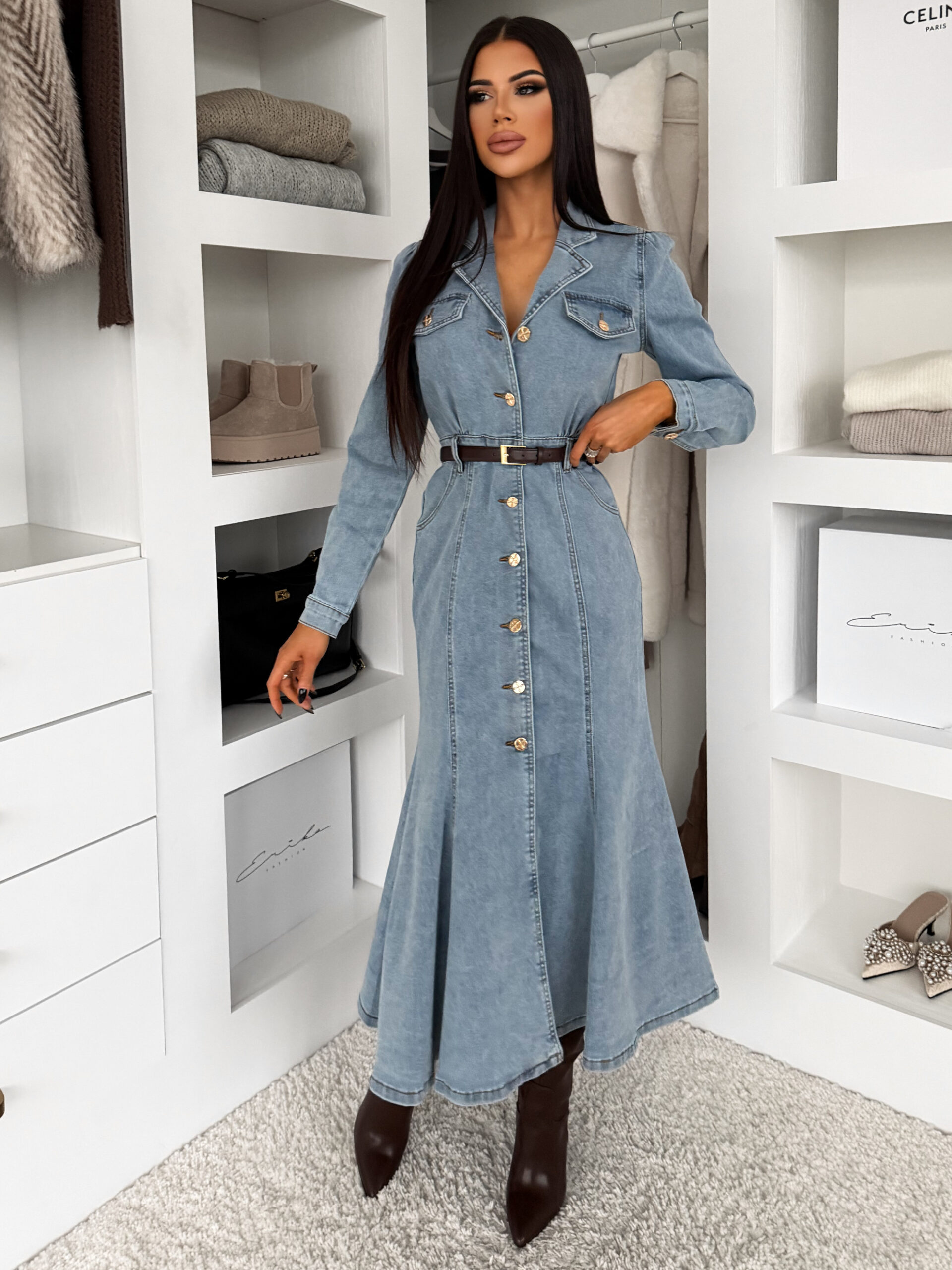 Modré džínové dlouhé šaty ROUKALA Velikost: S/M