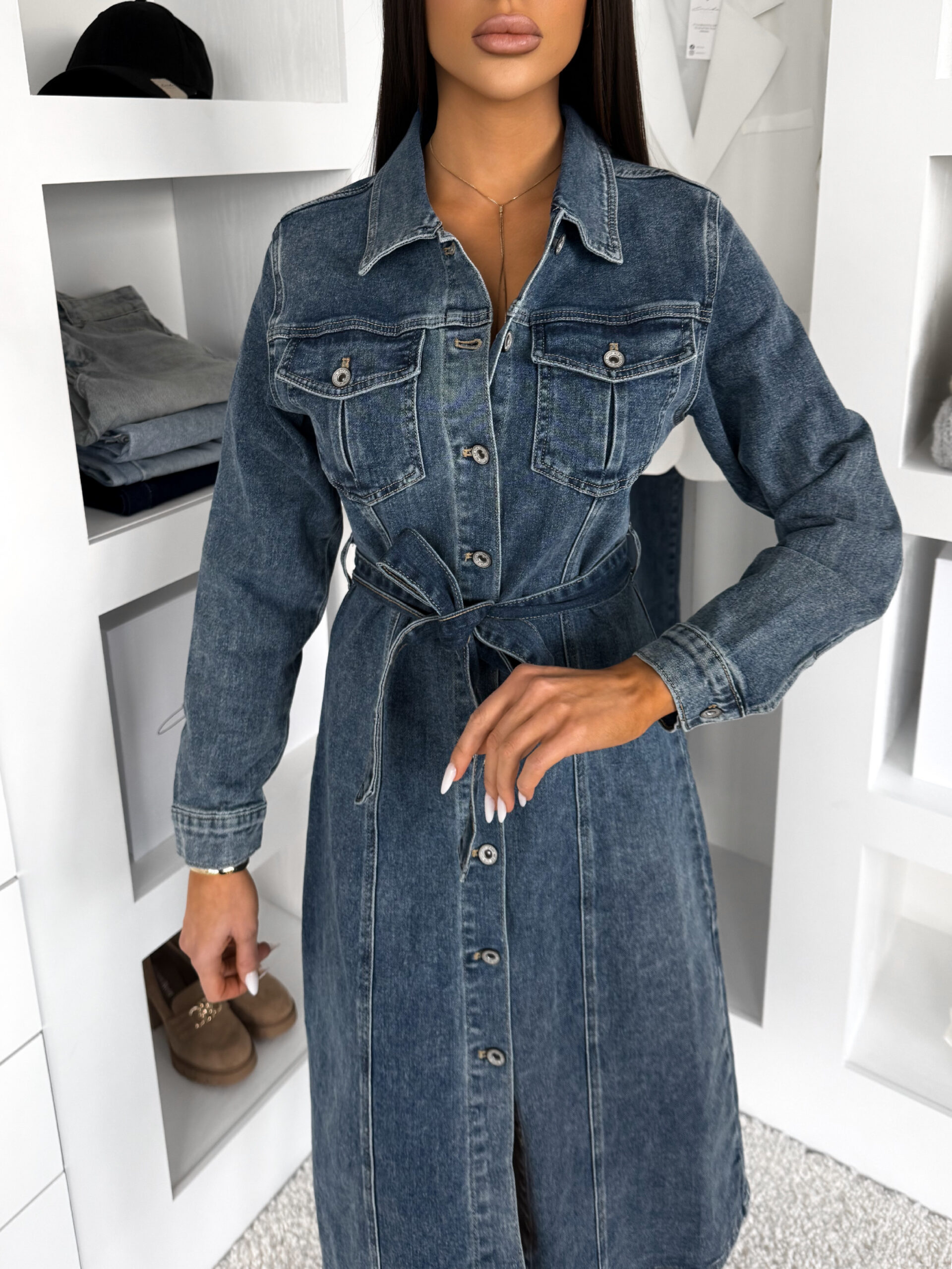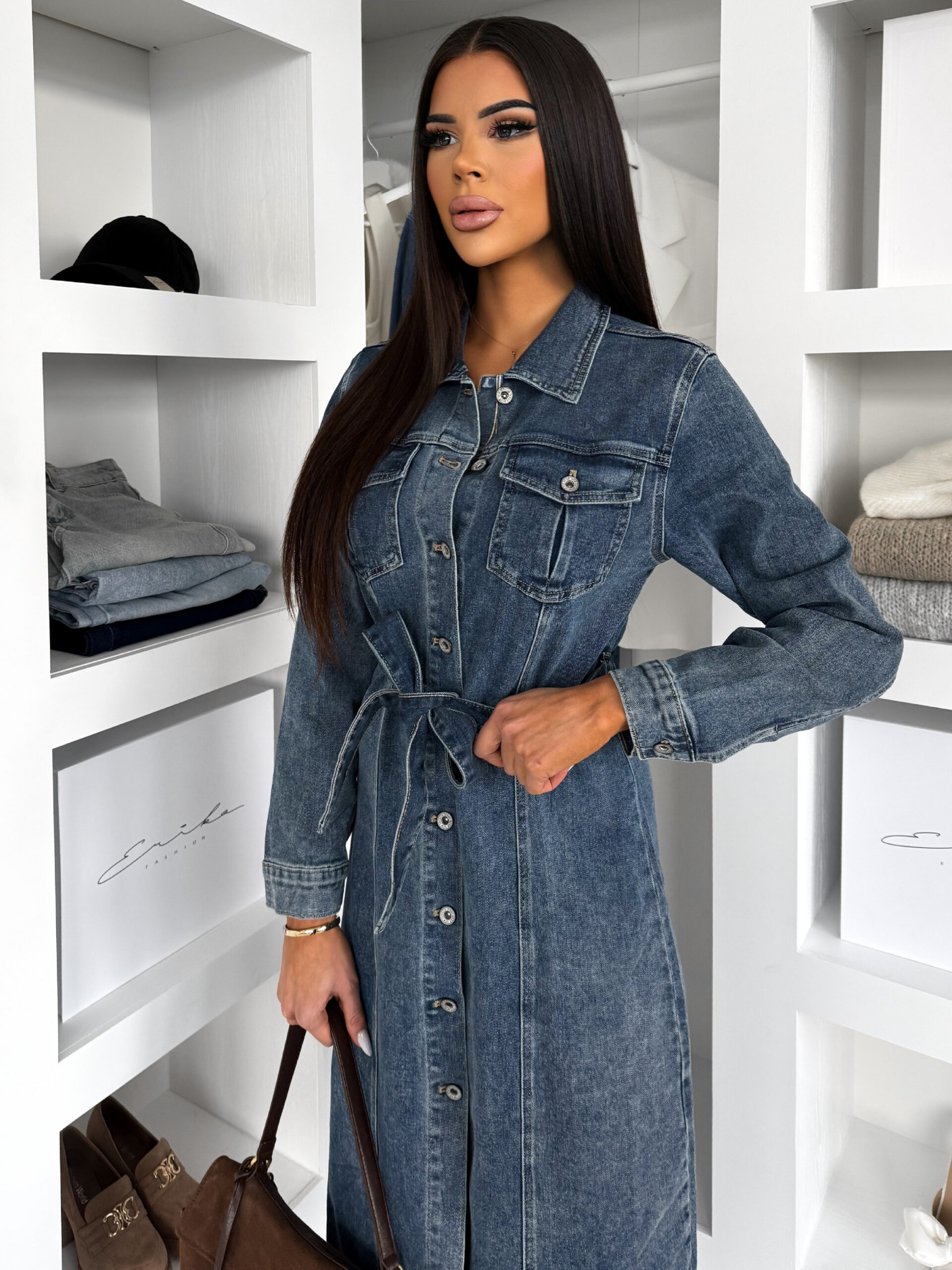 Modré džínové midi šaty HERTOZ s dlouhým rukávem Velikost: M
