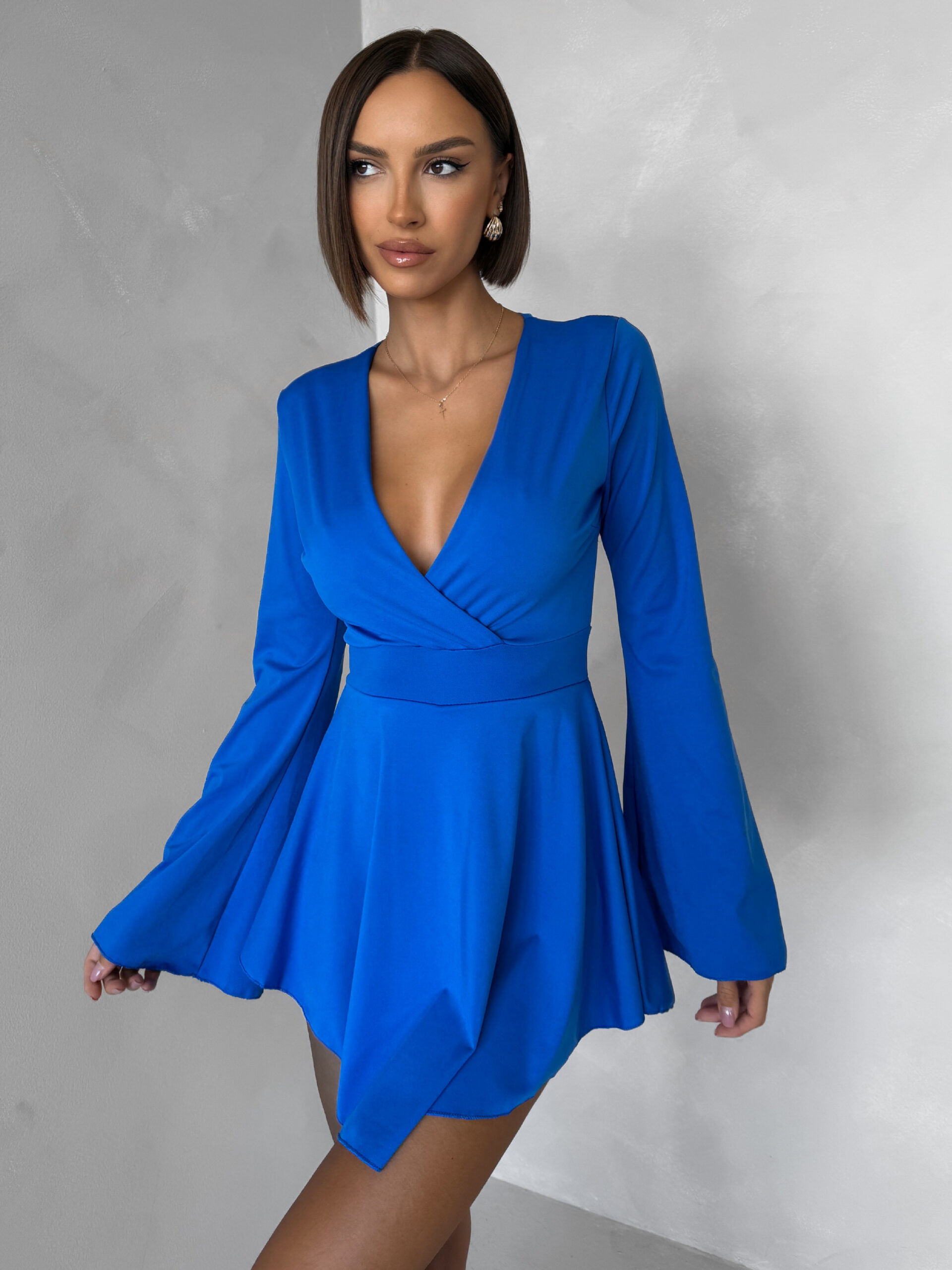 Modré koktejlové šaty STREGH s dlouhým rukávem Velikost: ONESIZE