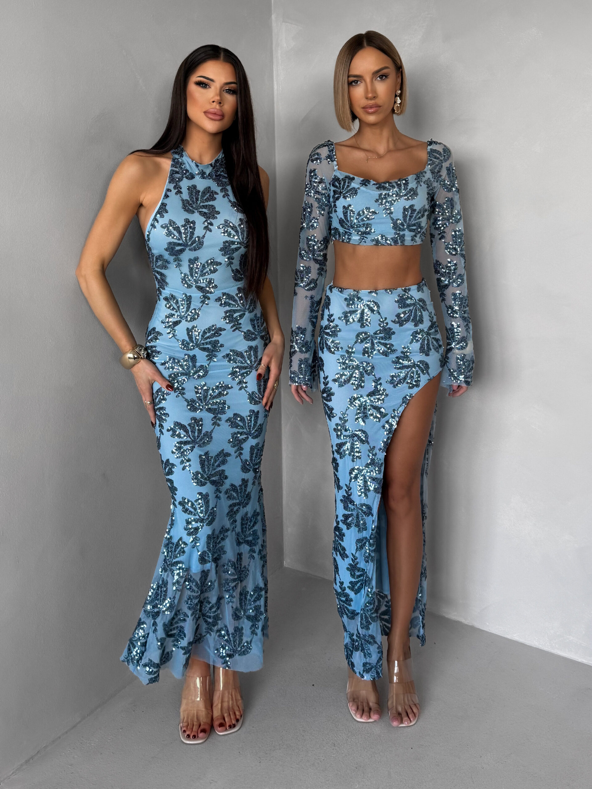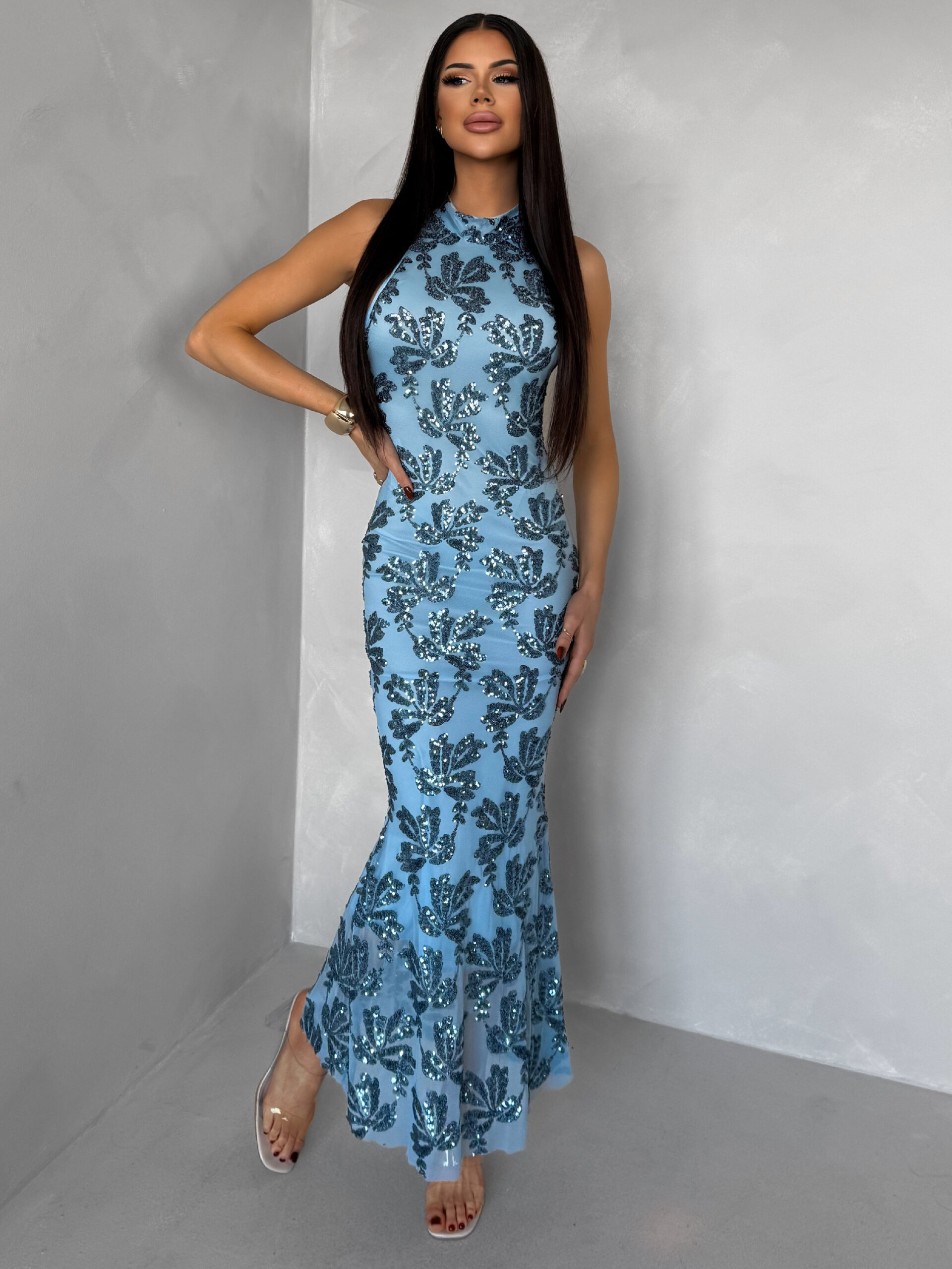 Modré společenské dlouhé flitrované šaty SOLVAYA Velikost: ONESIZE