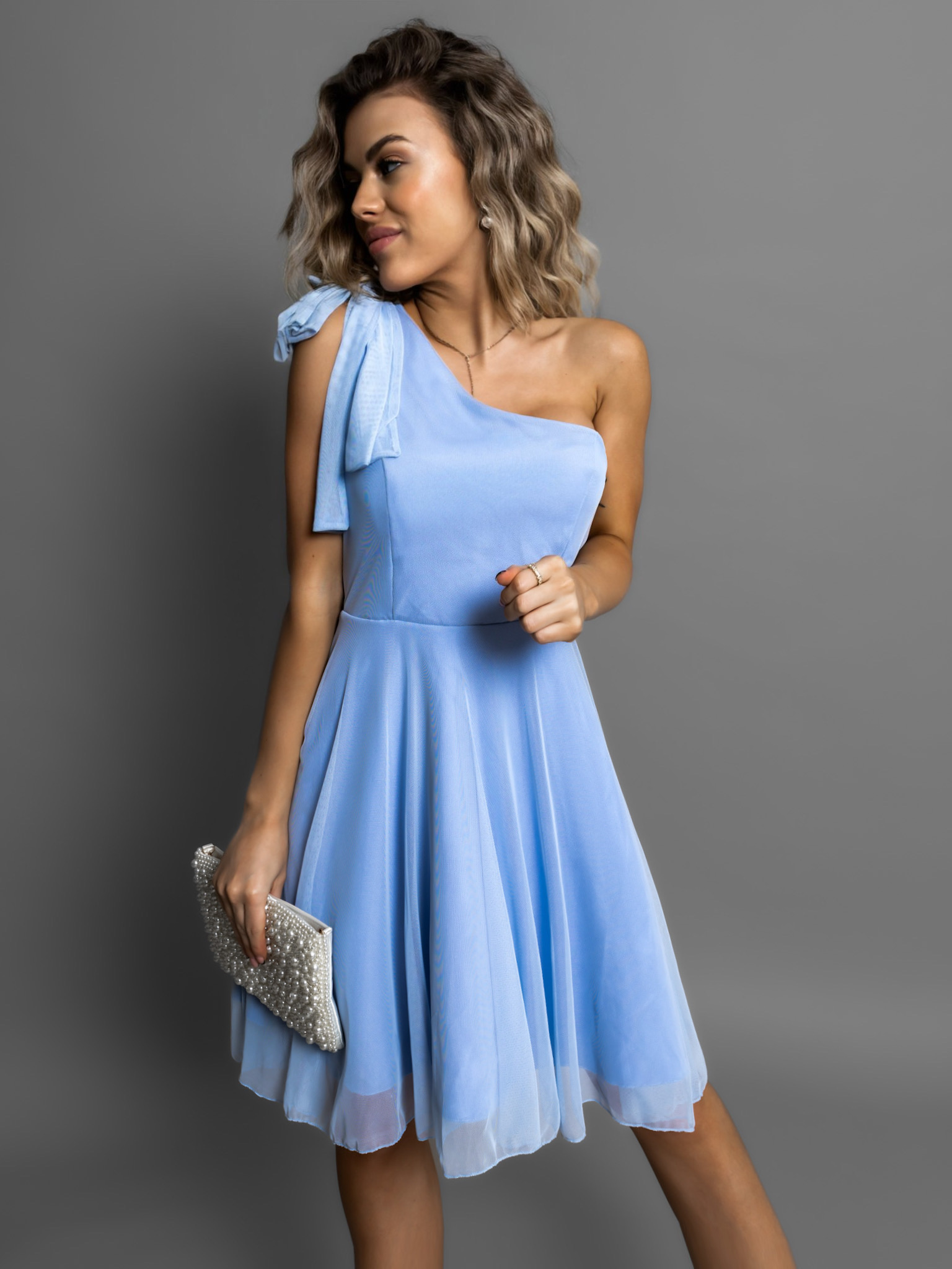 Modré tylové šaty TANLIC na jedno rameno Velikost: L