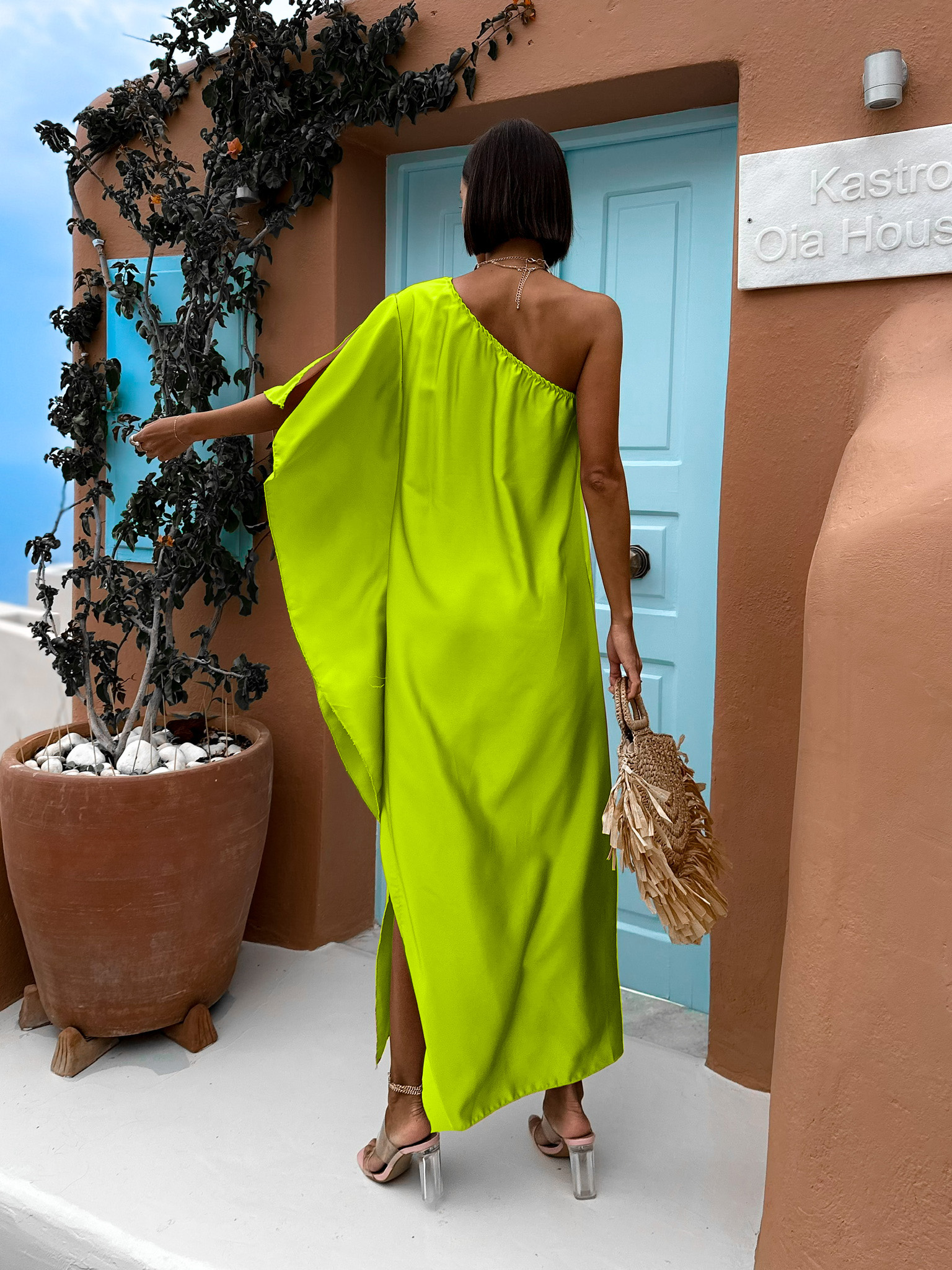 Neon zelené elegantní šaty HUDIESI přes rameno Velikost: ONESIZE
