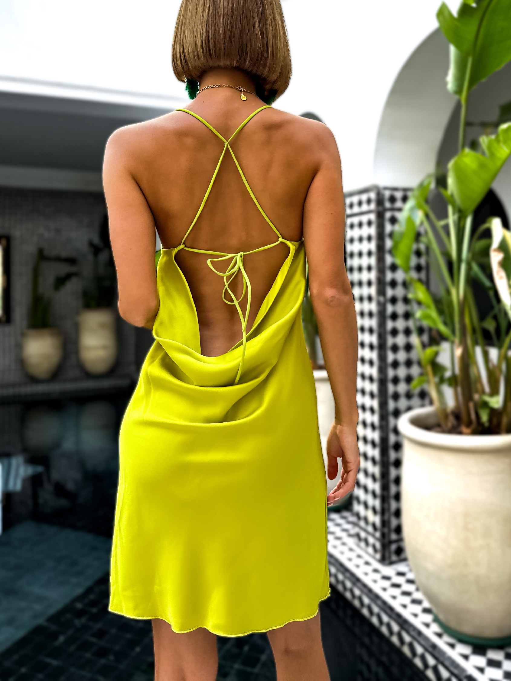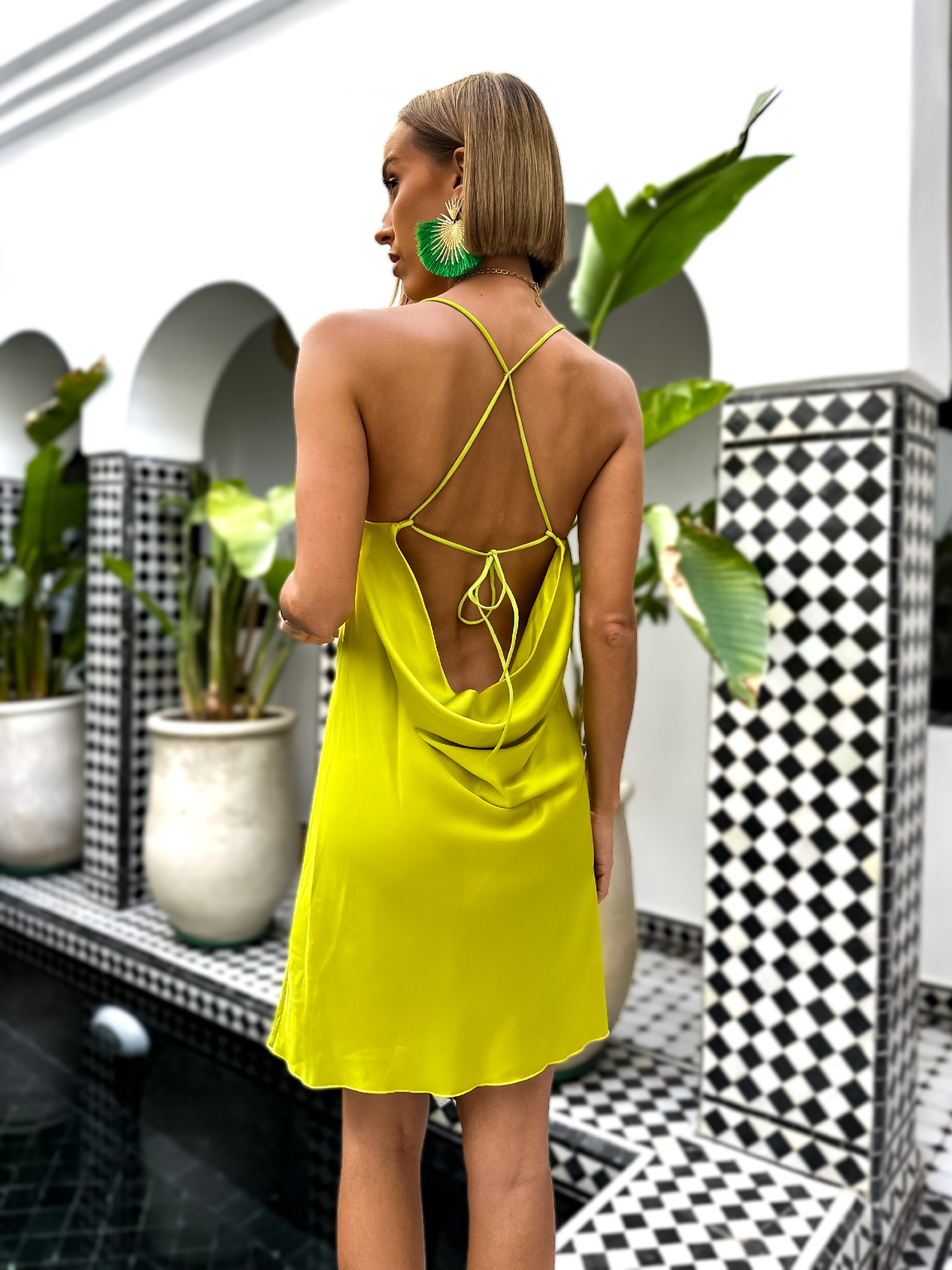 Olivové lesklé šaty CHICKET s vázáním na zádech Velikost: ONESIZE