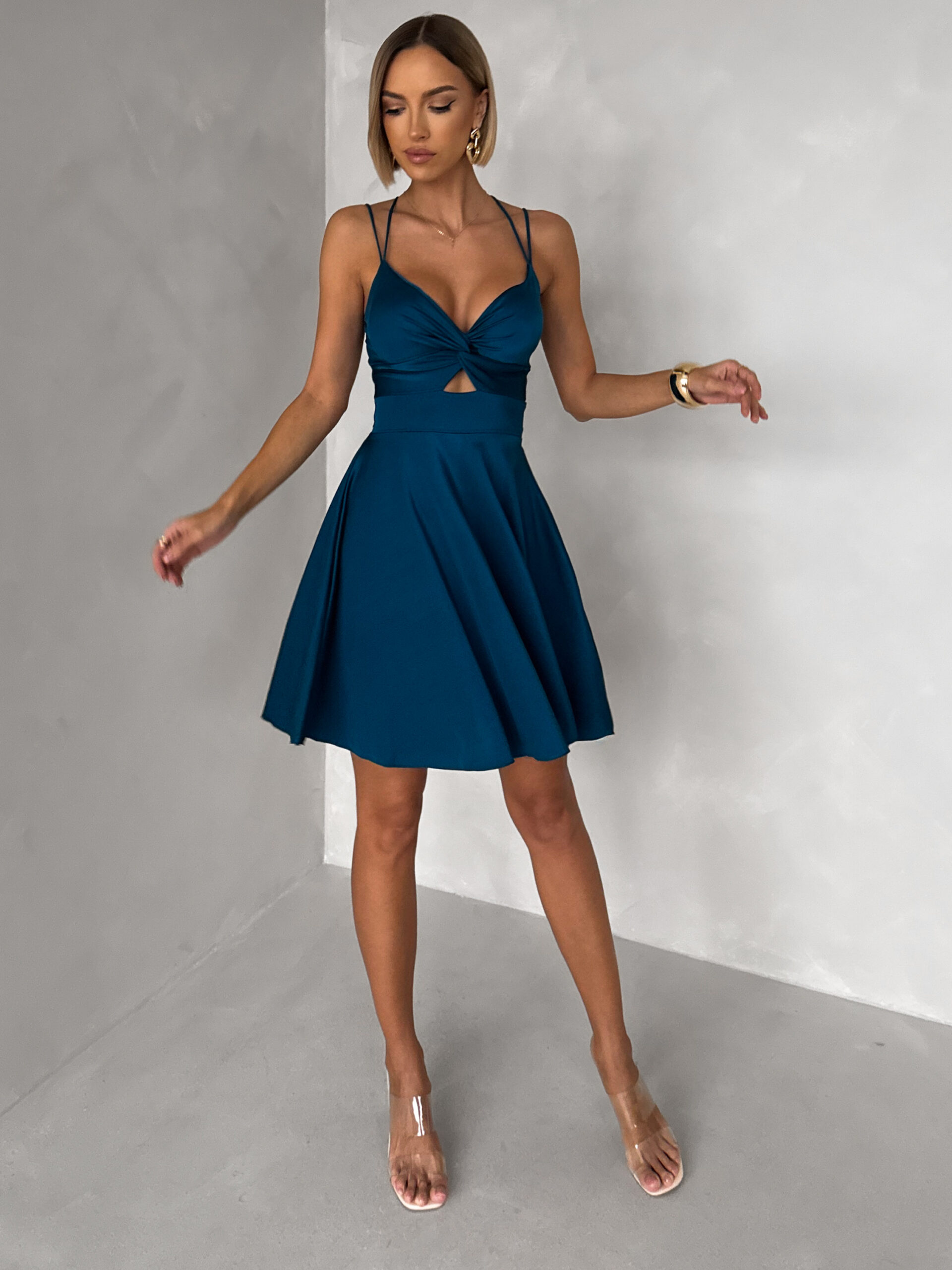 Petrolejové áčkové krátké šaty MADURAI Velikost: ONESIZE