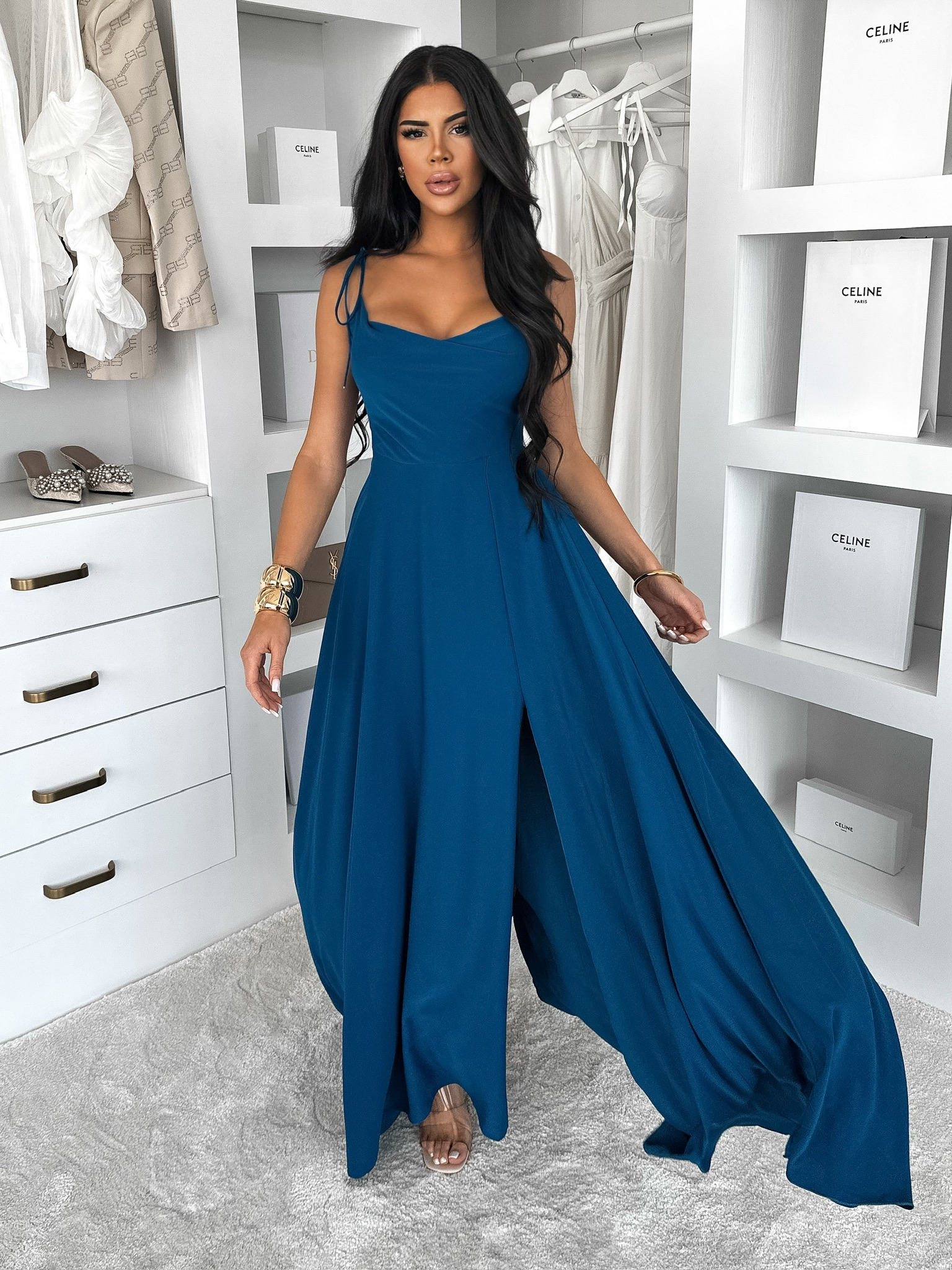 Petrolejové dlouhé společenské šaty LERDISEL Velikost: ONESIZE