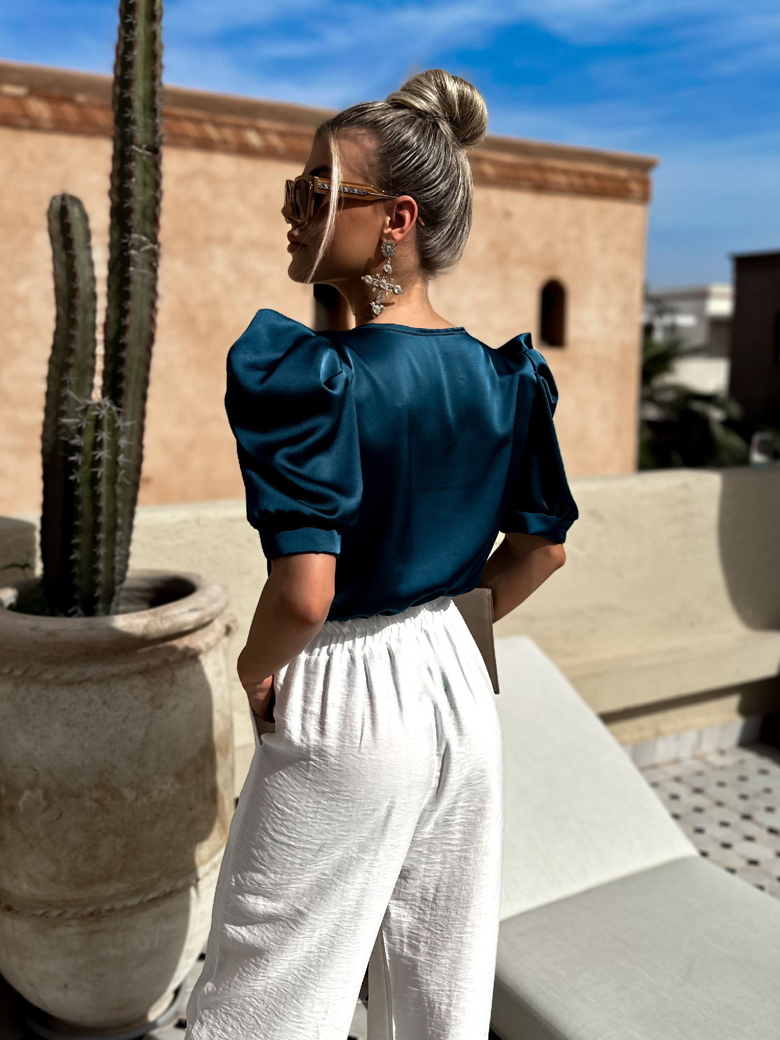 Petrolejové elegantní body MUSA s výstřihem Velikost: ONESIZE