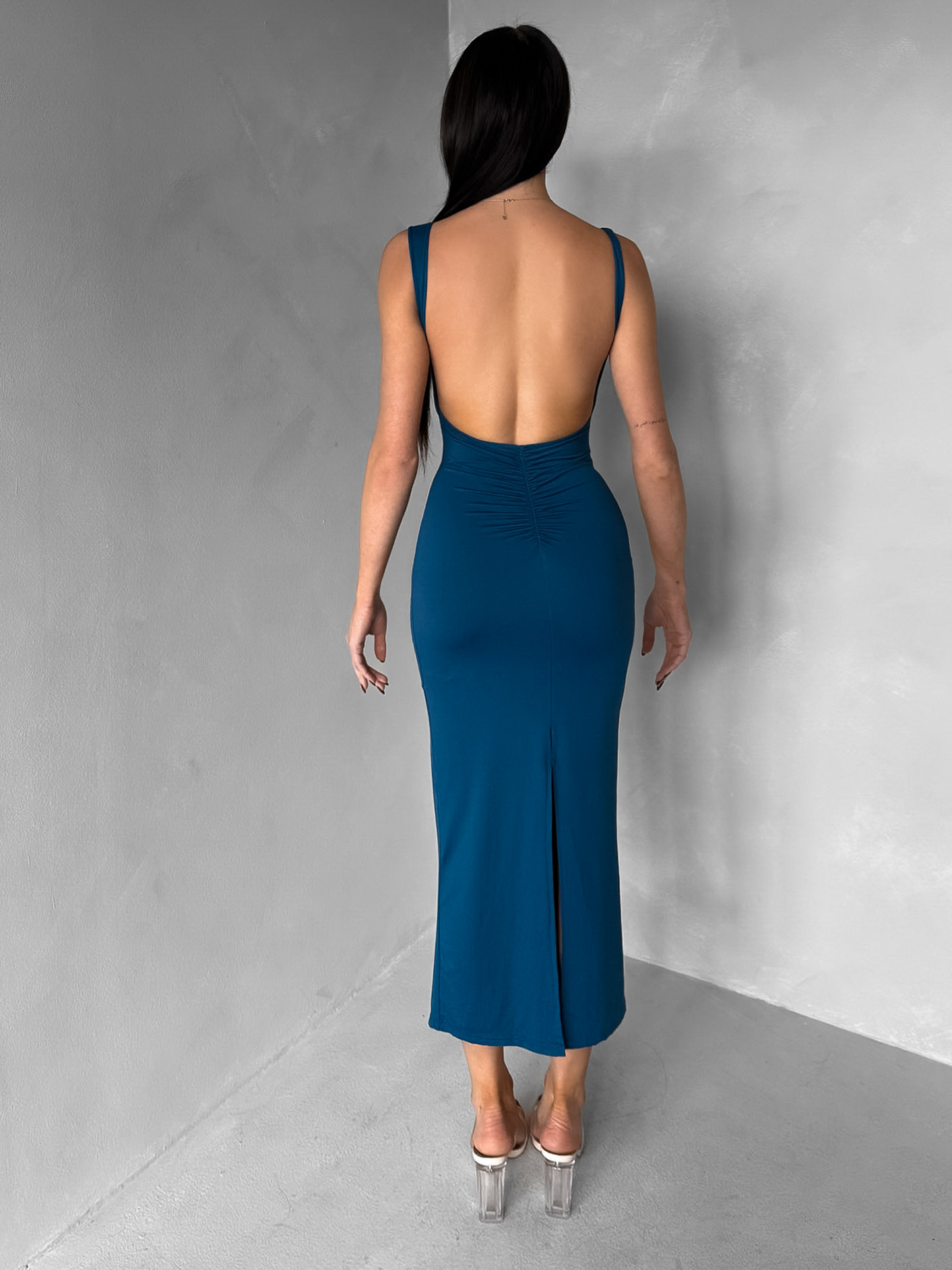 Petrolejové přiléhavé midi šaty TREVY s holými zády Velikost: ONESIZE