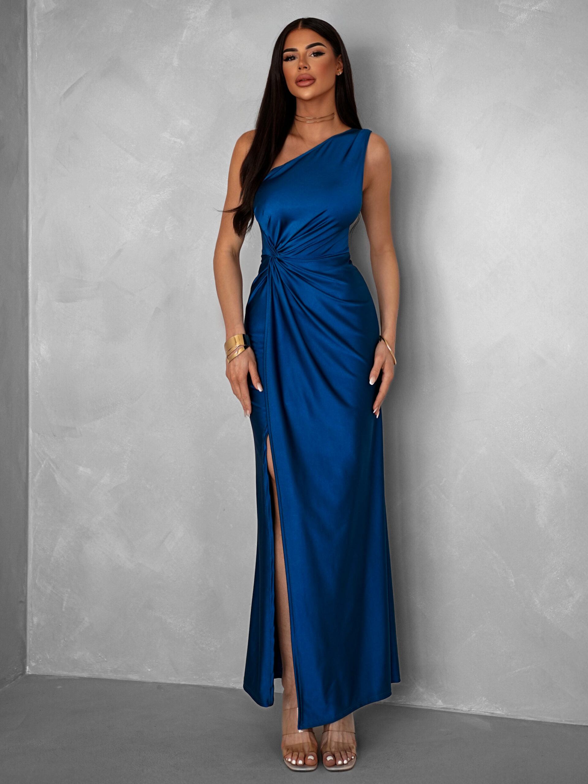 Petrolejové saténové šaty FIAMMAR na jedno rameno Velikost: ONESIZE