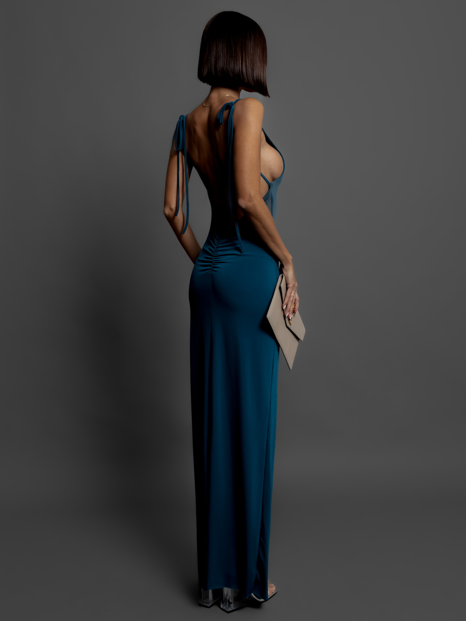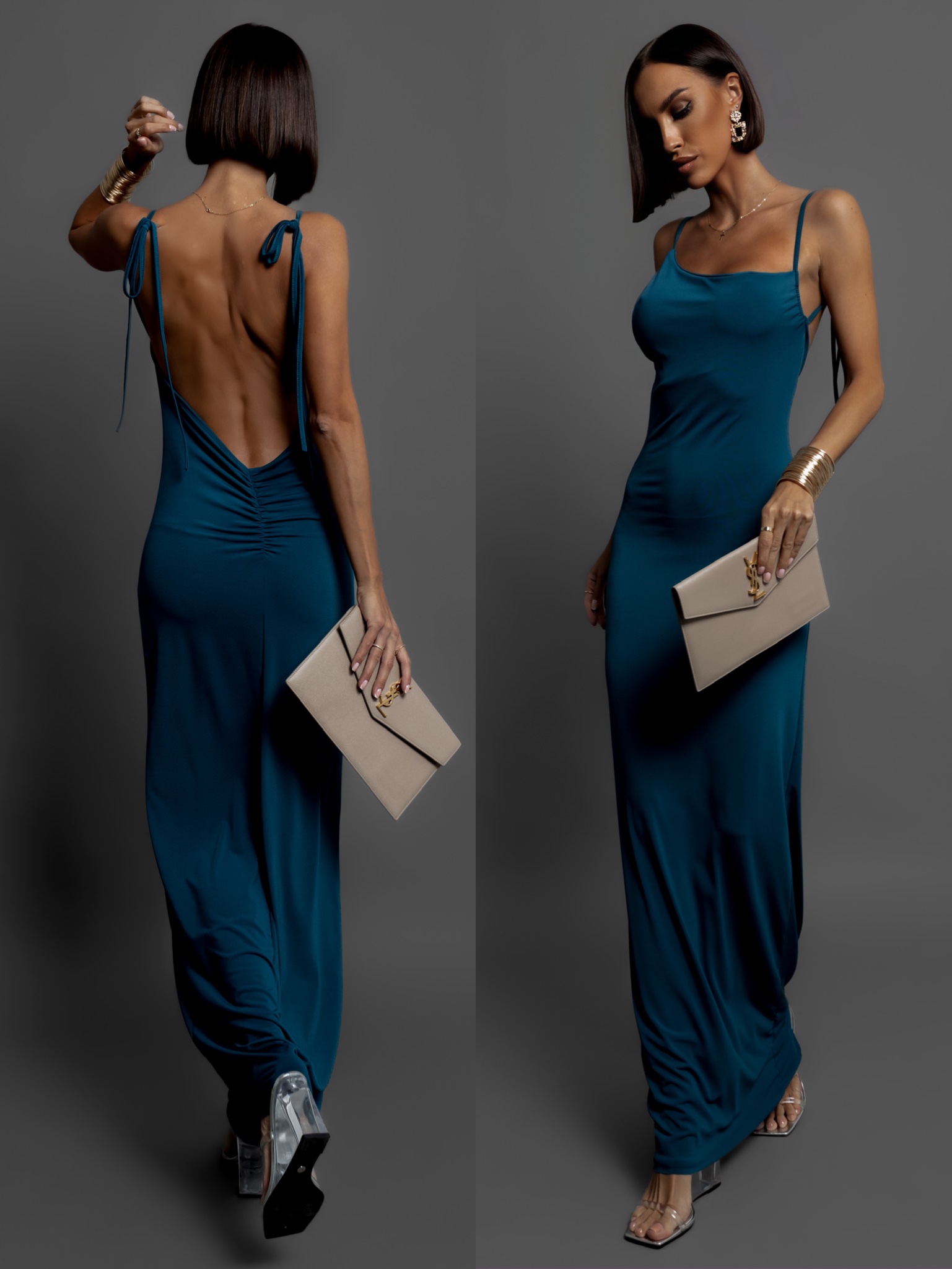 Petrolejové šaty KONTRAME se zavazováním na ramenech Velikost: ONESIZE
