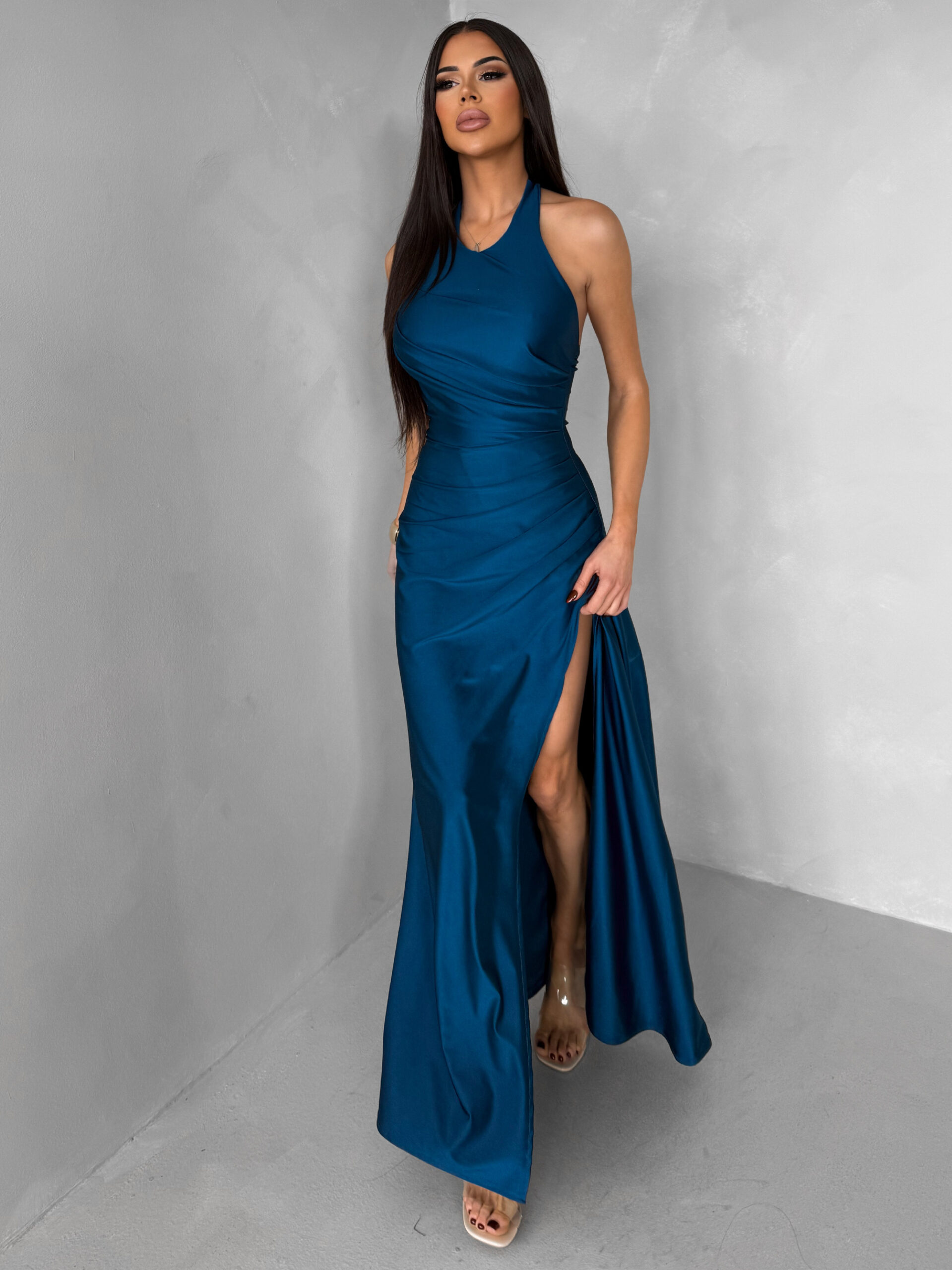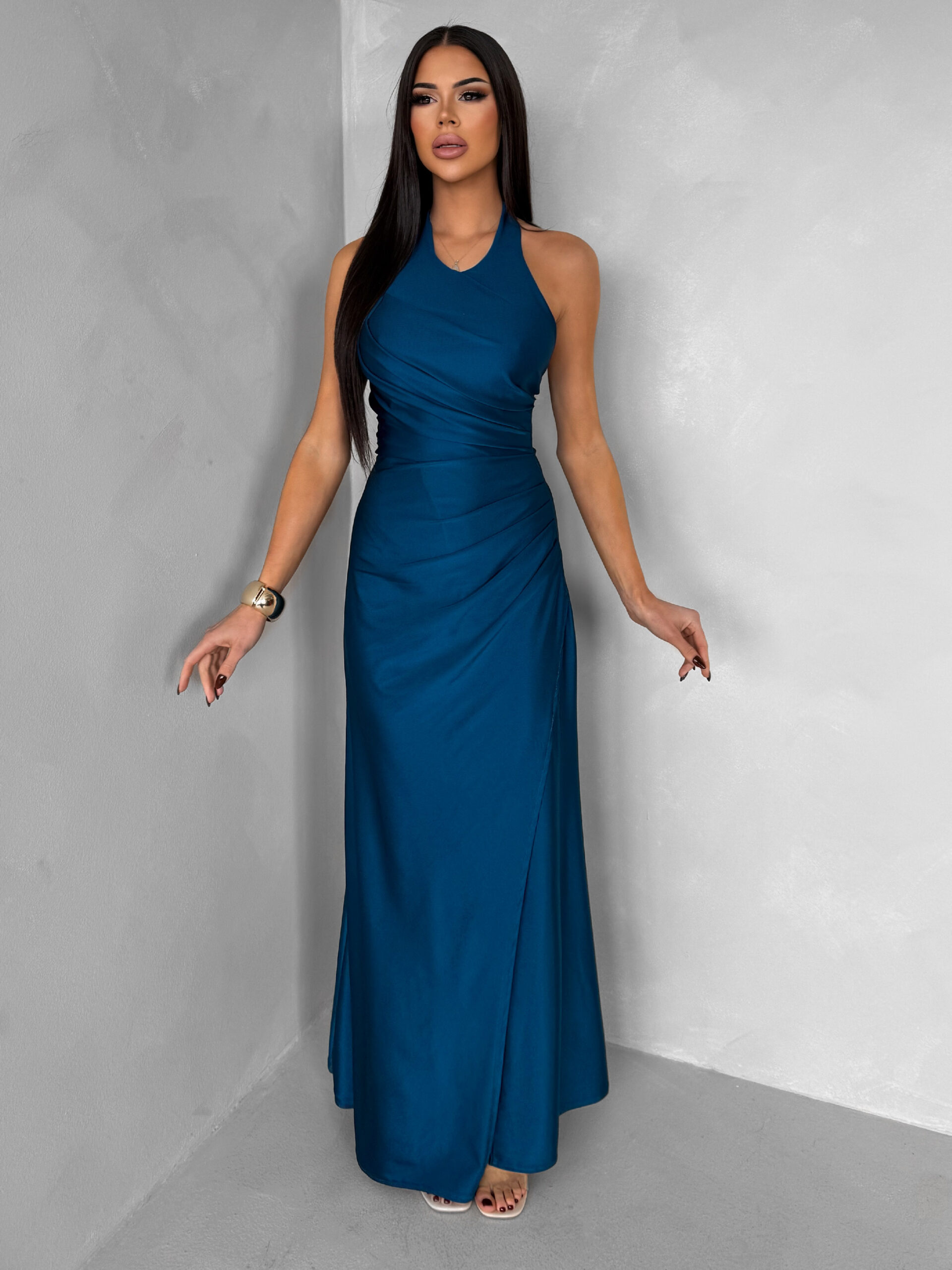 Petrolejové společenské dlouhé šaty SYVONA Velikost: ONESIZE