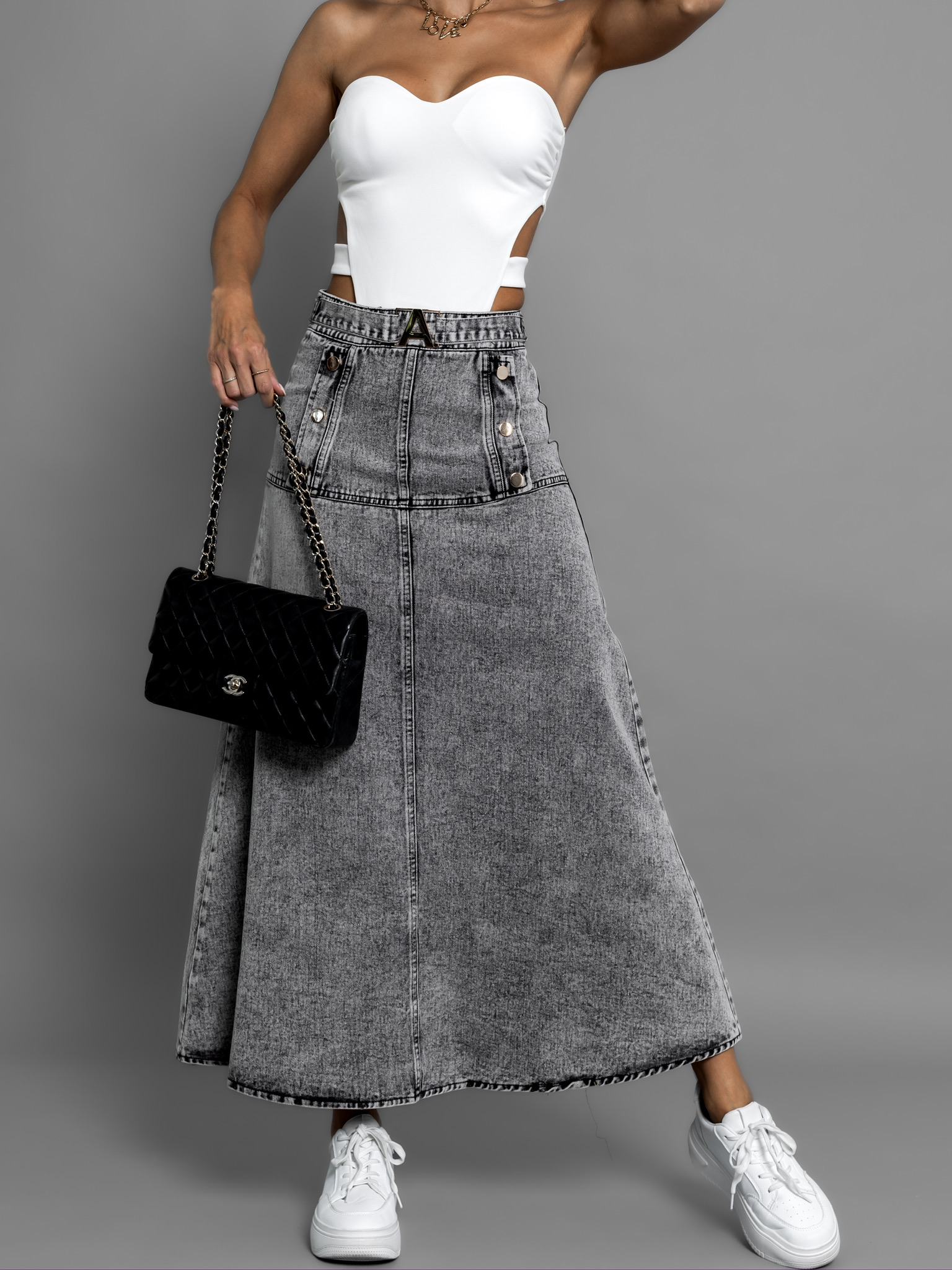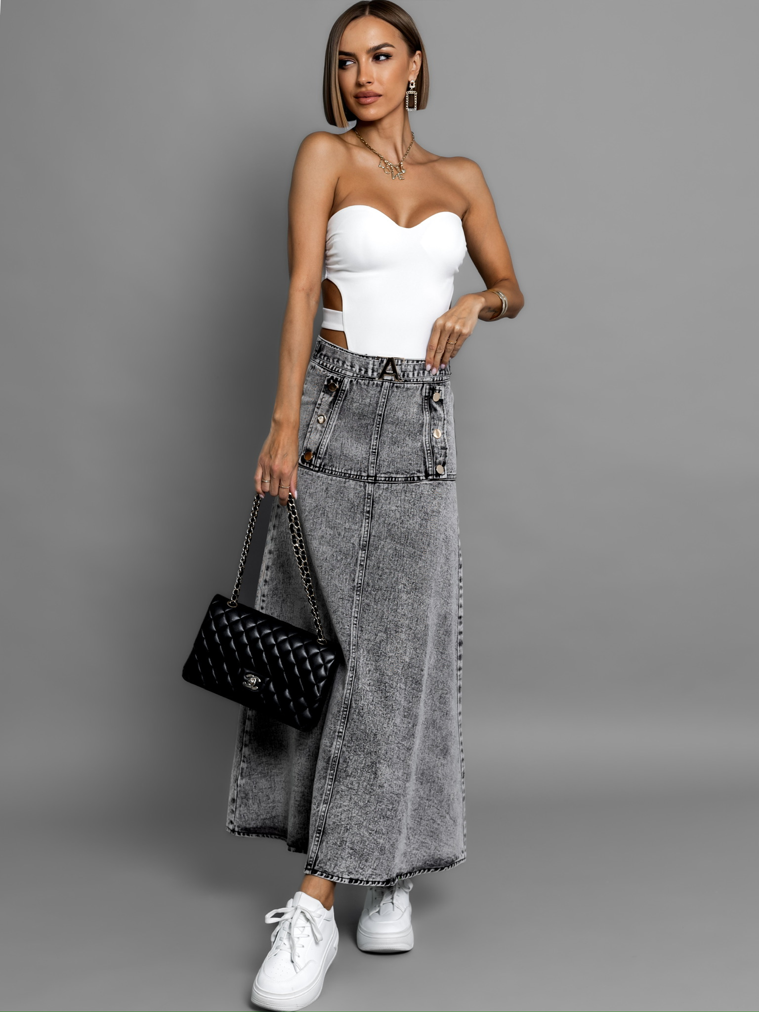 Šedá dlouhá džínová sukně BOOTS Velikost: L