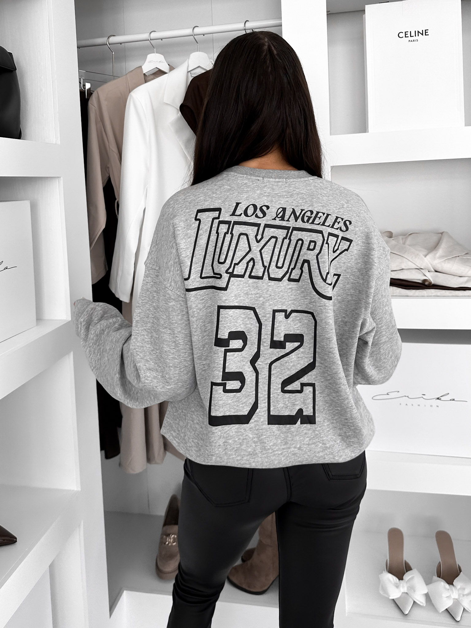Šedá oversize bavlněná mikina MEGGI s nápisem Velikost: ONESIZE
