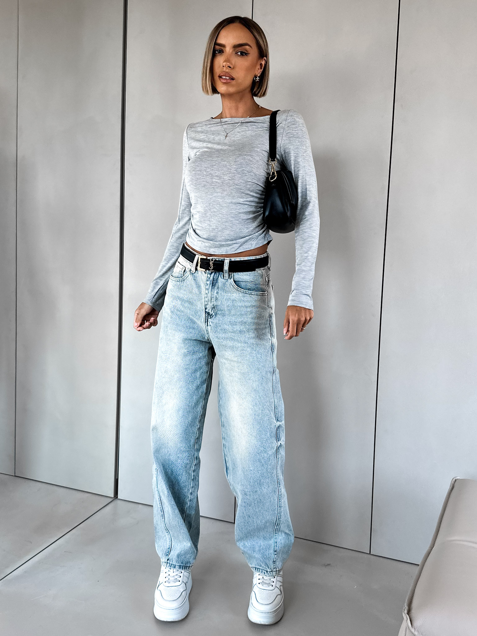 Šedé basic tričko NEELE s řasením Velikost: ONESIZE