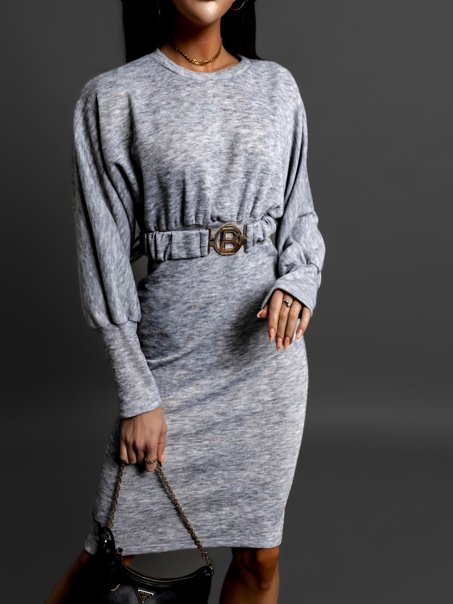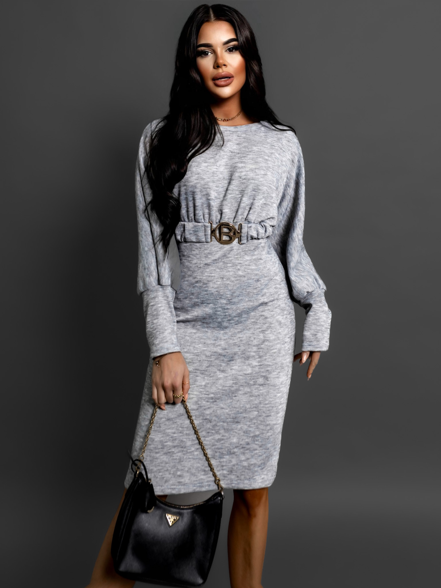 Šedé elegantní šaty PLUTO s páskem Velikost: ONESIZE