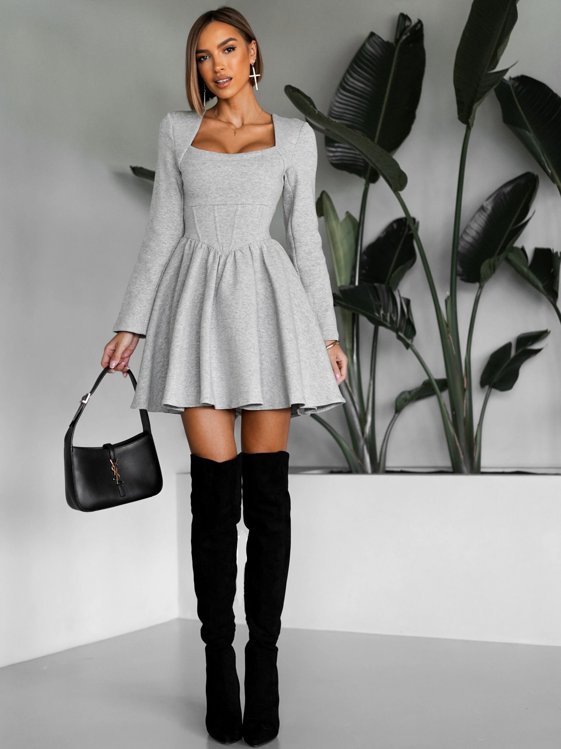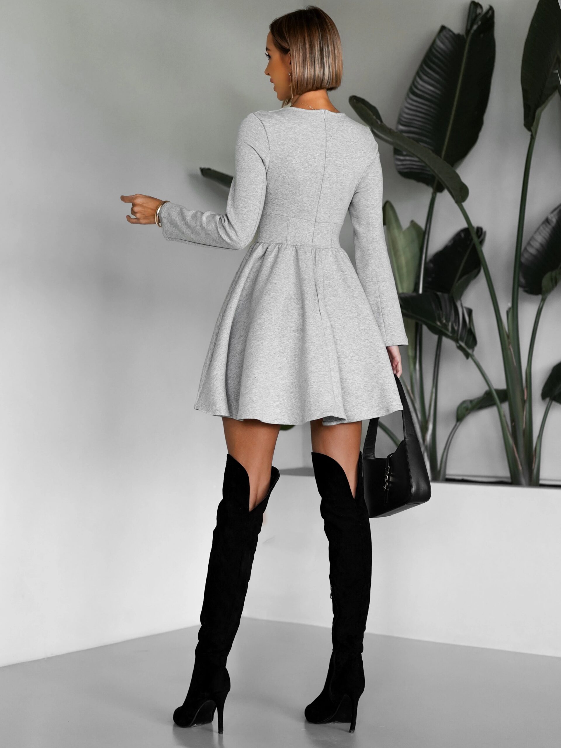 Šedé krátké áčkové vypasované šaty QUANG Velikost: S/M