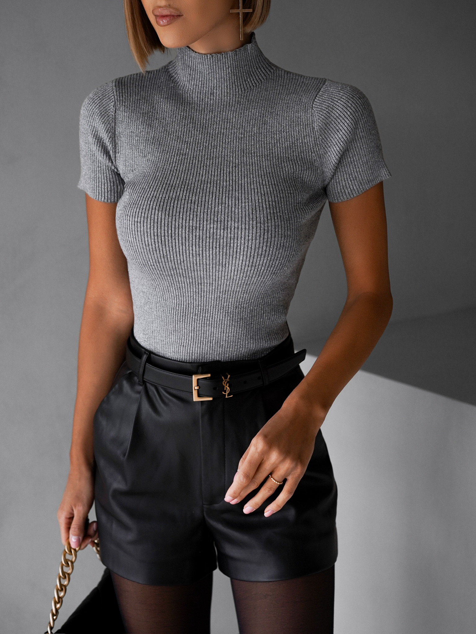 Šedé žebrované triko EVANTIA s krátkým rukávem Velikost: ONESIZE