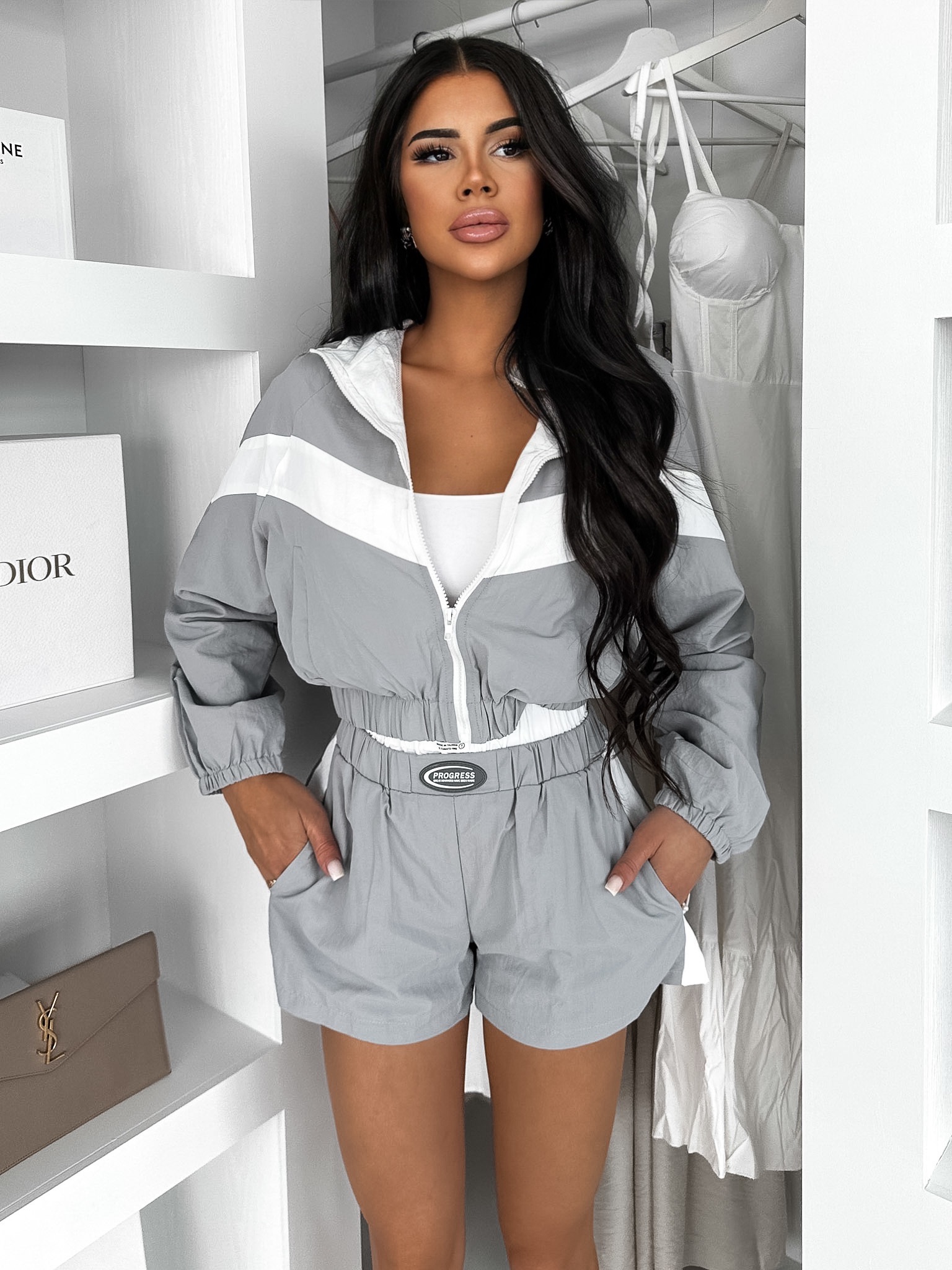 Šedý dvojdílný šusťákový komplet WHISPER Velikost: ONESIZE