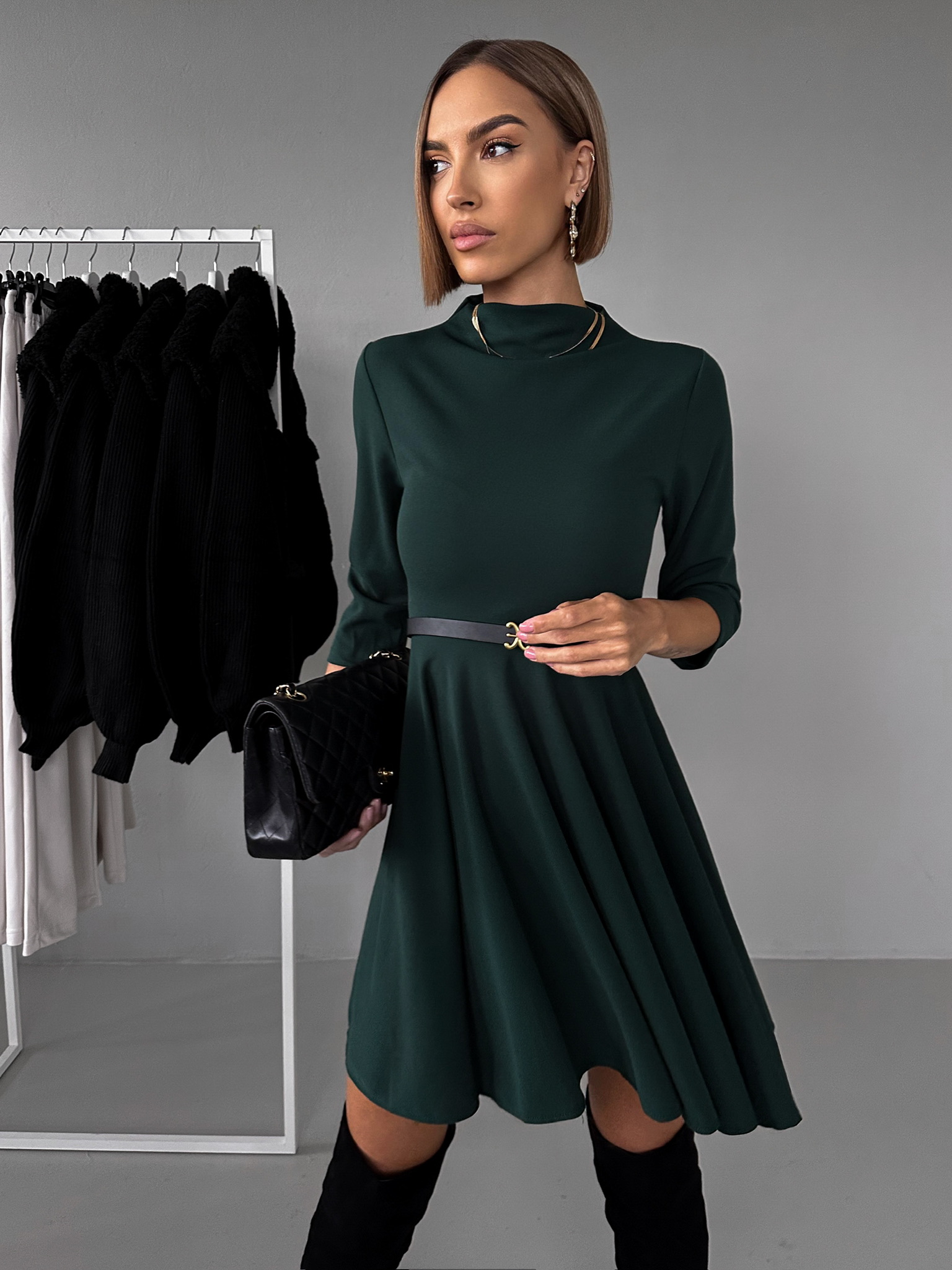 Smaragdové áčkové šaty GROUND s dlouhým rukávem