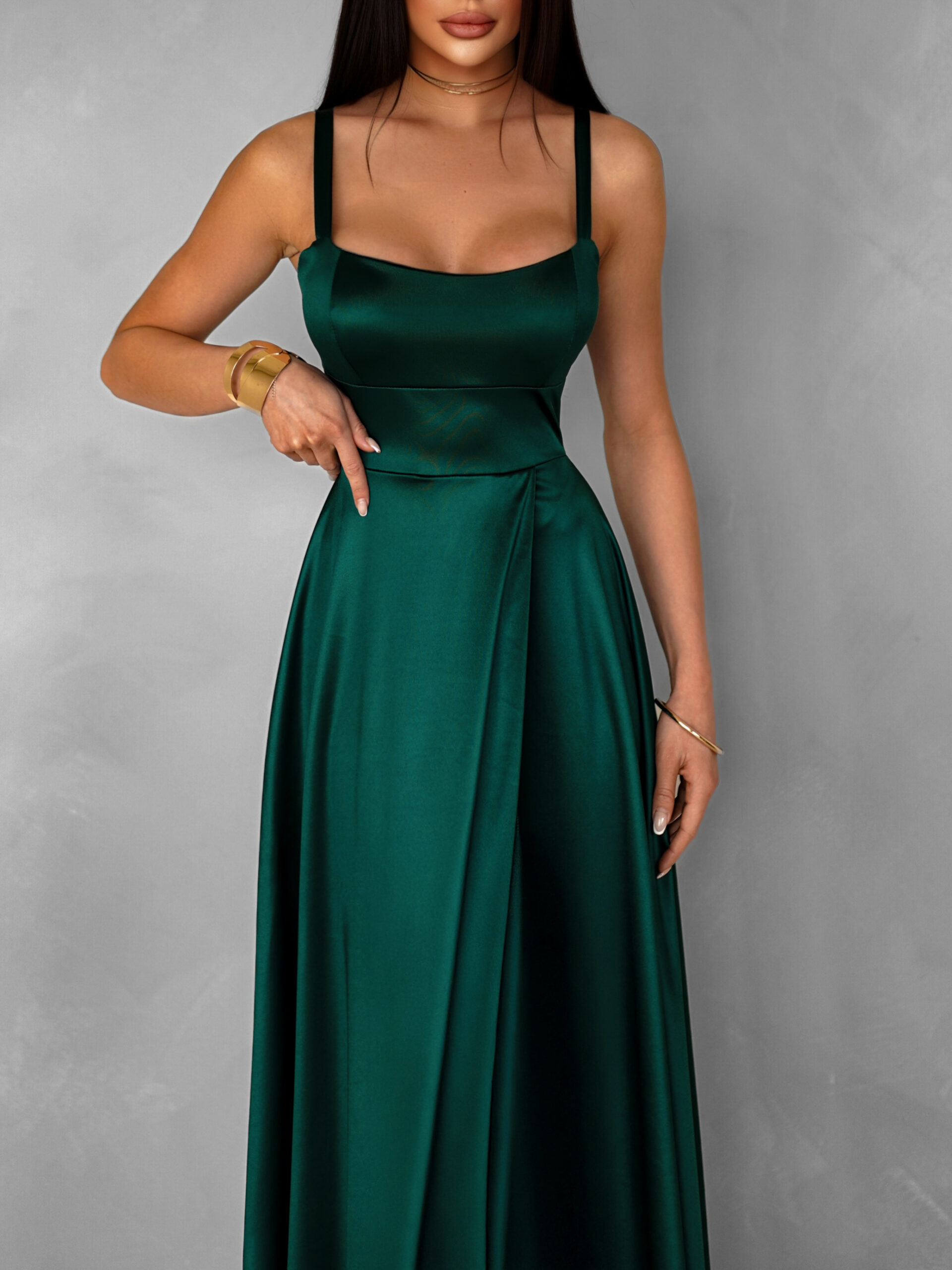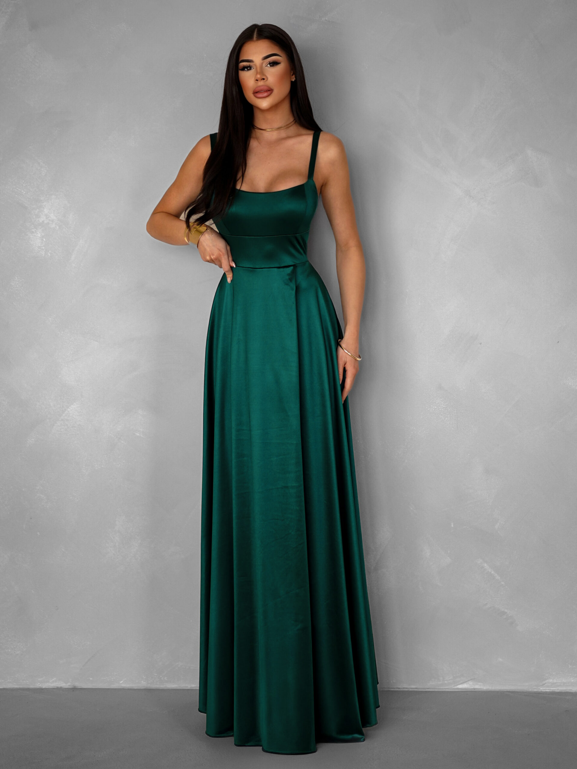 Smaragdové dlouhé saténové šaty HELSIN na ramínka Velikost: ONESIZE