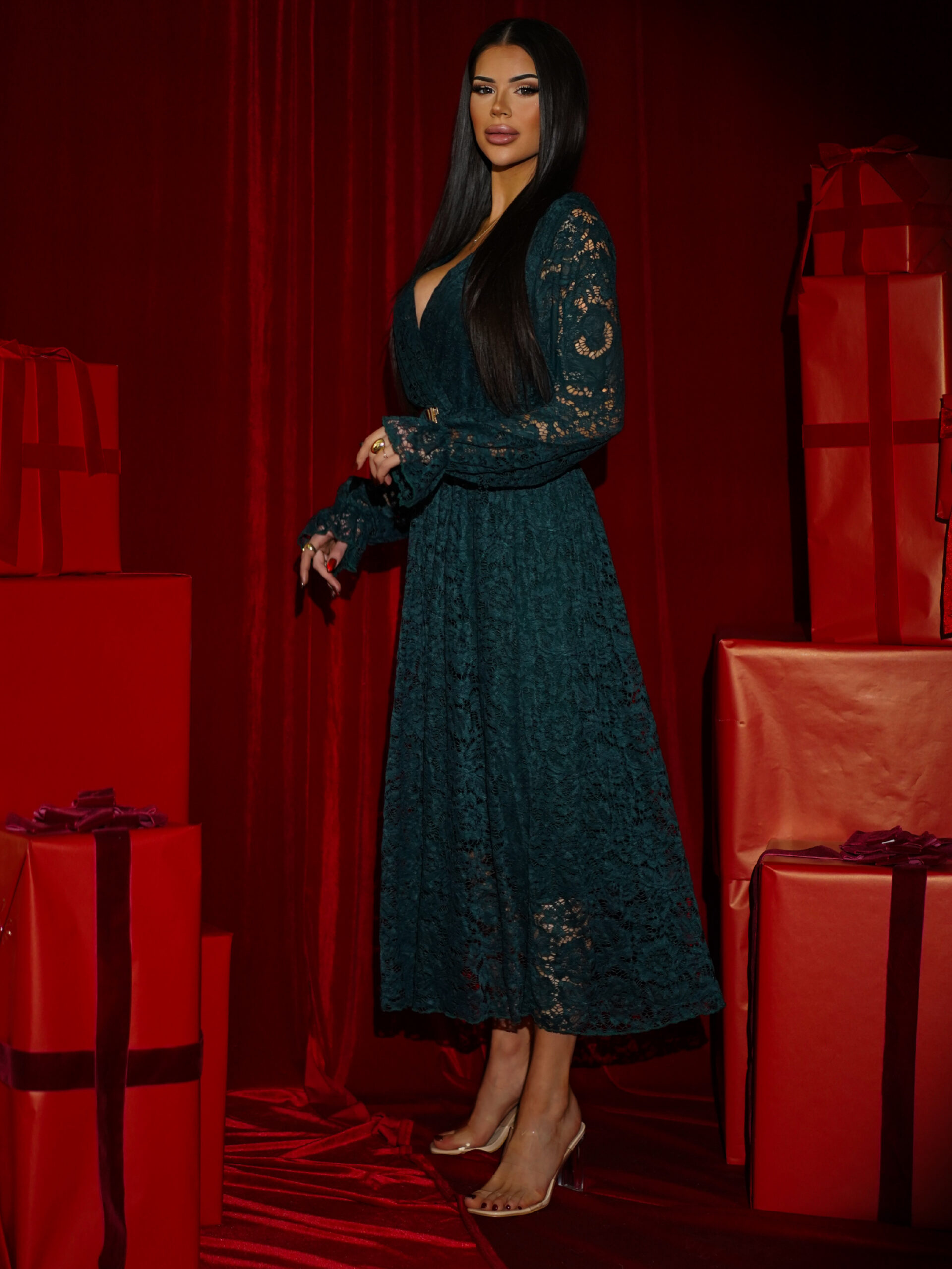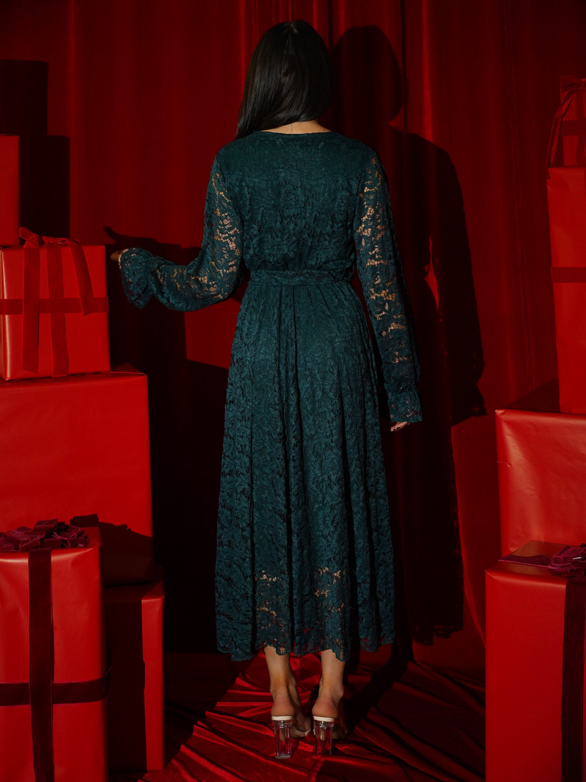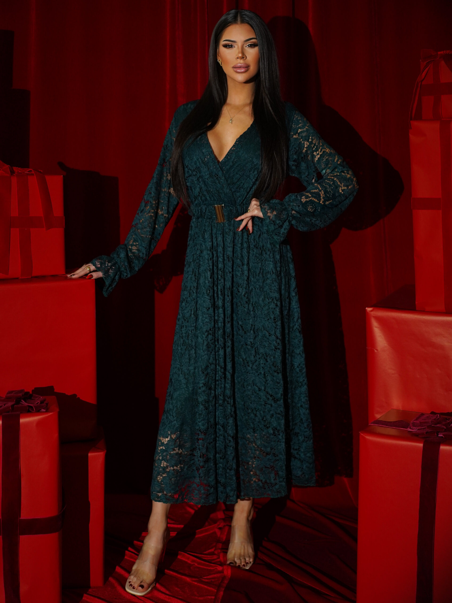 Smaragdové krajkové společenské midi šaty LIRONDE Velikost: ONESIZE