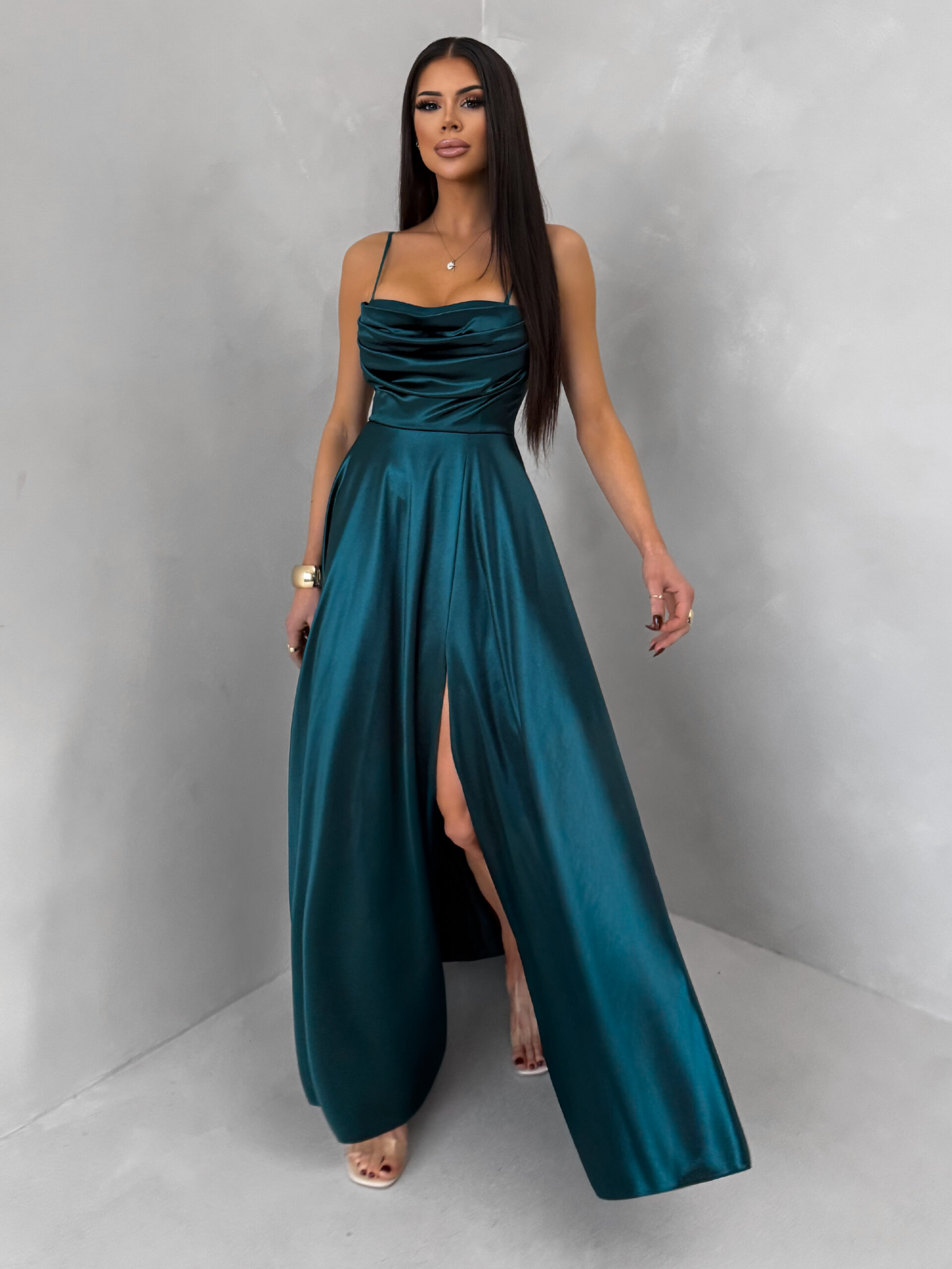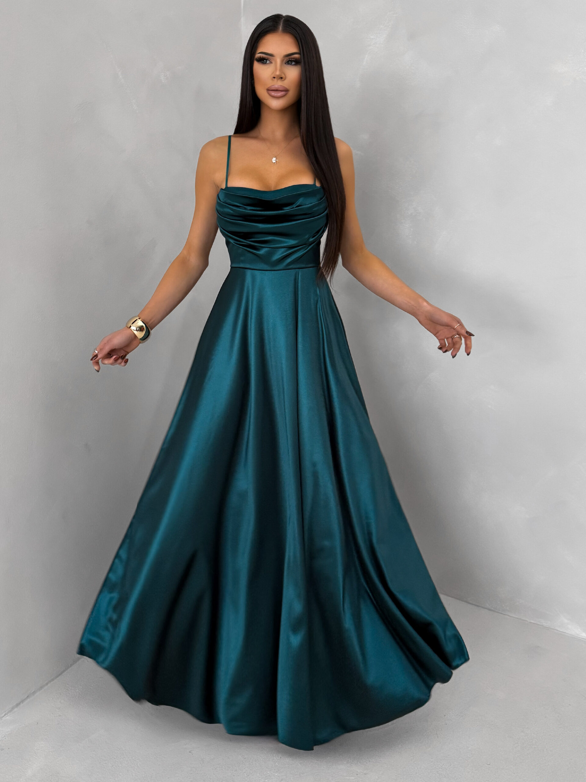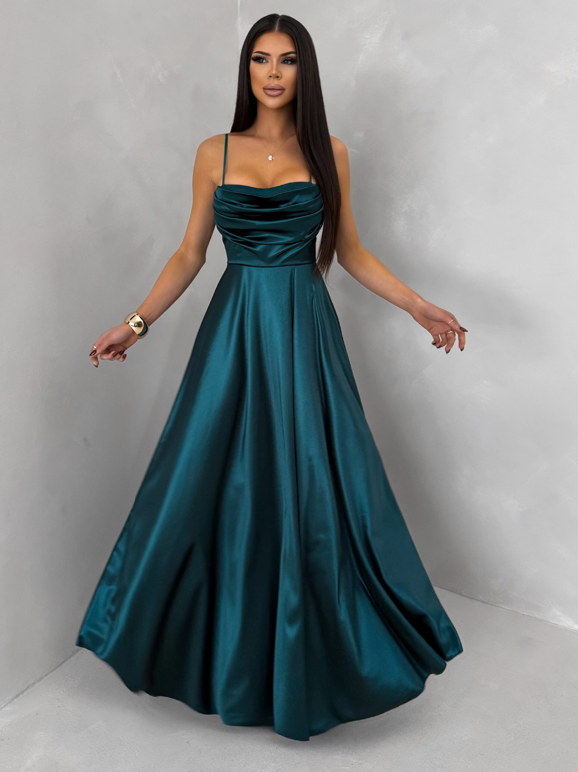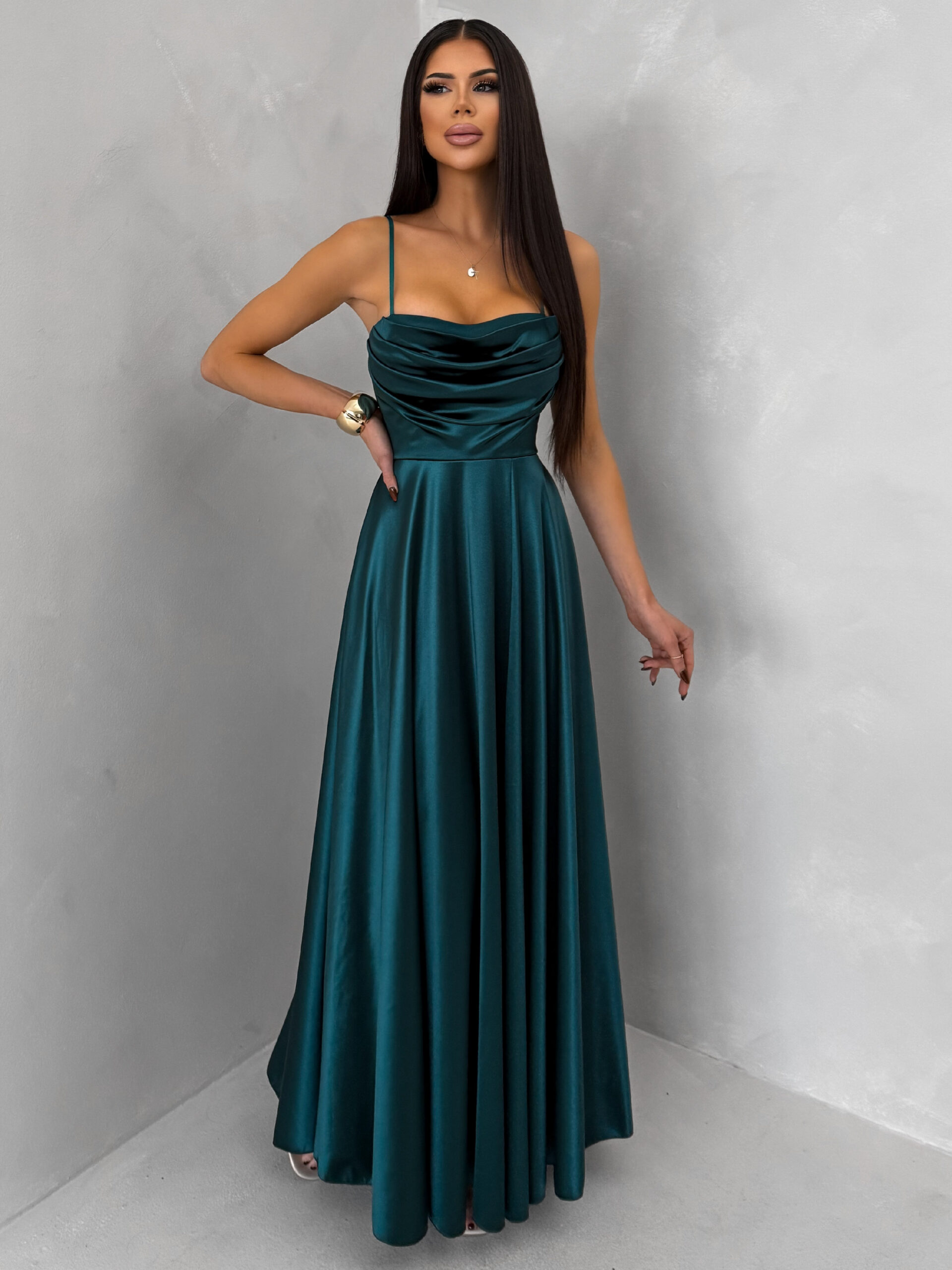 Smaragdové saténové dlouhé společenské šaty LUNOREX Velikost: ONESIZE