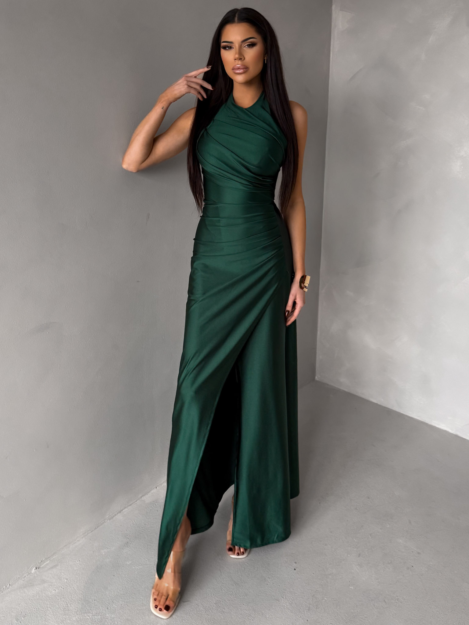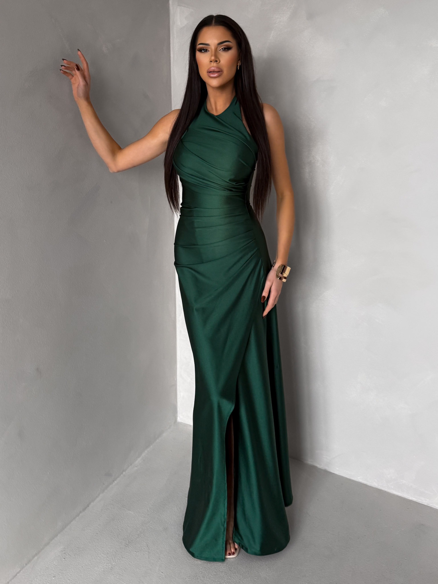 Smaragdové společenské dlouhé šaty SYVONA Velikost: ONESIZE