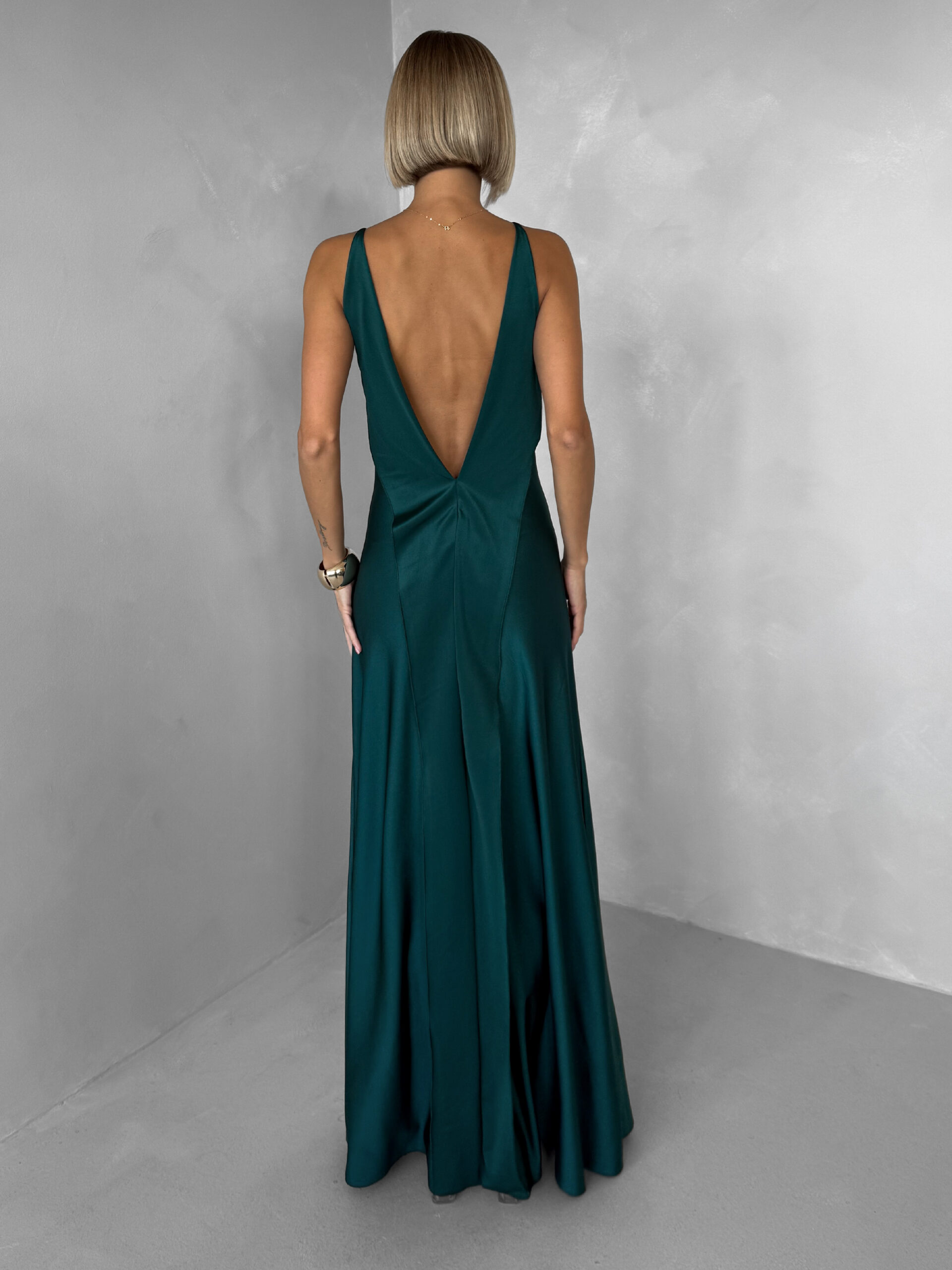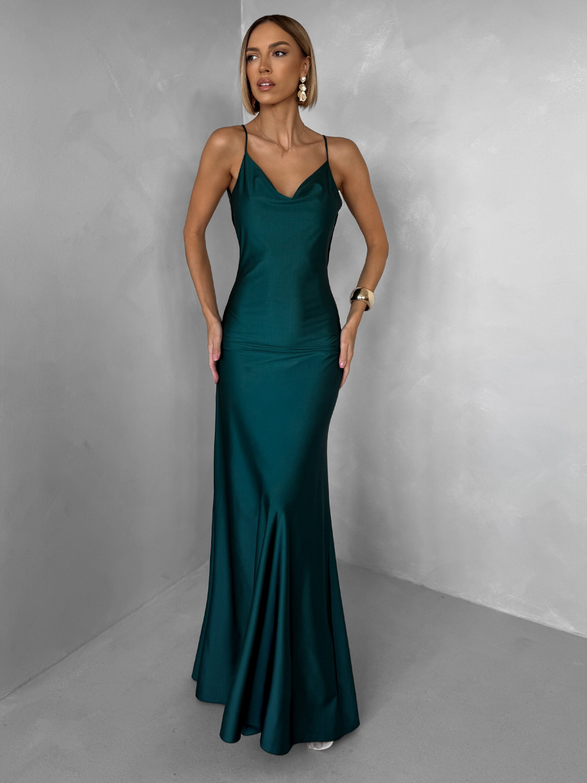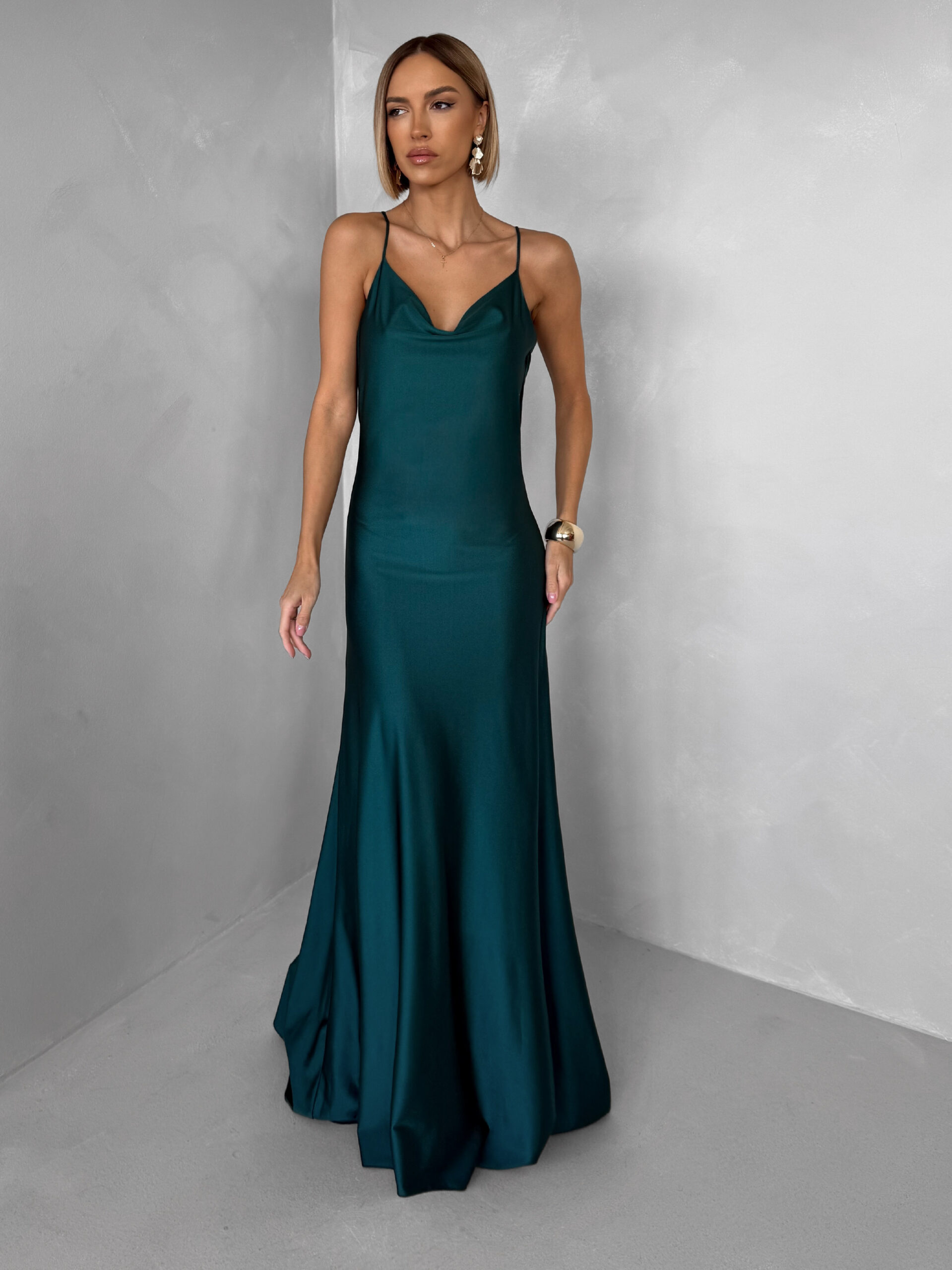 Smaragdové společenské saténové dlouhé šaty CARMIYA Velikost: ONESIZE
