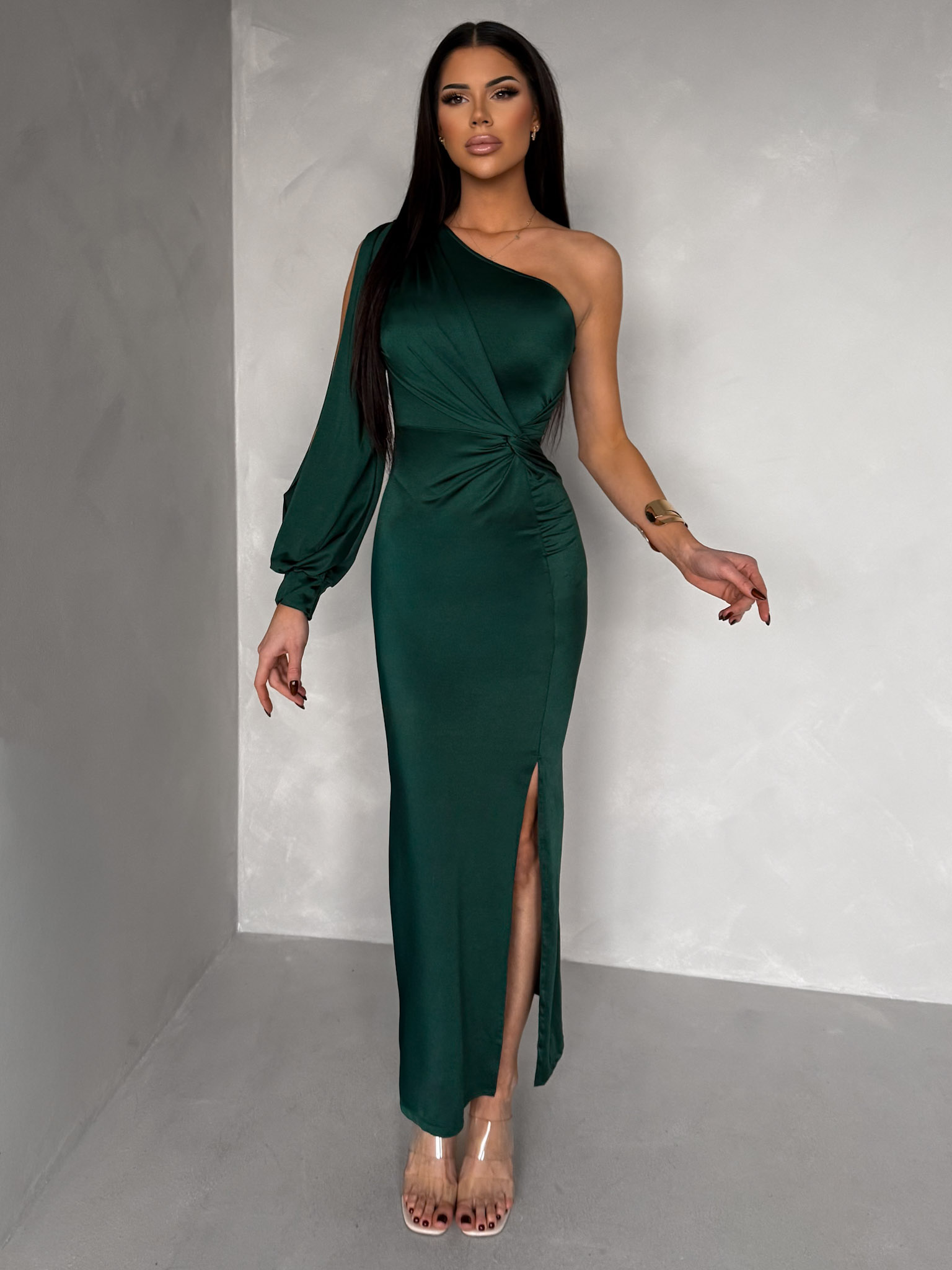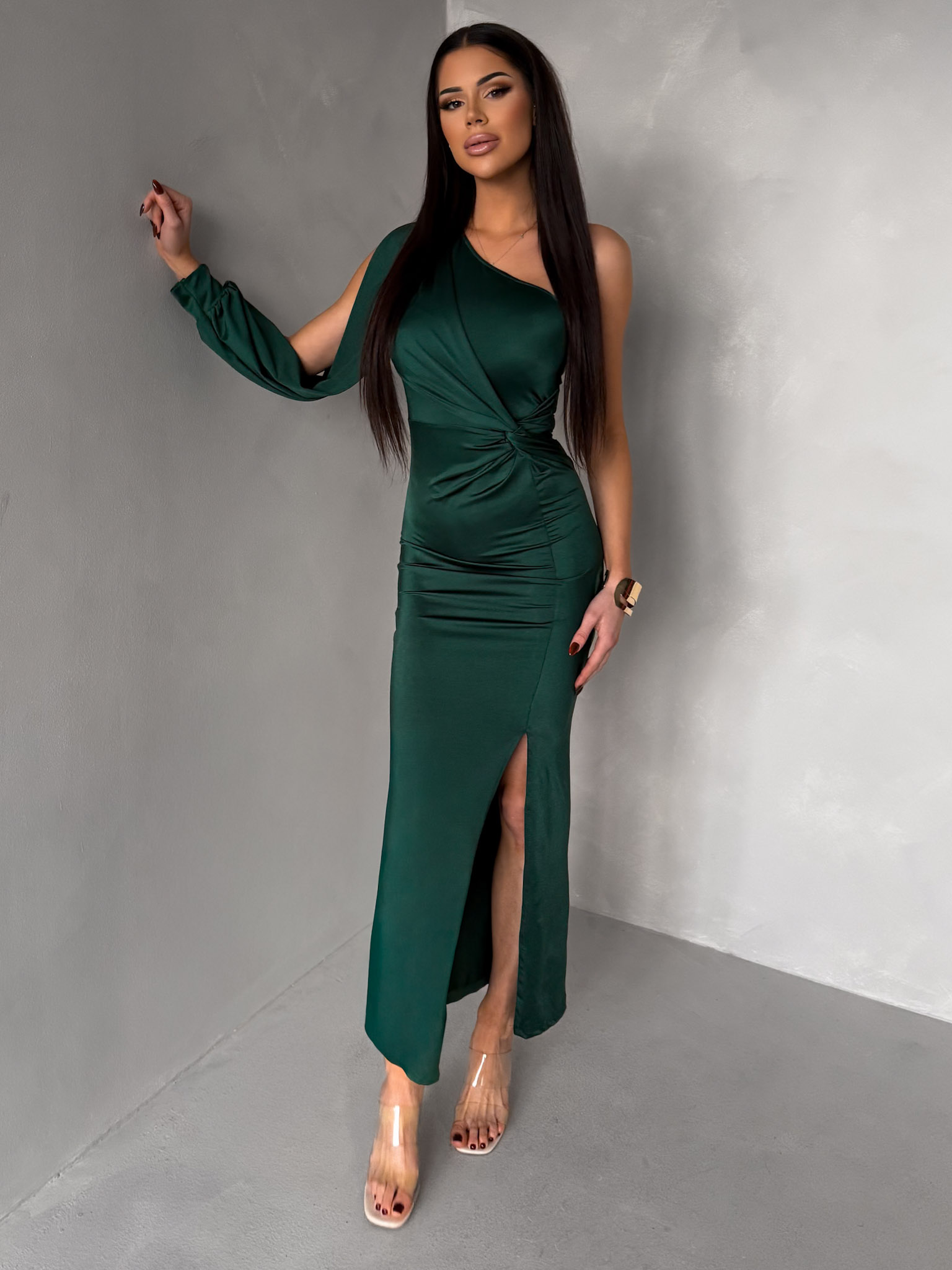 Smaragdové společenské večerní šaty DUFOUR na jedno rameno Velikost: ONESIZE