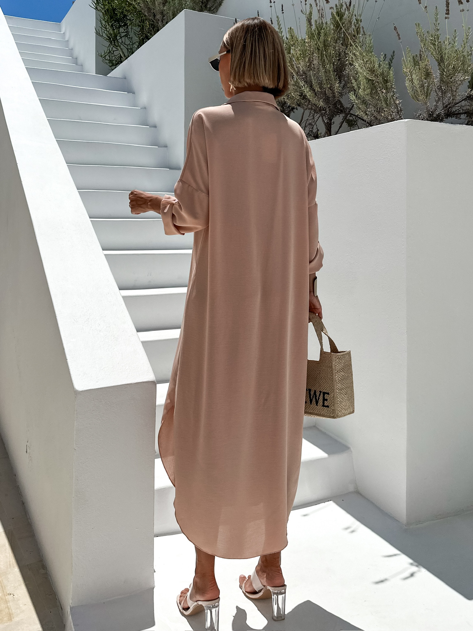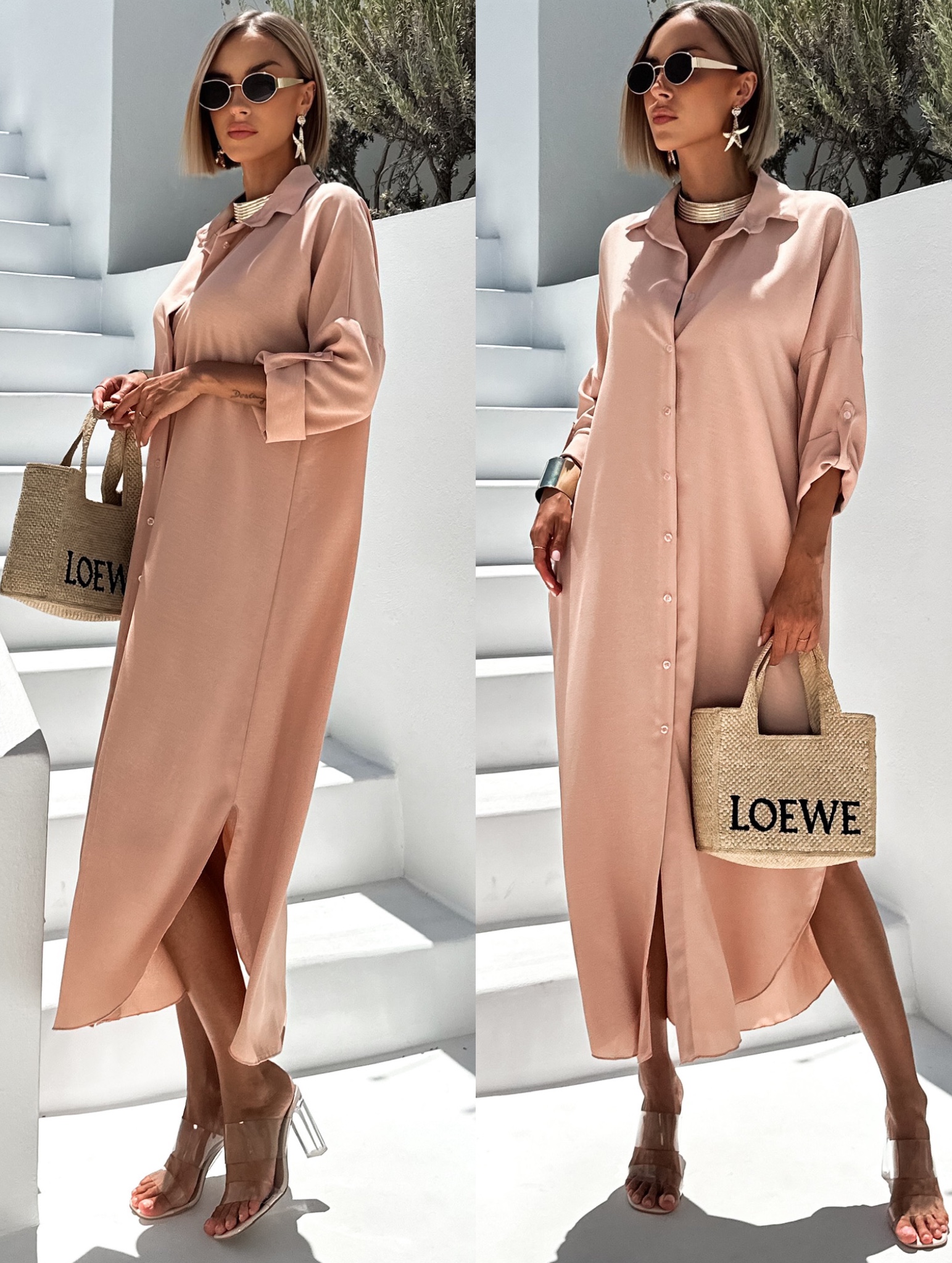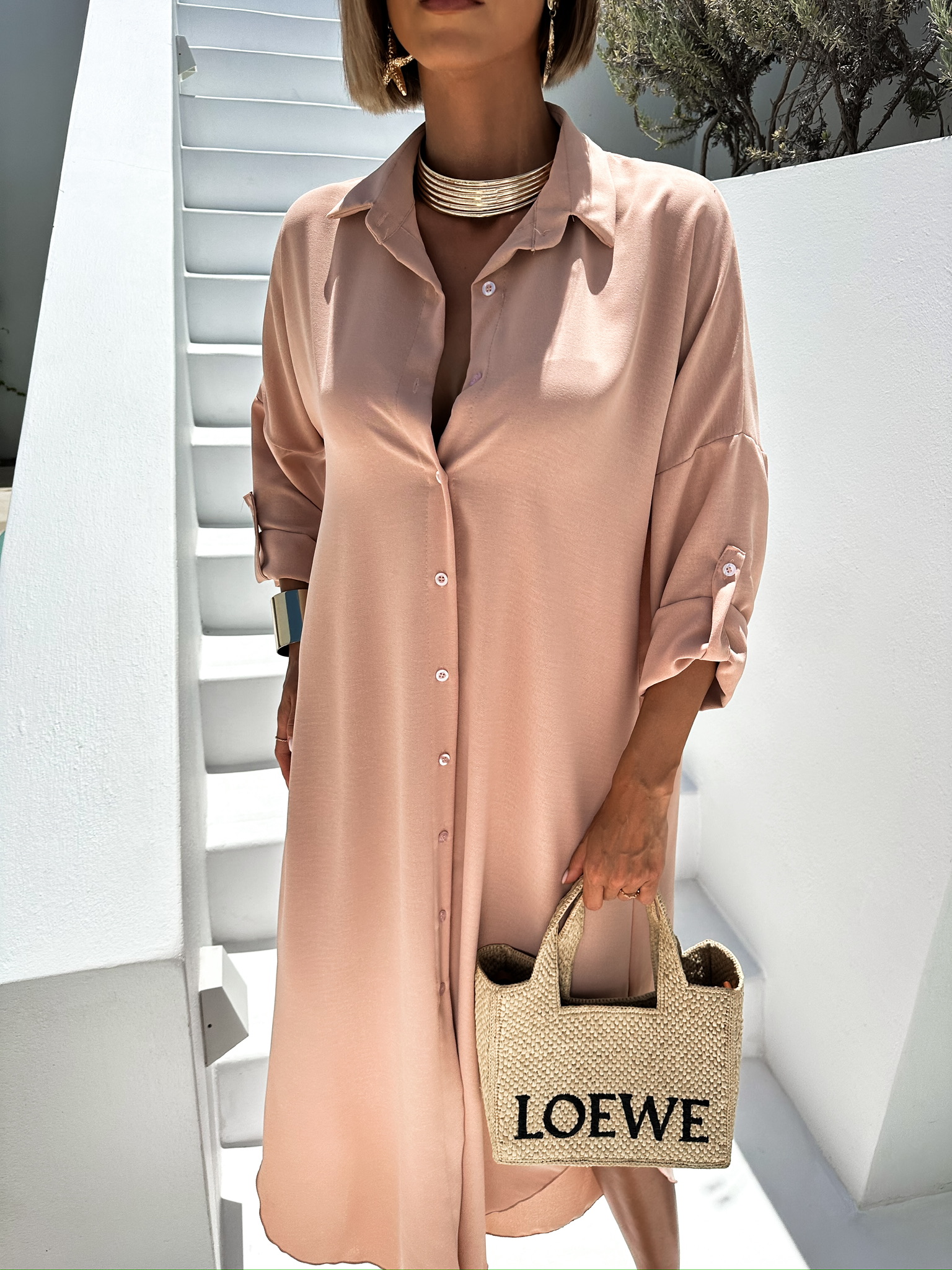 Starorůžové dlouhé maxi košilové šaty NESSY Velikost: ONESIZE