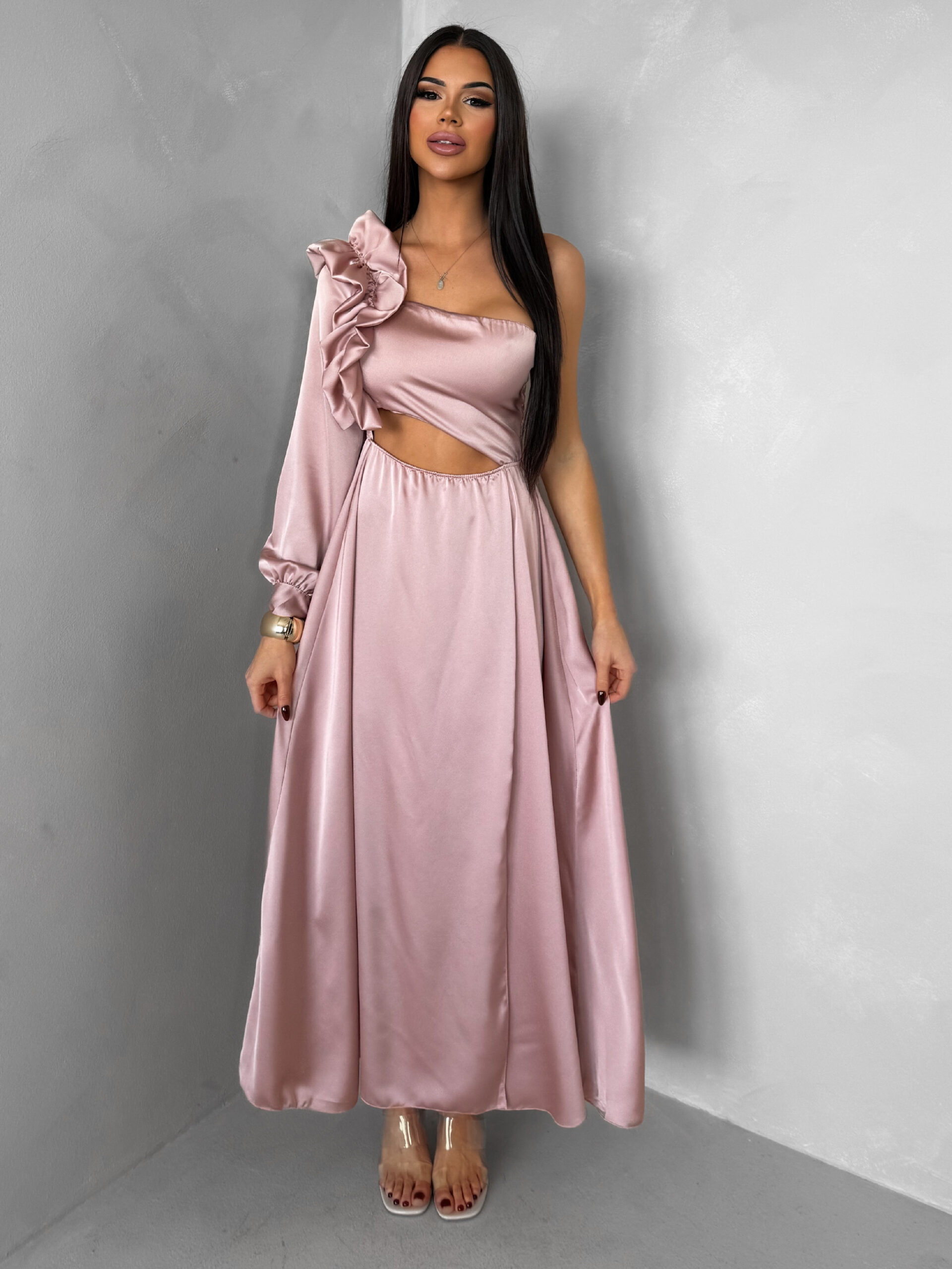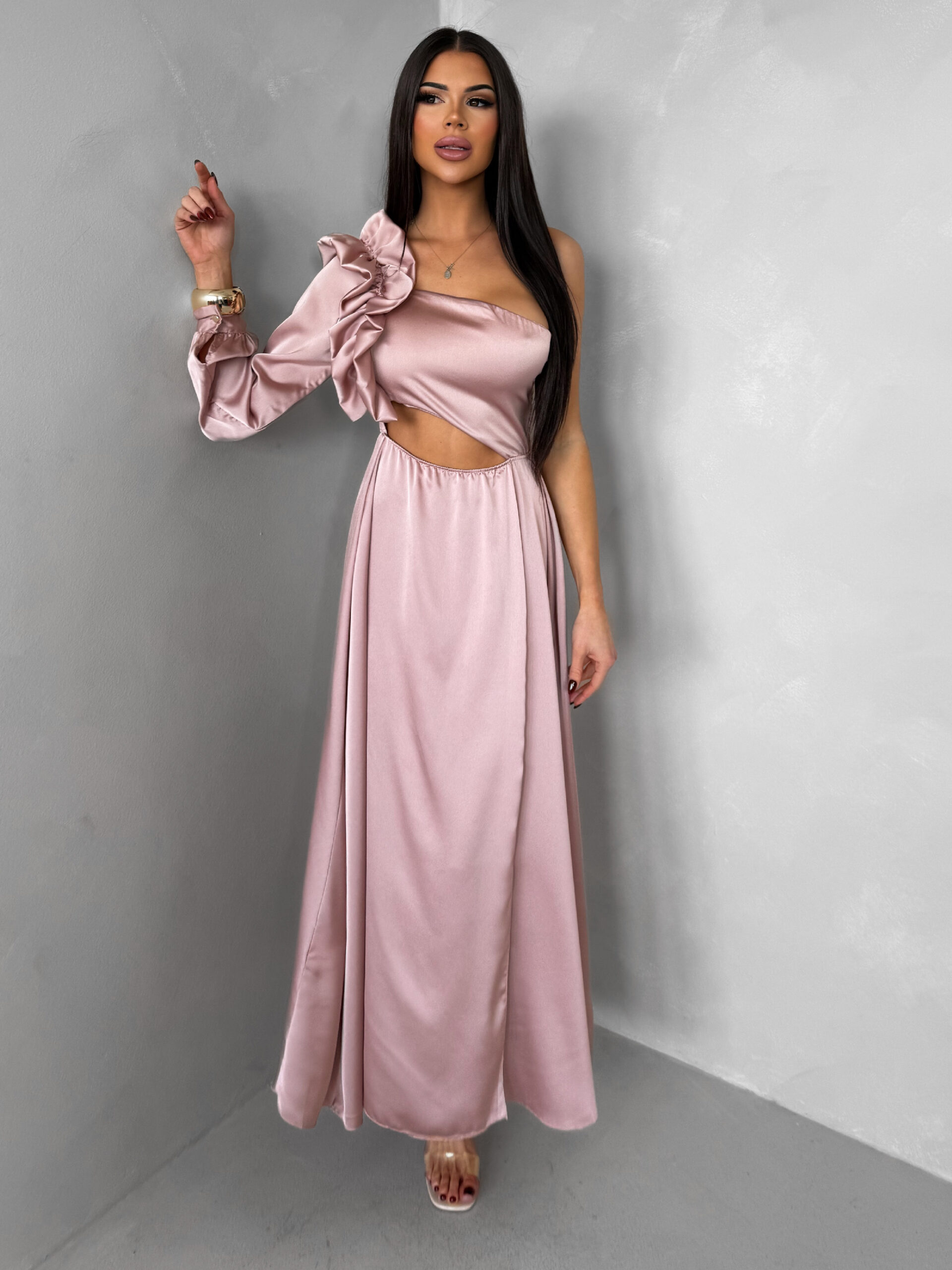 Starorůžové dlouhé plesové saténové šaty ZAYVIX Velikost: ONESIZE