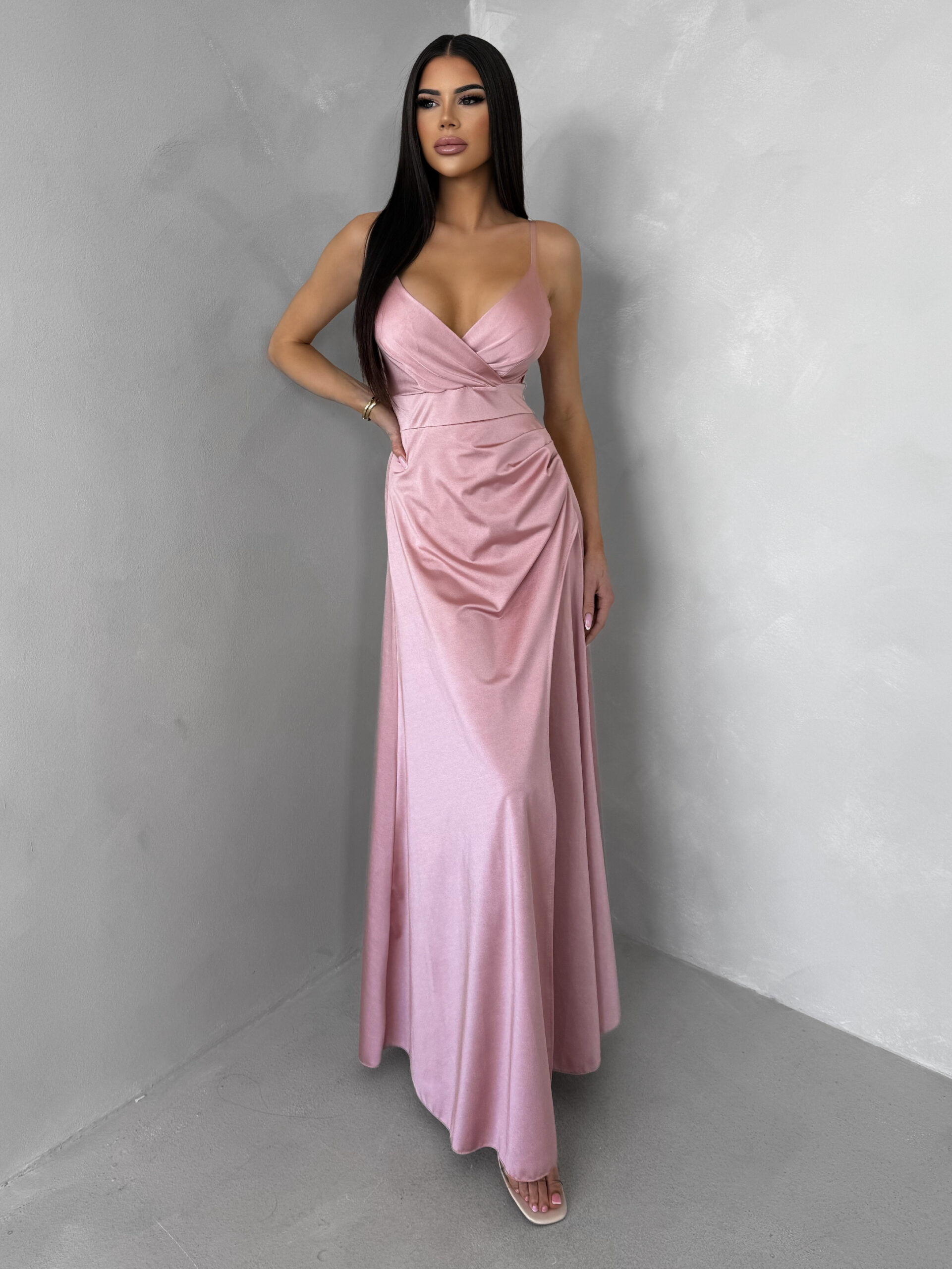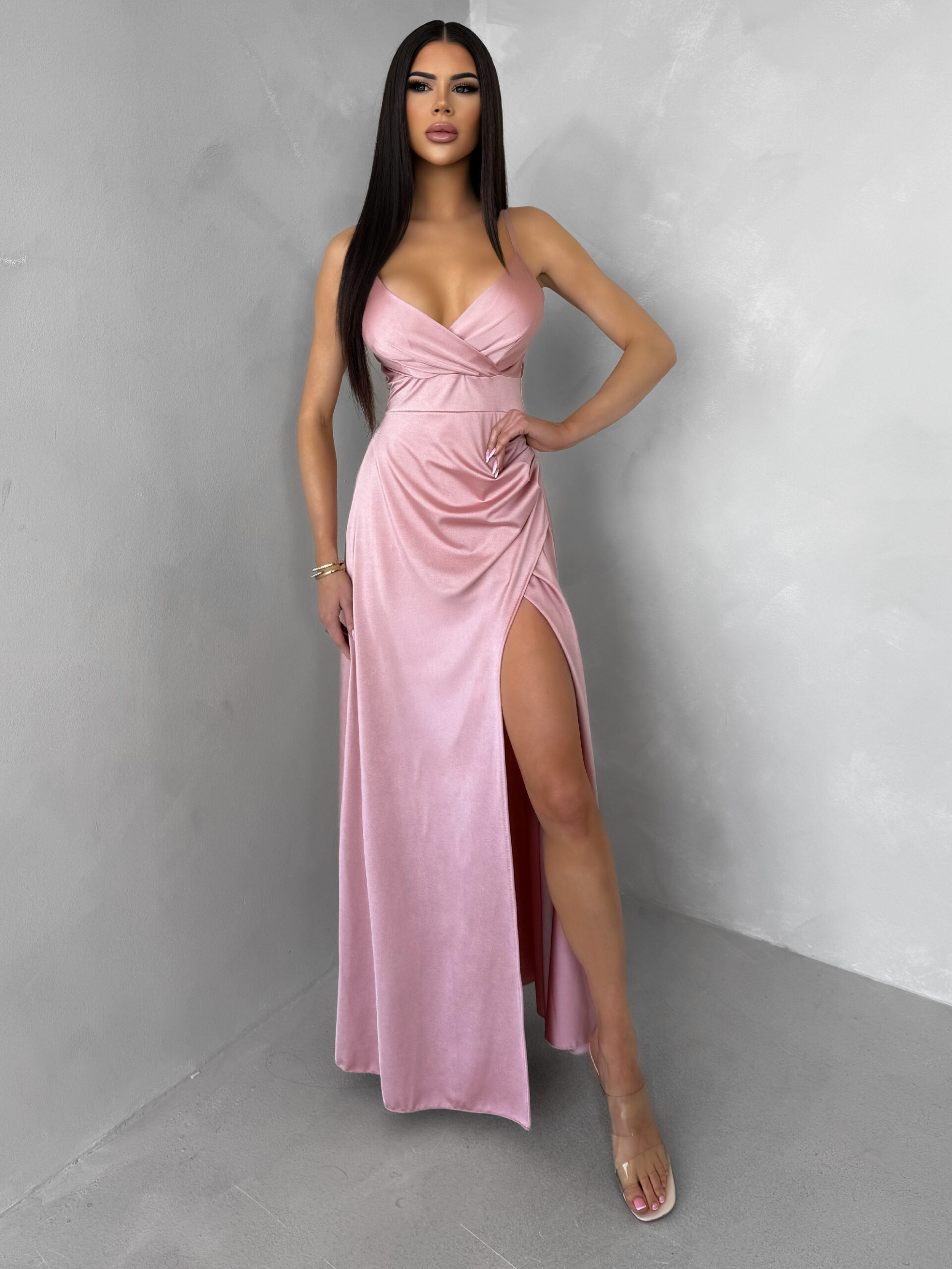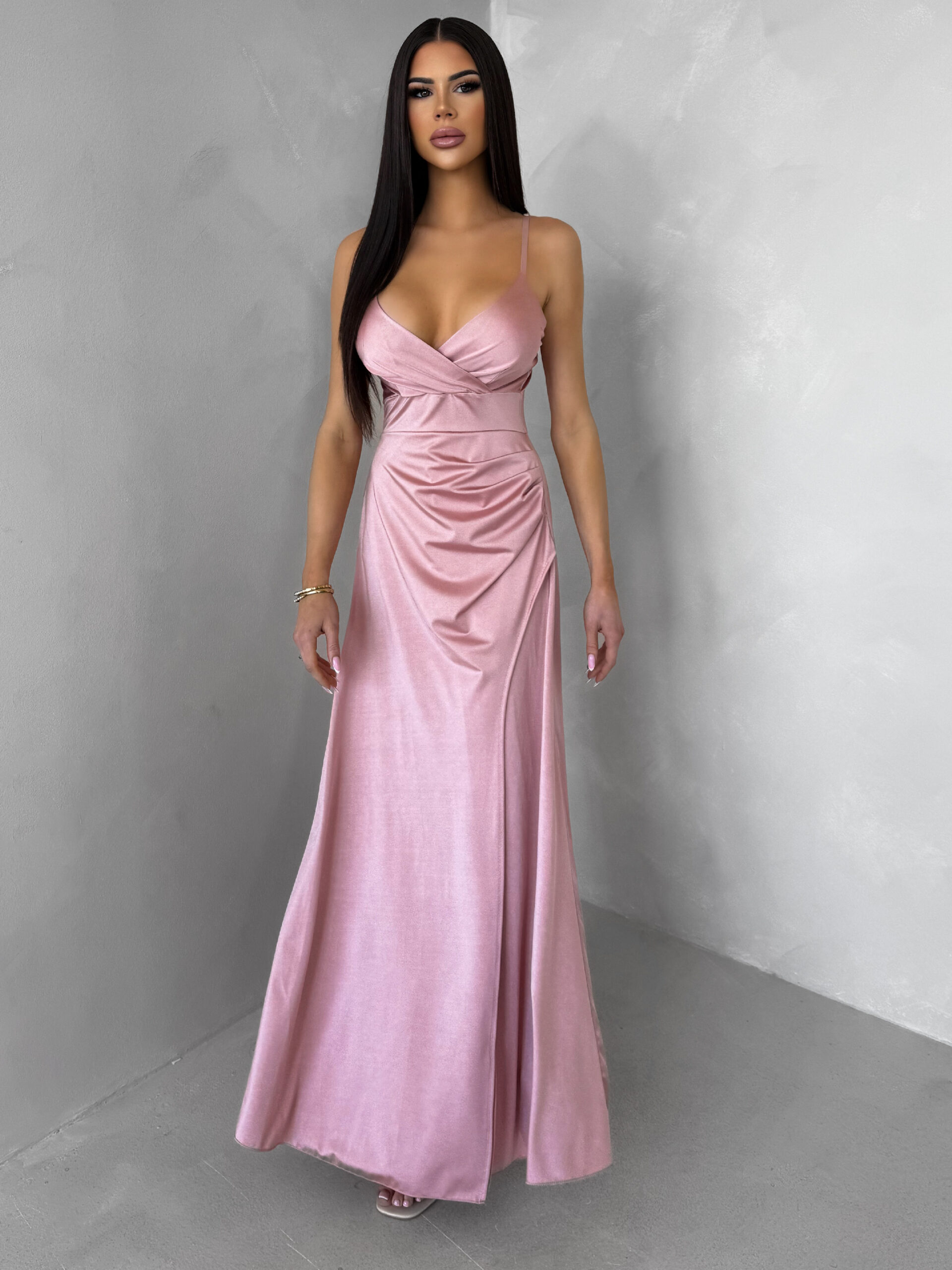 Starorůžové dlouhé saténové šaty ARANKA na ramínka Velikost: ONESIZE