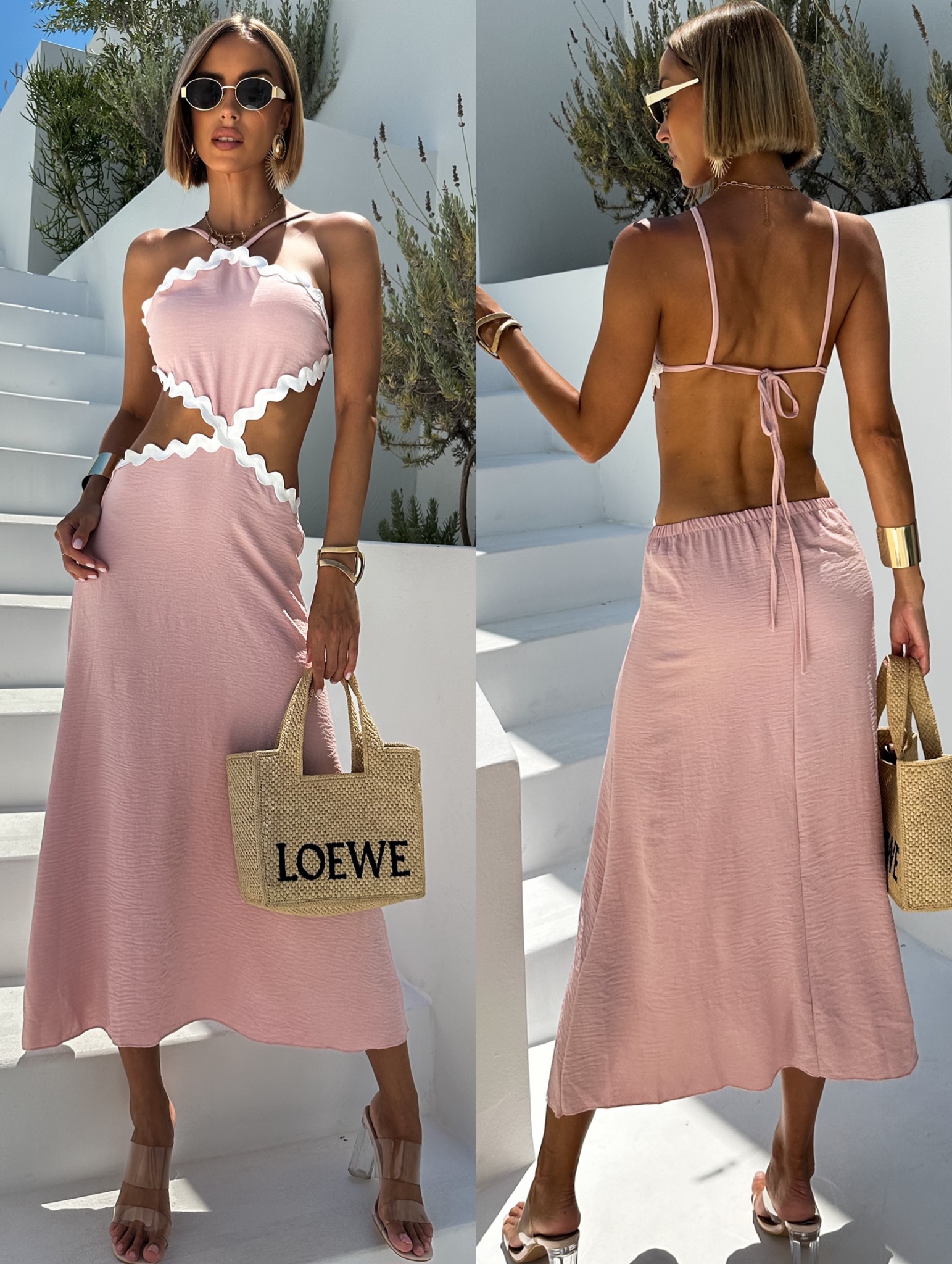 Starorůžové dlouhé šaty VANILLA s průstřihy Velikost: ONESIZE