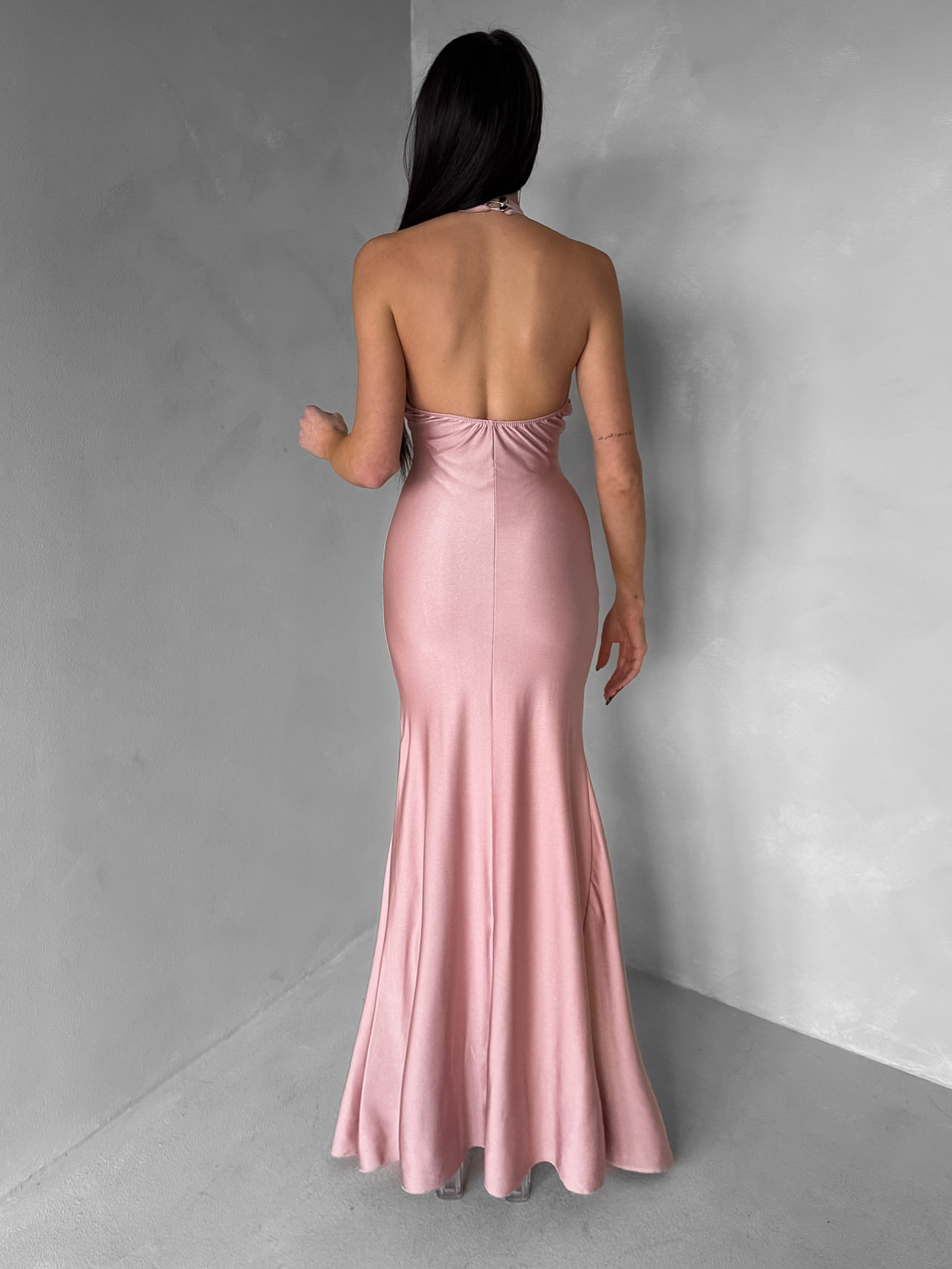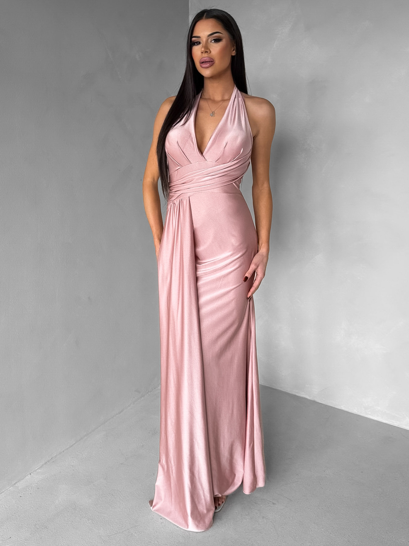 Starorůžové saténové dlouhé společenské šaty CELESTIA Velikost: ONESIZE