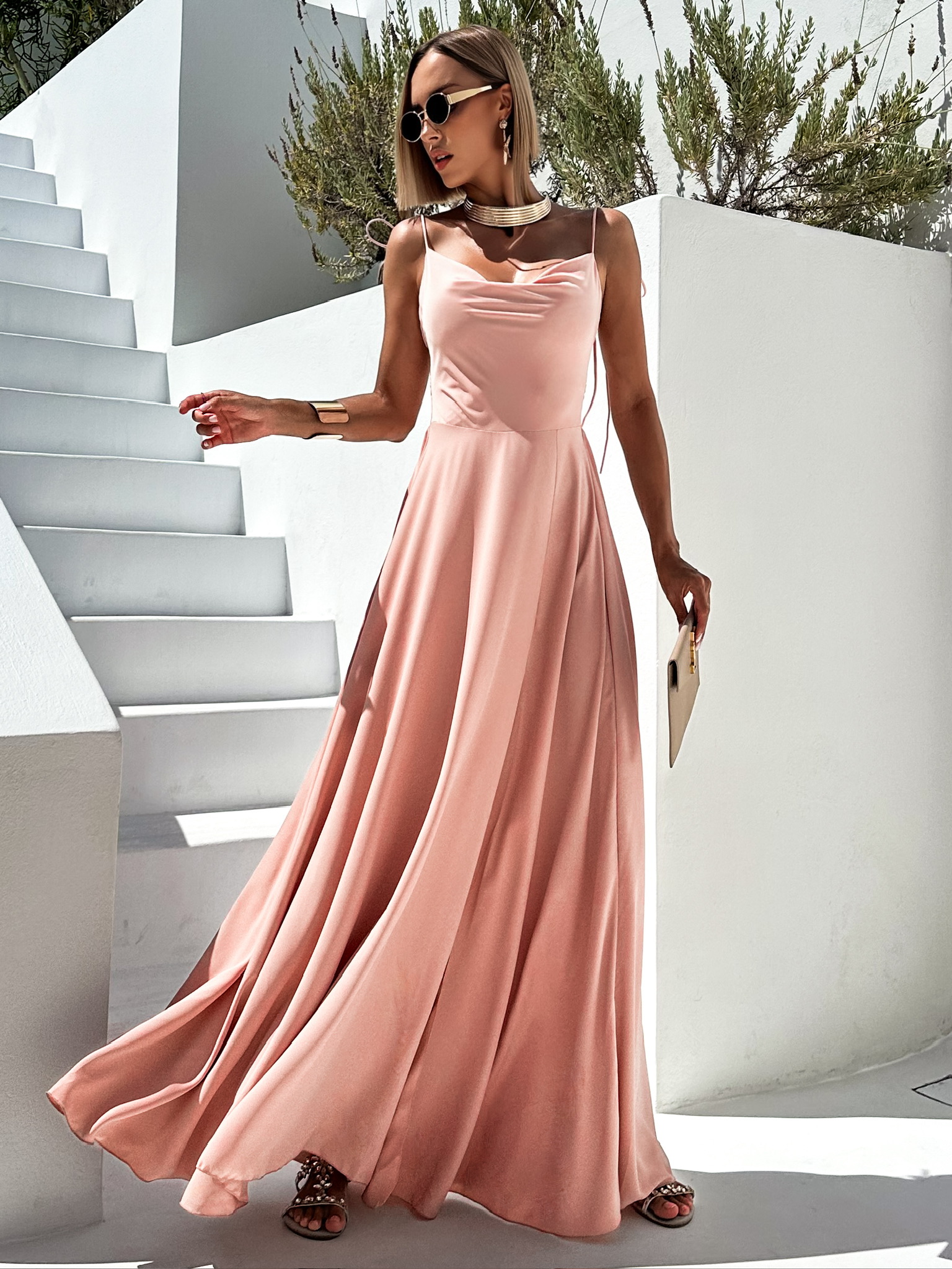 Starorůžové společenské dlouhé šaty LERDISEL Velikost: ONESIZE