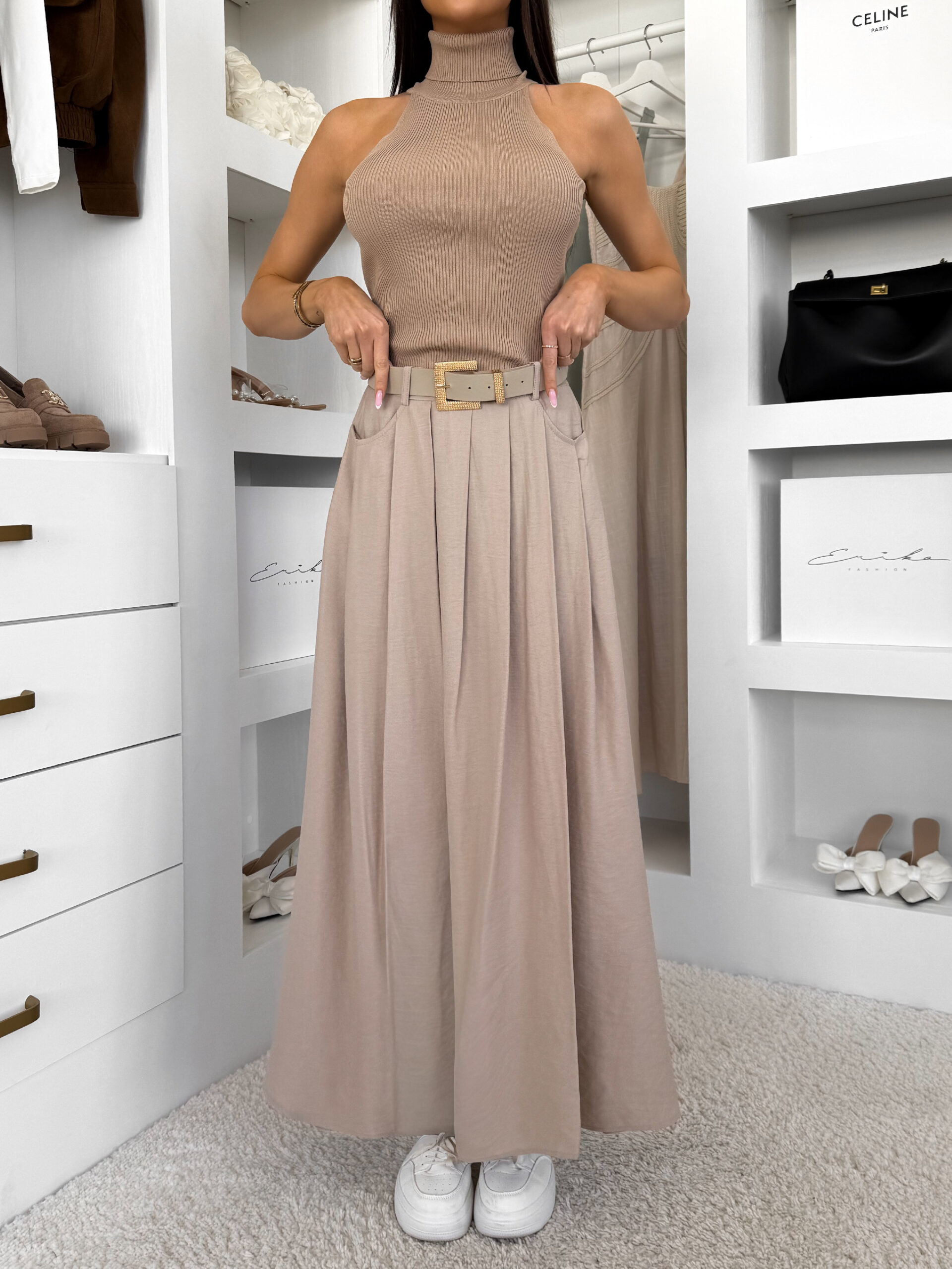 Světle hnědá dlouhá stylová sukně JUVANTE s páskem Velikost: L