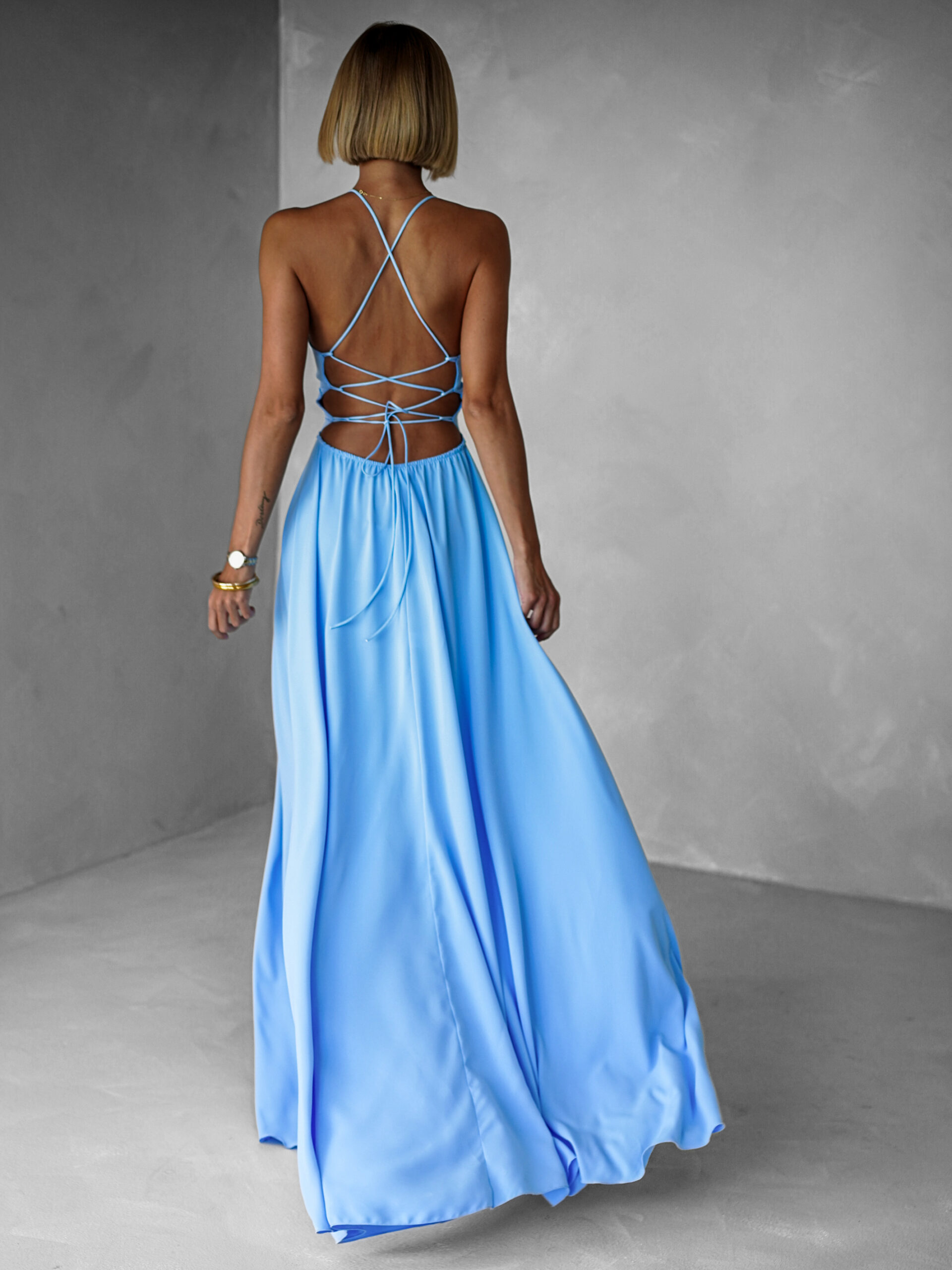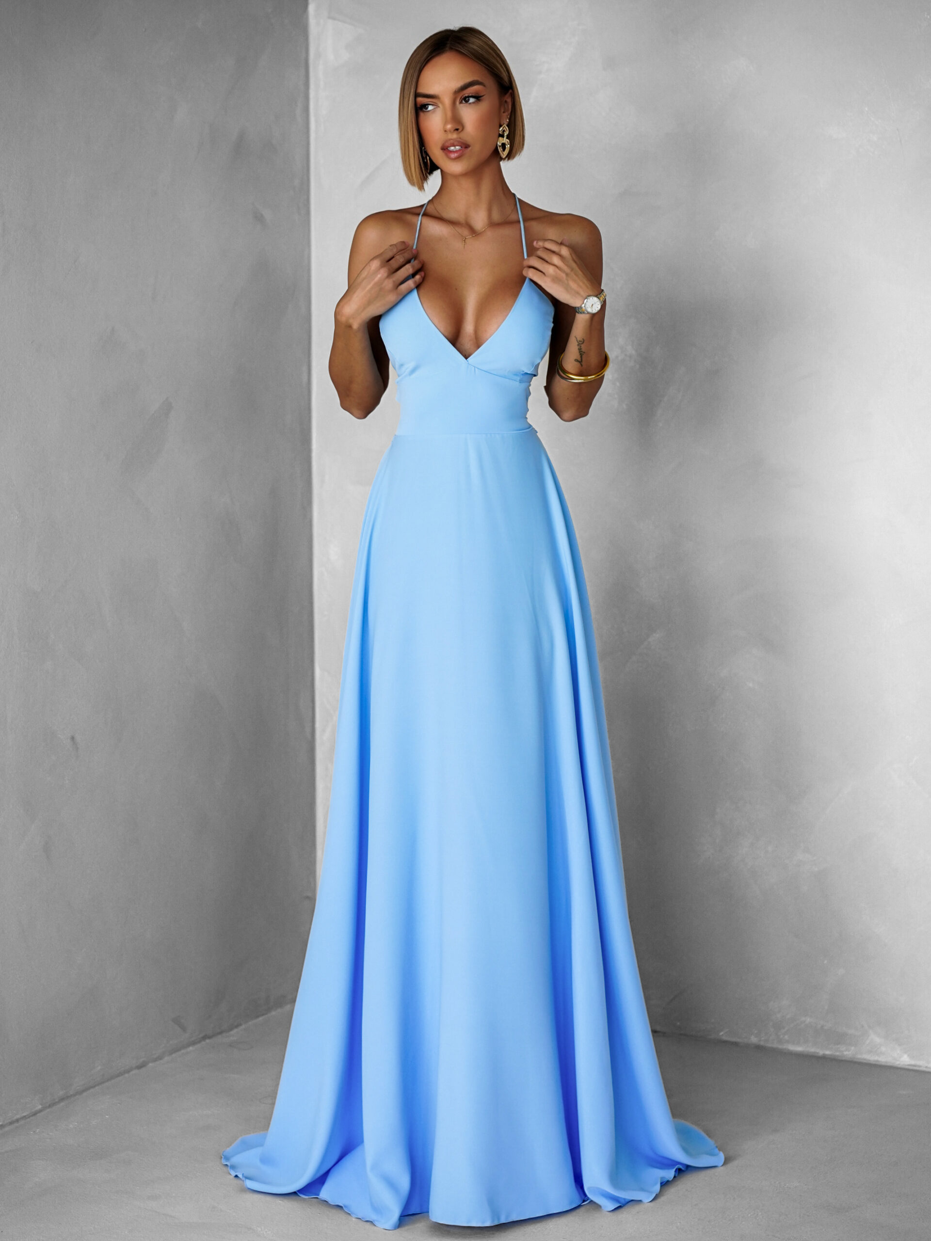 Světle modré dlouhé elegantní šaty DAMIANO Velikost: ONESIZE