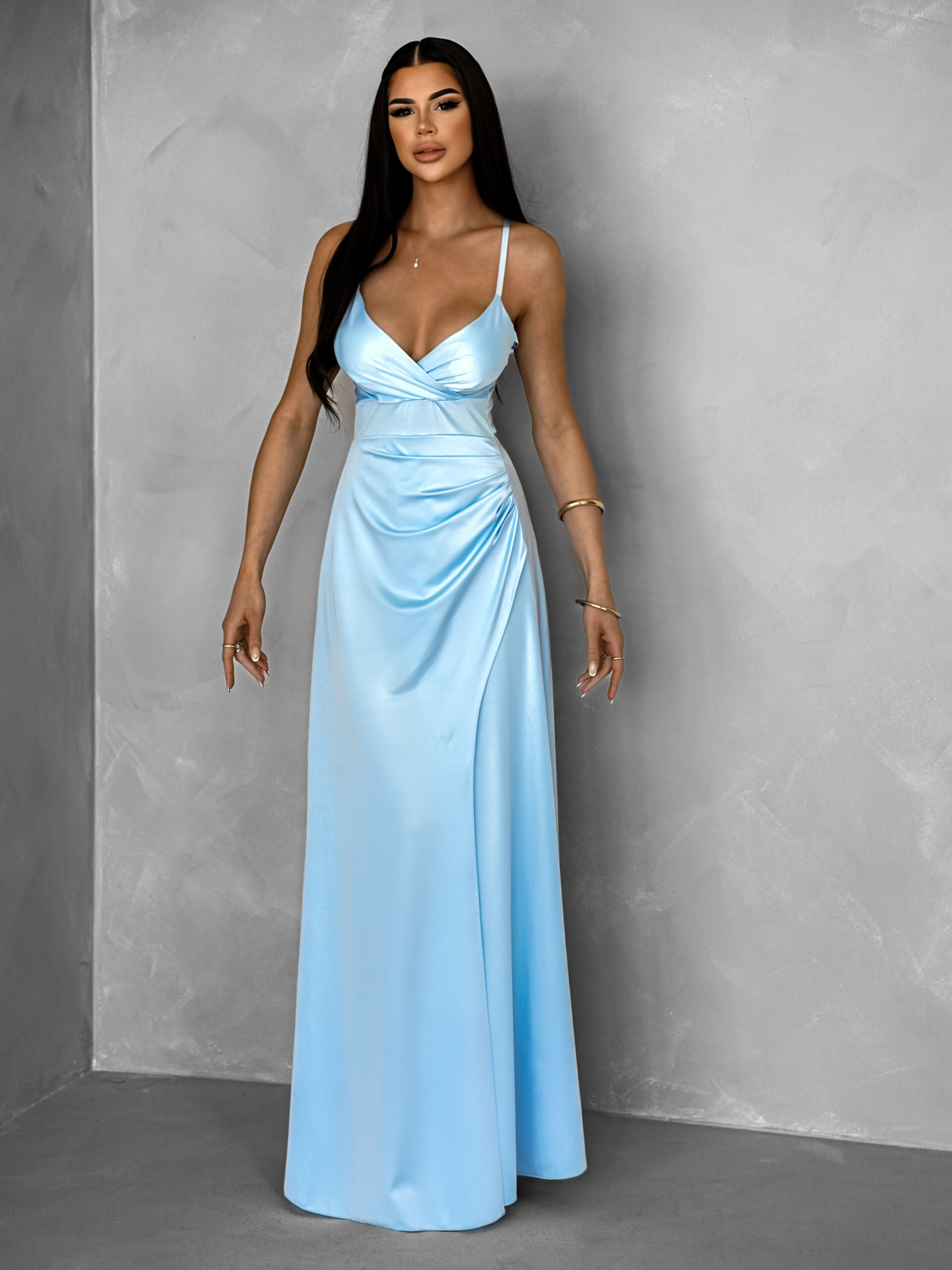 Světle modré dlouhé šaty ARANKA s výstřihem Velikost: ONESIZE