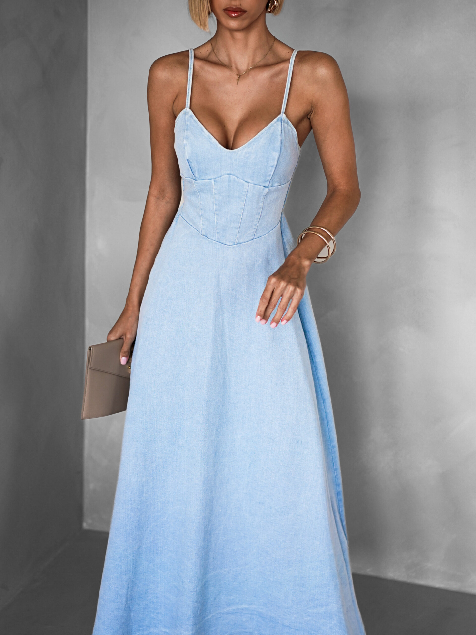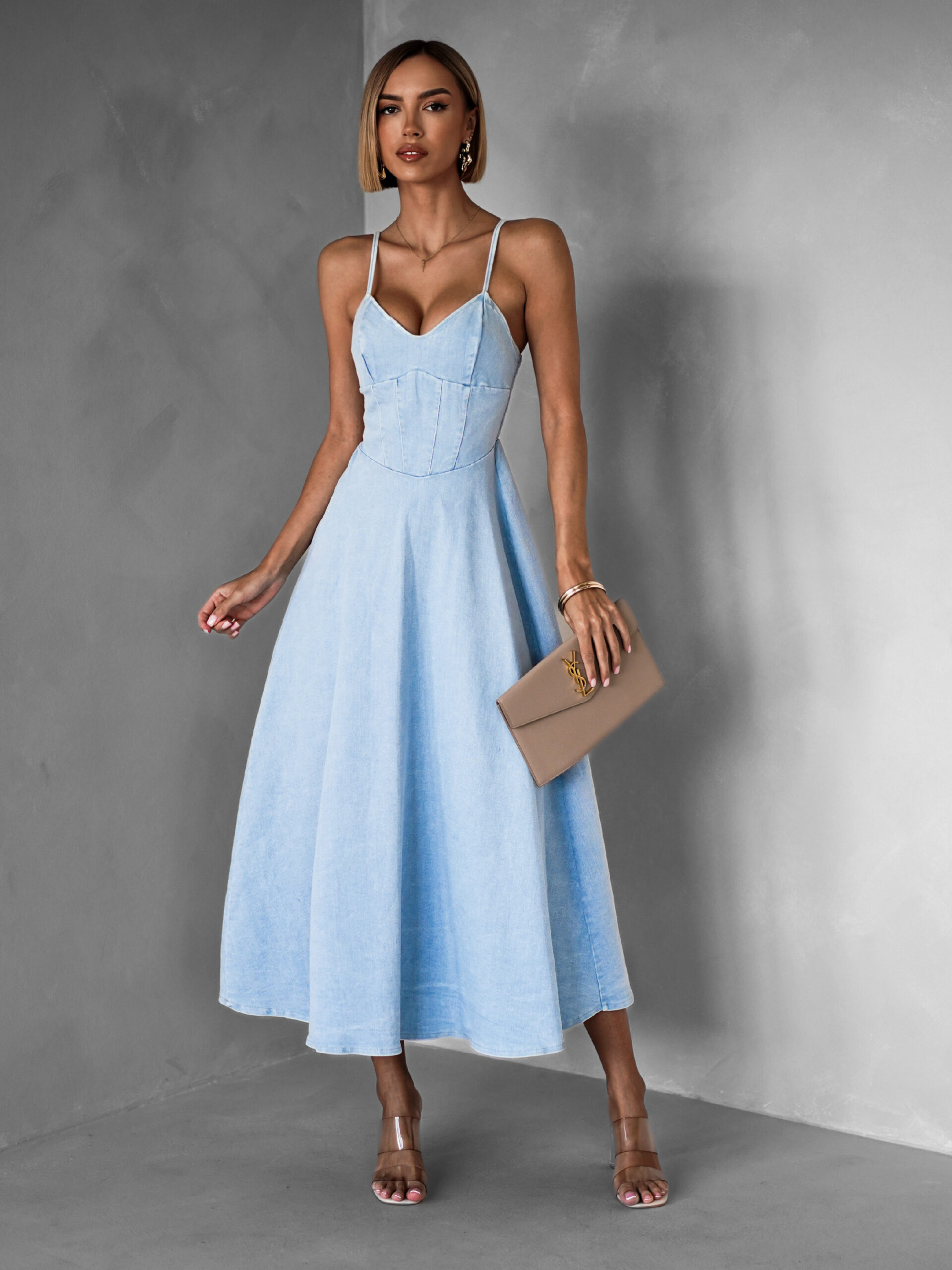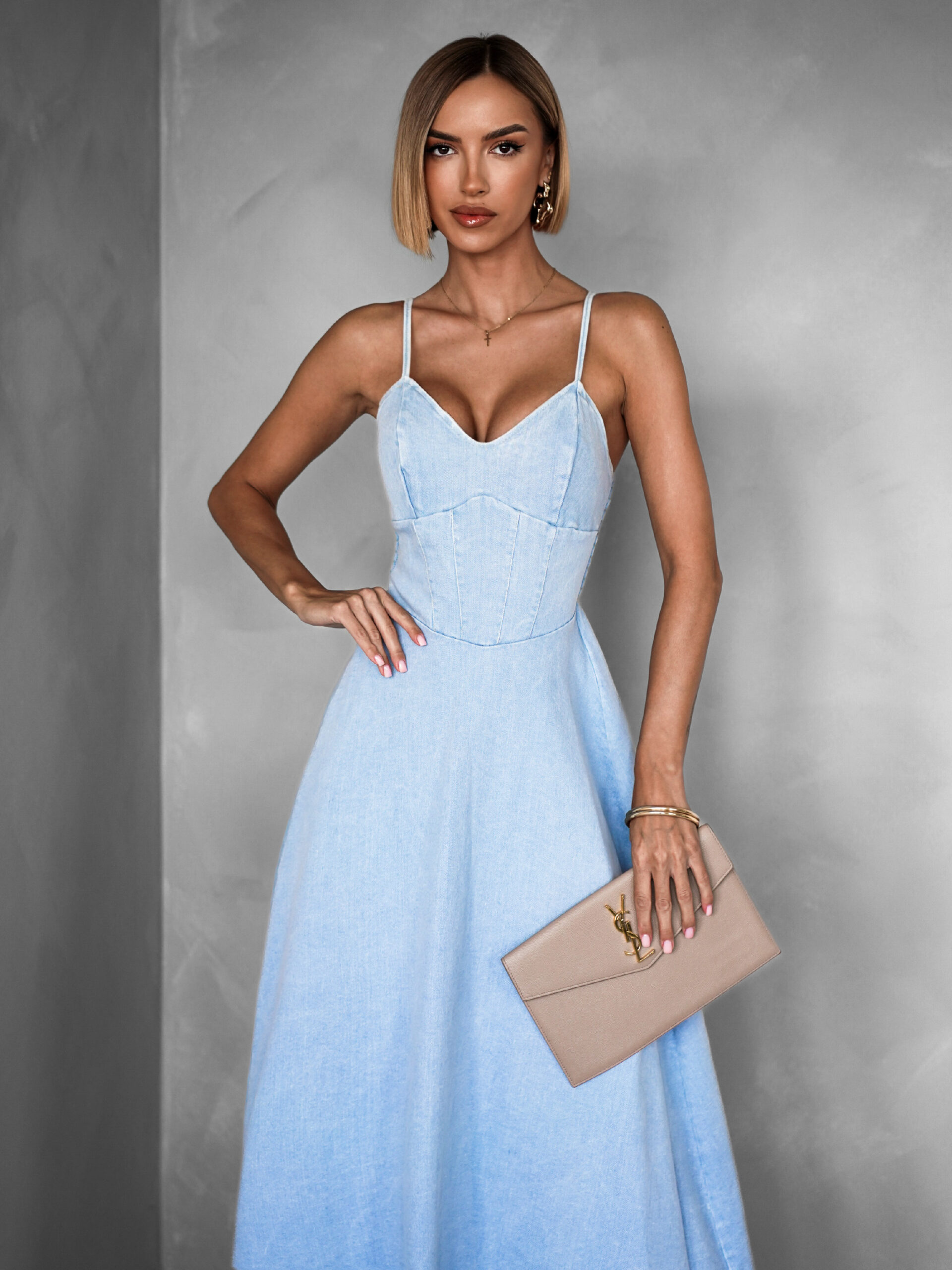 Světle modré džínové áčkové dlouhé šaty SENEJA Velikost: ONESIZE