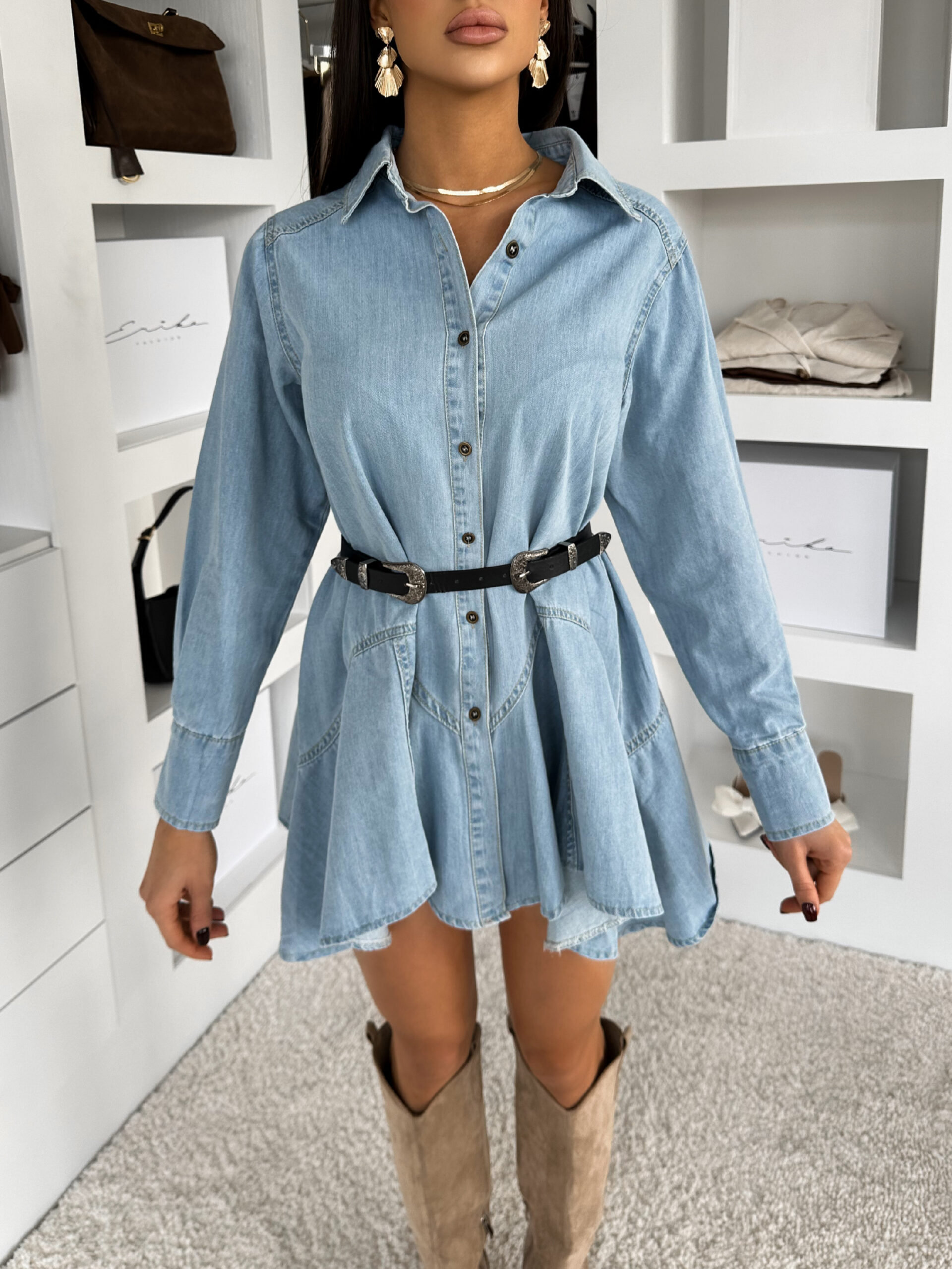 Světle modré džínové šaty DALALA s páskem Velikost: ONESIZE