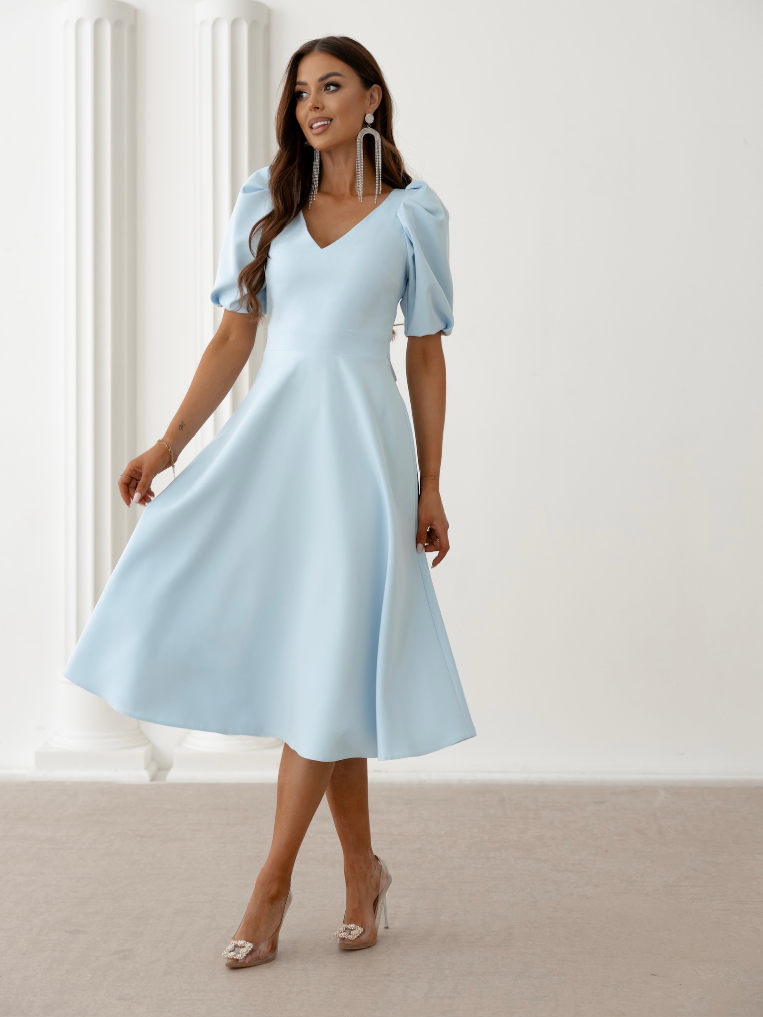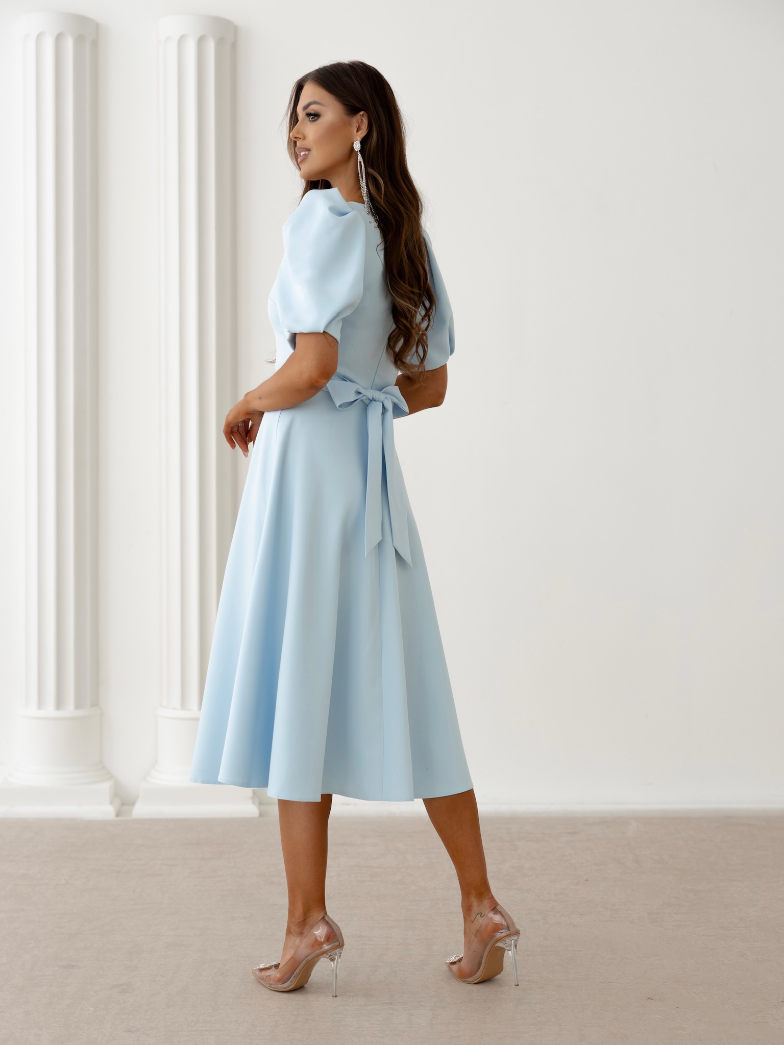 Světle modré elegantní společenské midi šaty ORLAYA Velikost: L