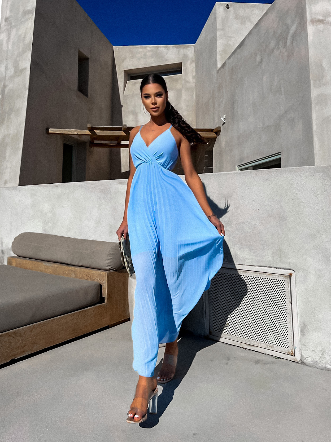 Světle modré šaty SUNLOVE s plisovanou sukní