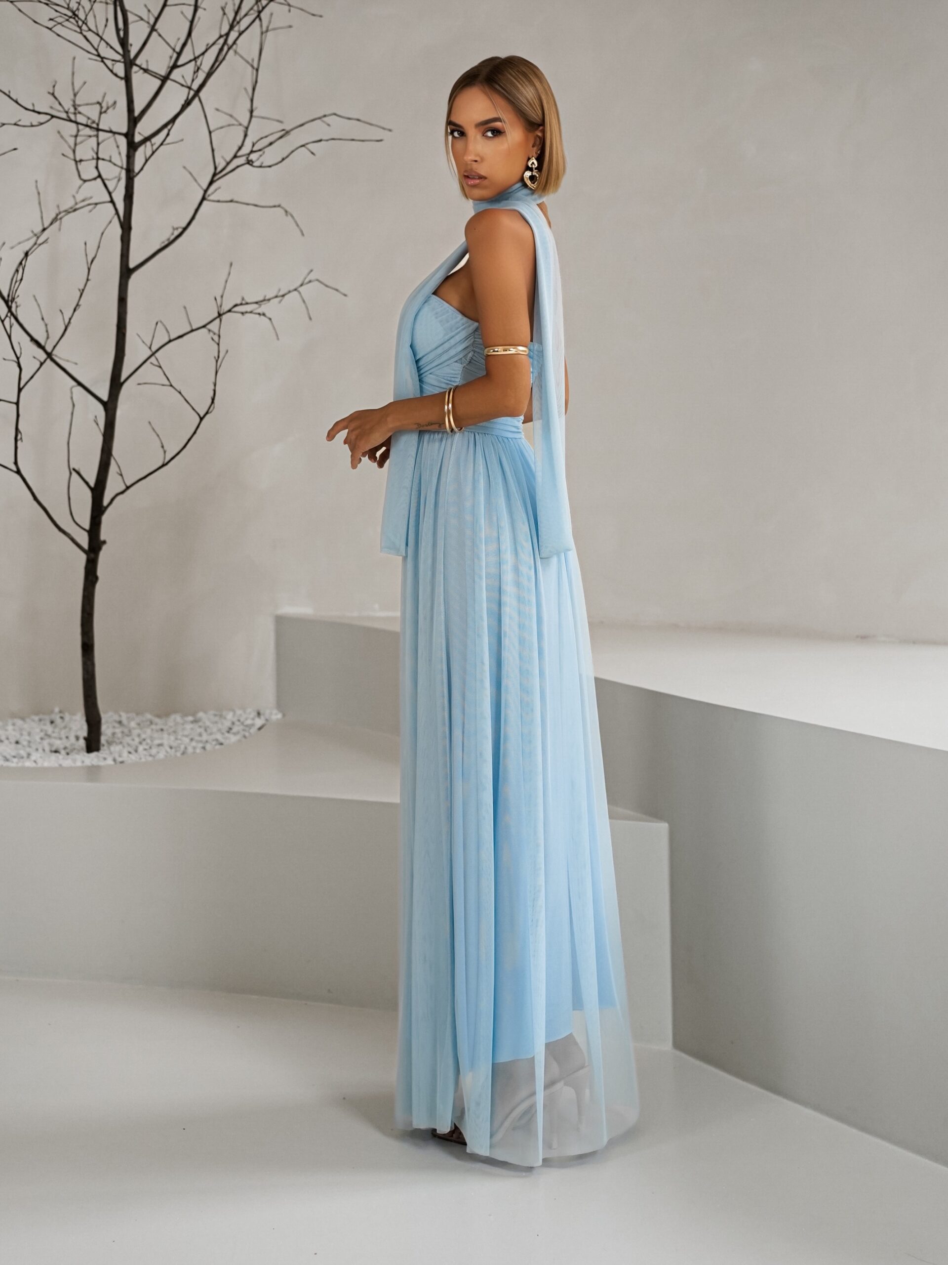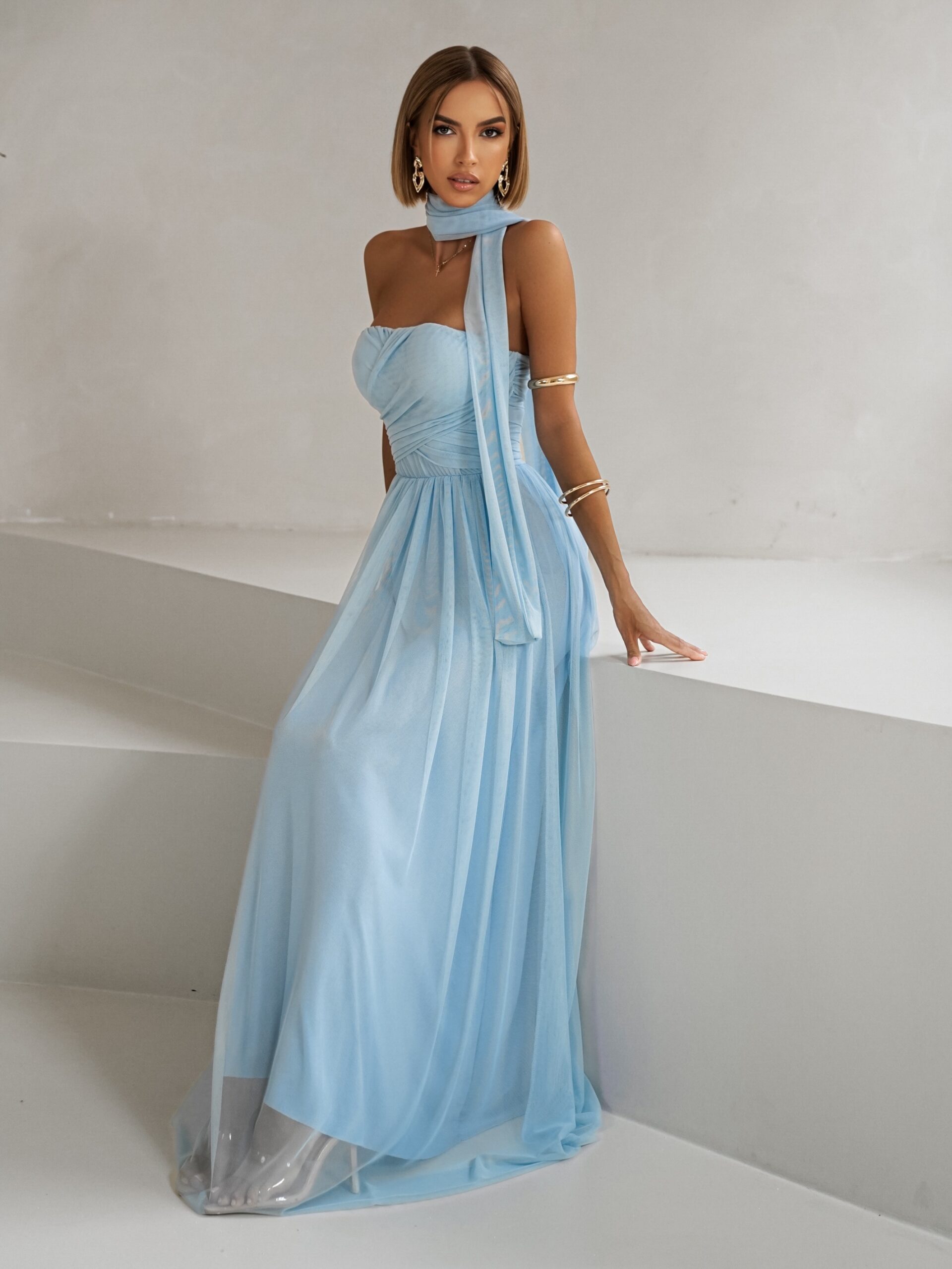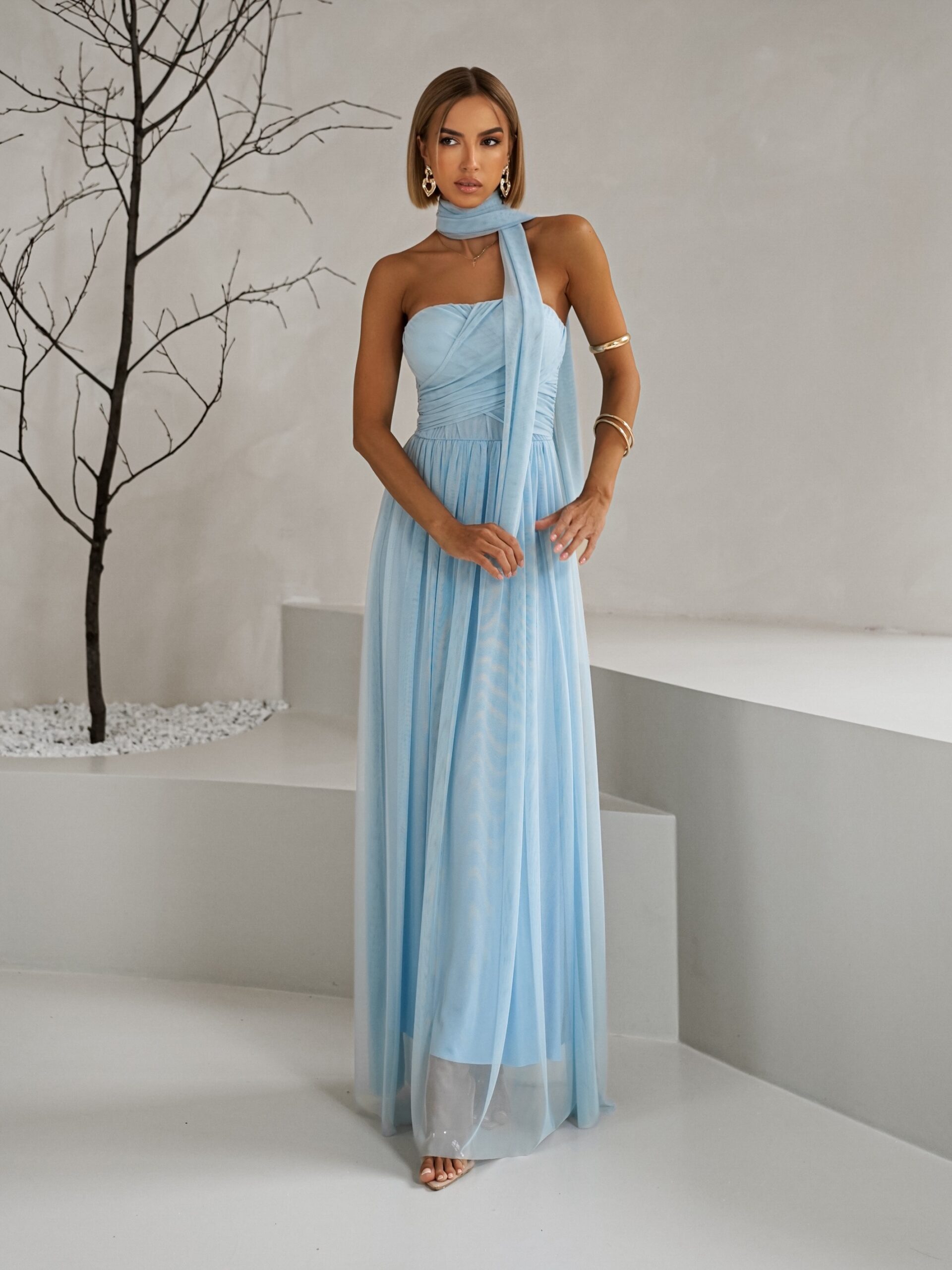 Světle modré tylové dlouhé šaty BOLEMIR s vlečkou Velikost: ONESIZE