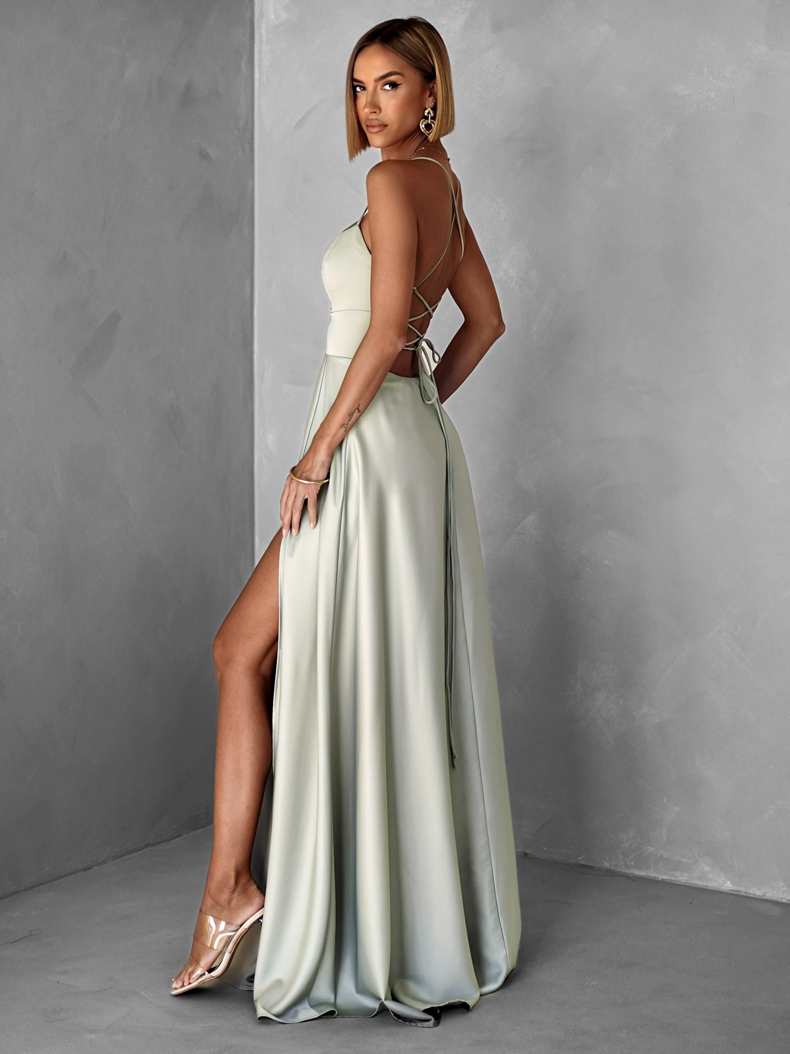 Světle zelené dlouhé šaty CELLINES se šněrováním Velikost: M