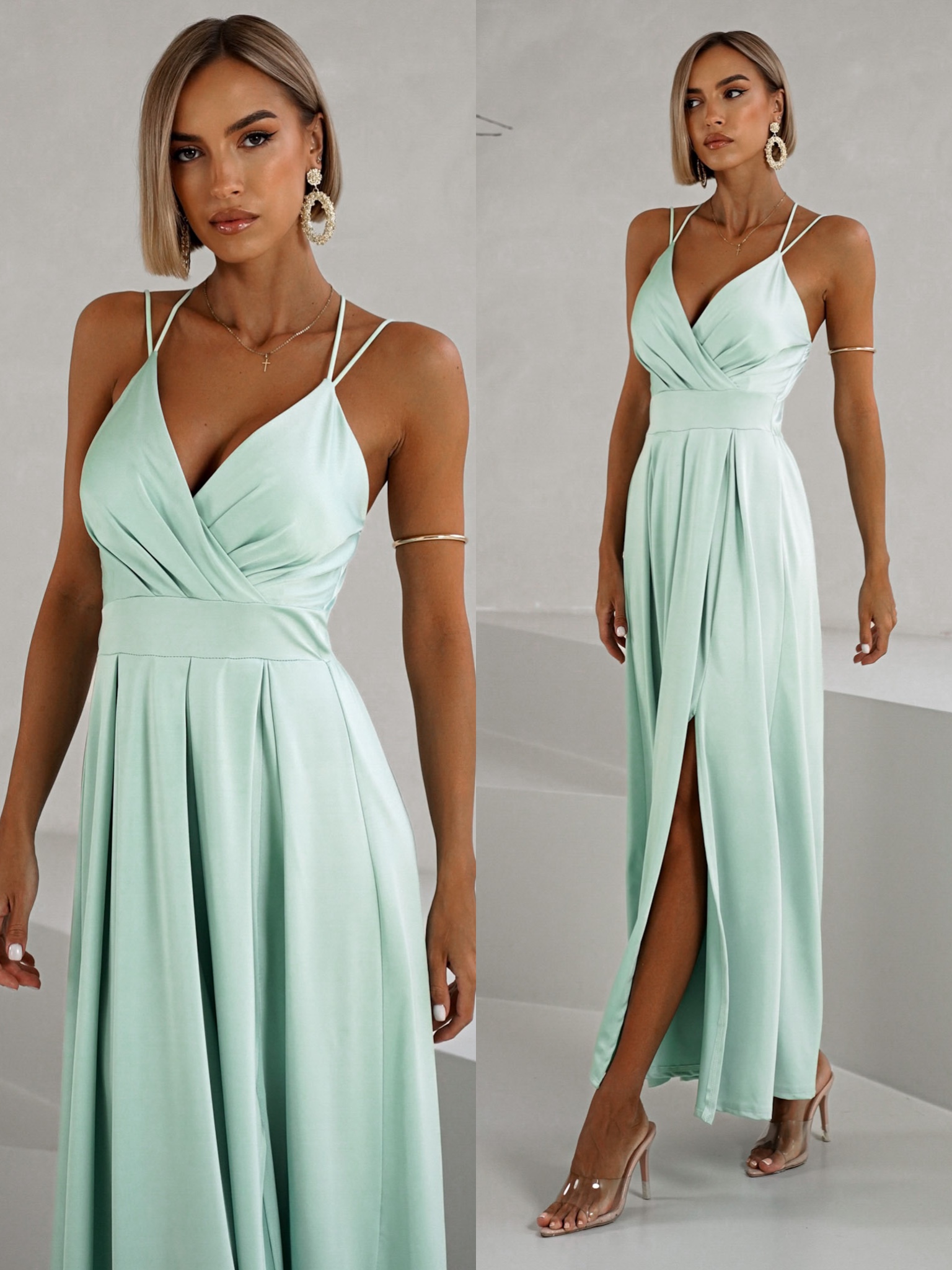 Světle zelené společenské šaty SAURANA s rozparkem Velikost: ONESIZE
