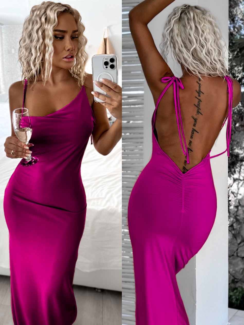 Tmavě fialové šaty KONTRAME se zavazováním na ramenech Velikost: ONESIZE
