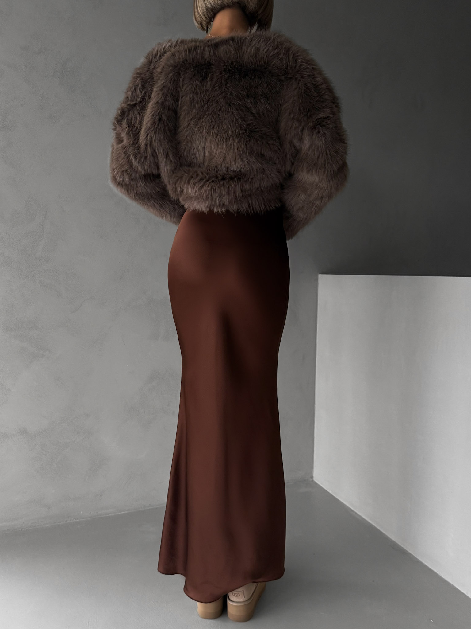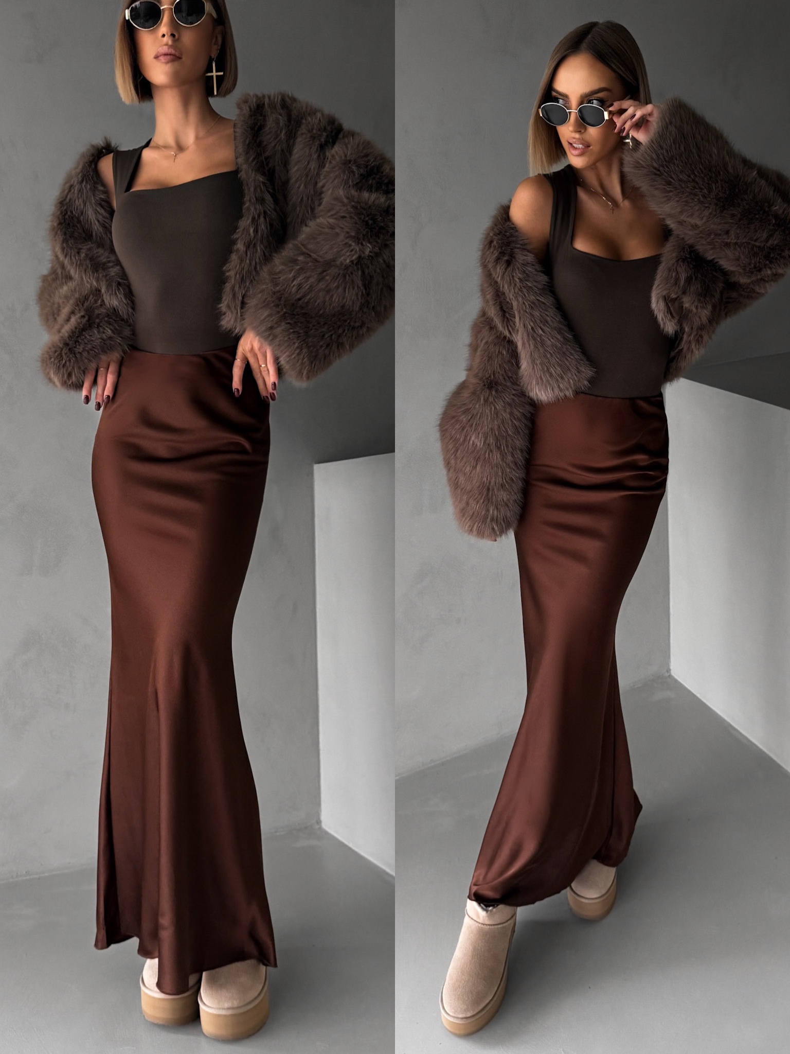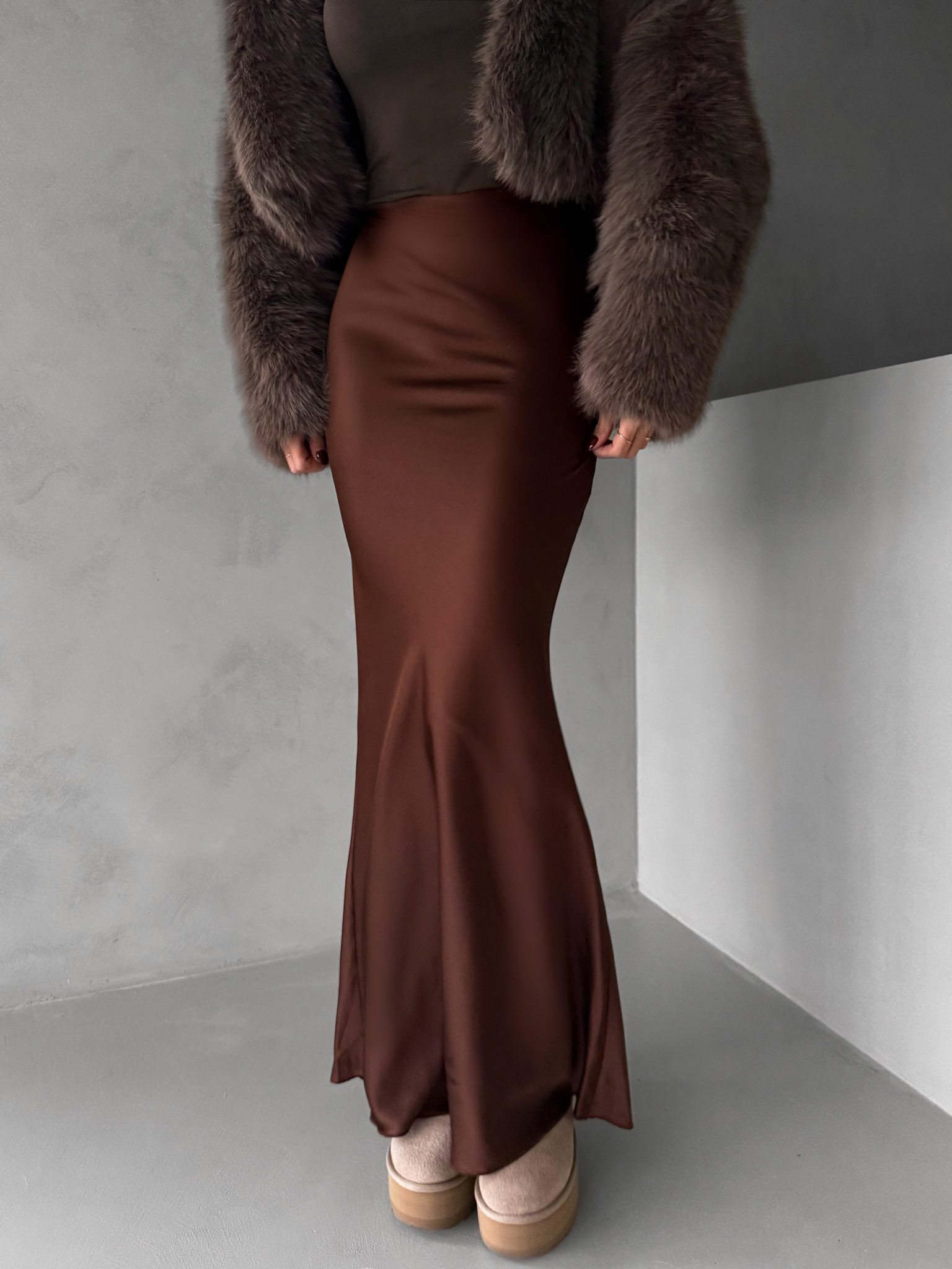 Tmavě hnědá dlouhá saténová sukně REGENORY Velikost: ONESIZE