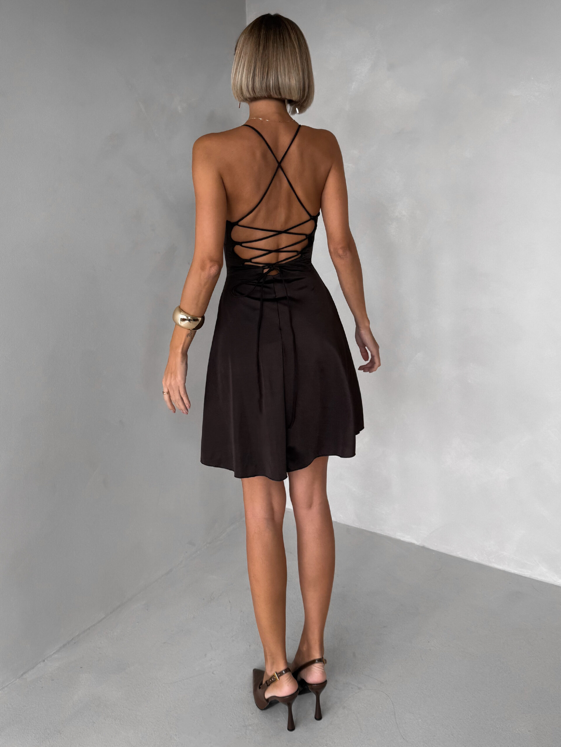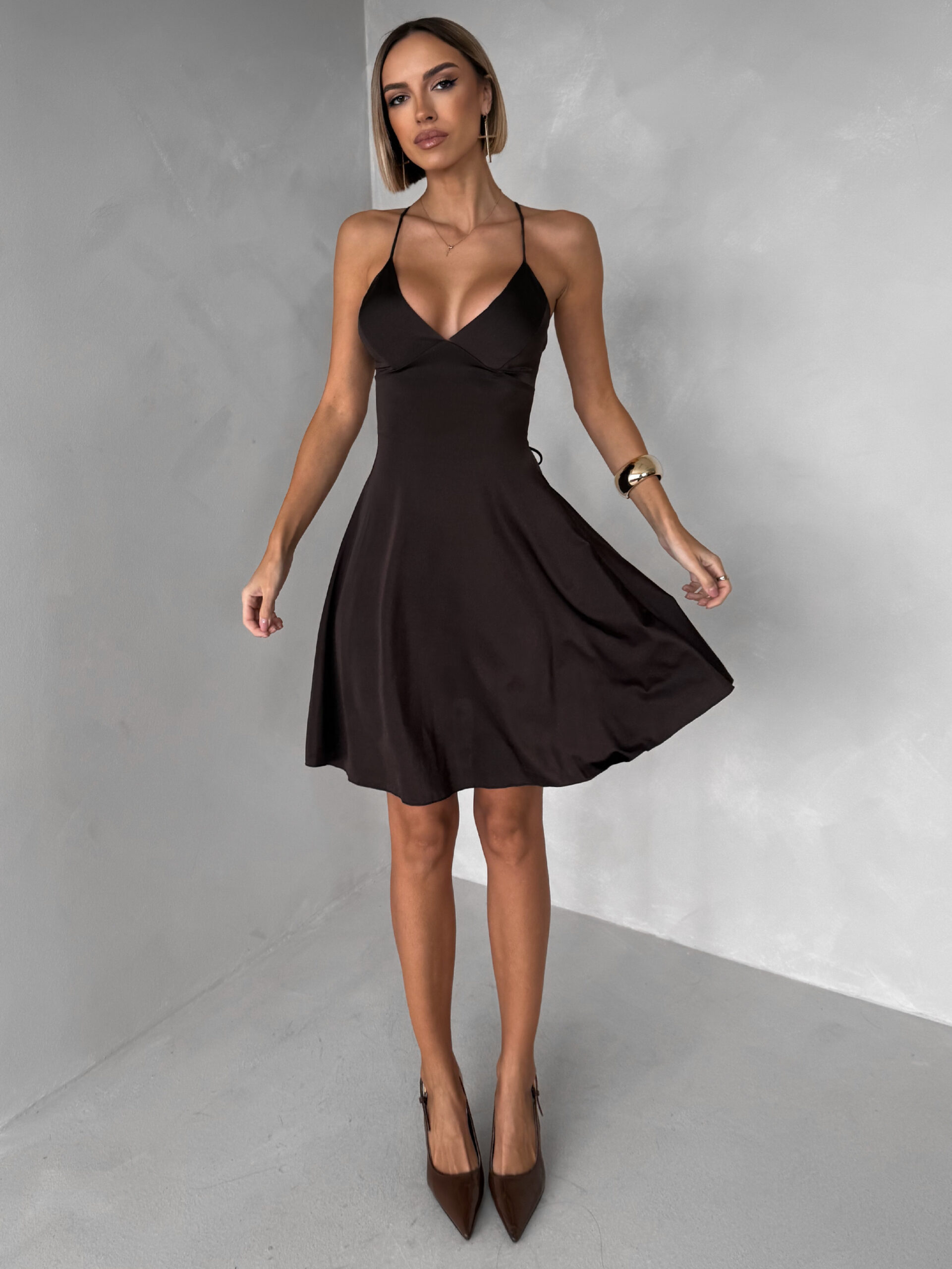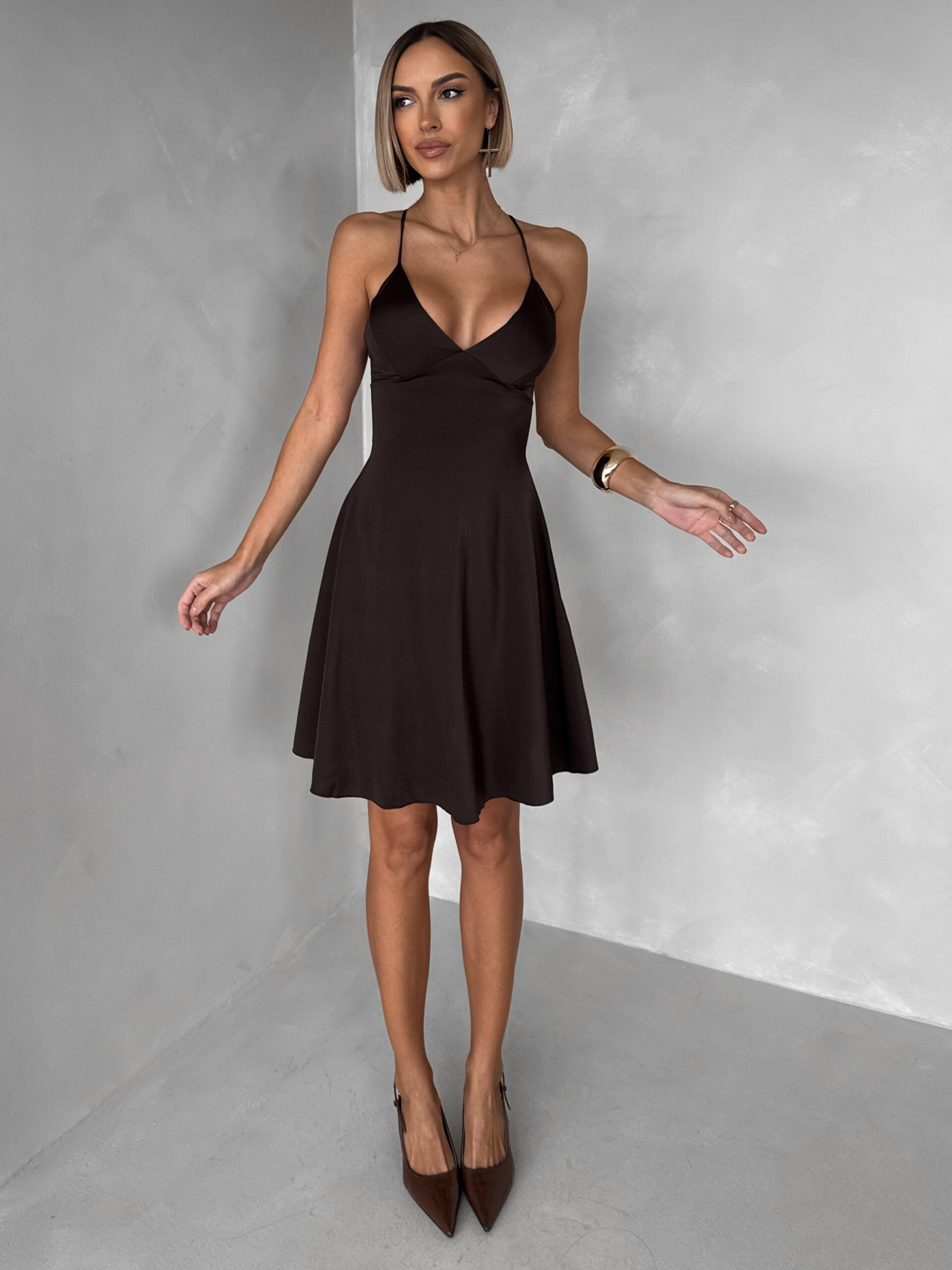 Tmavě hnědé krátké saténové šaty KALLE Velikost: ONESIZE