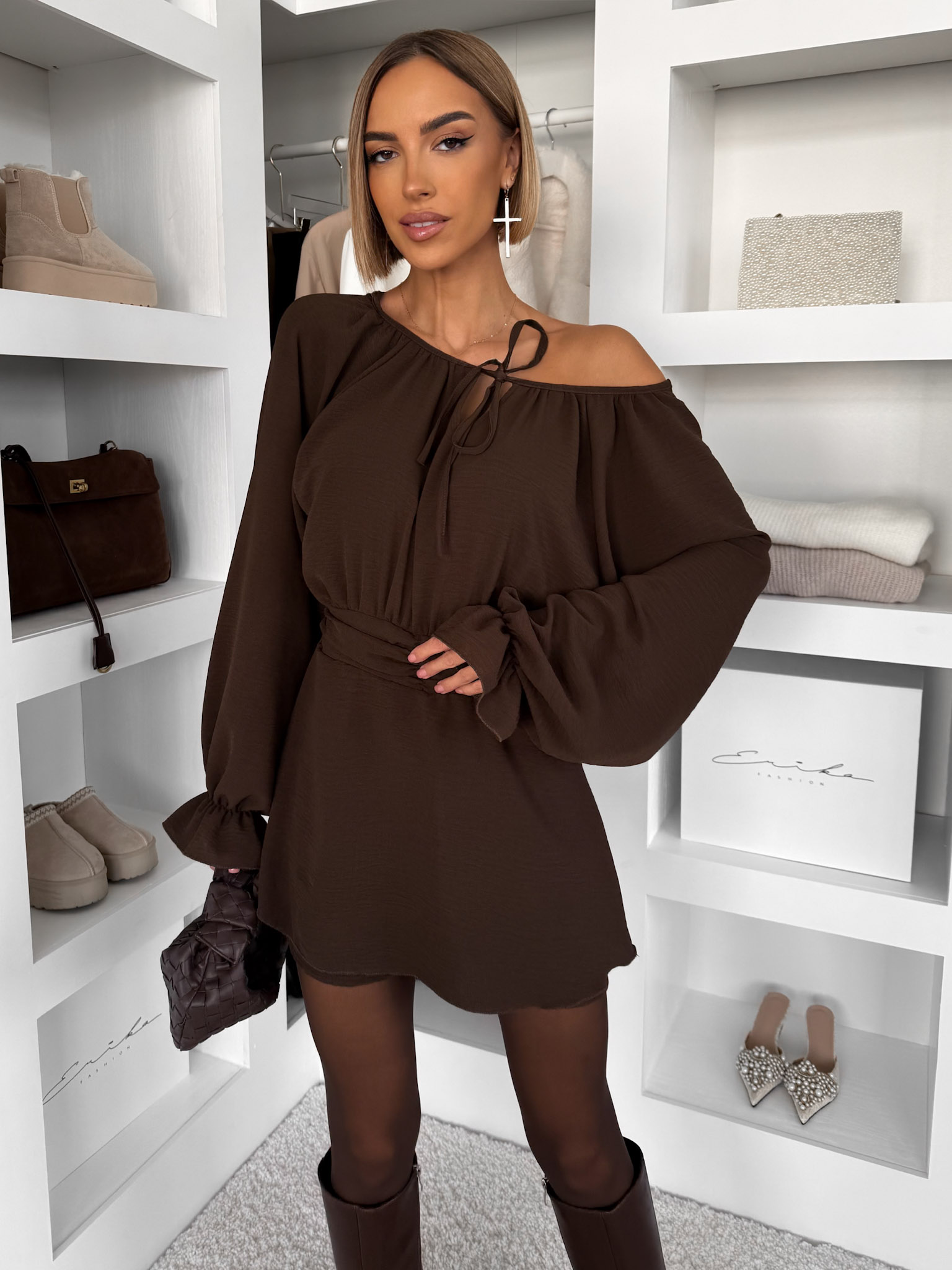 Tmavě hnědé krátké šaty AVROI s kraťásky Velikost: ONESIZE